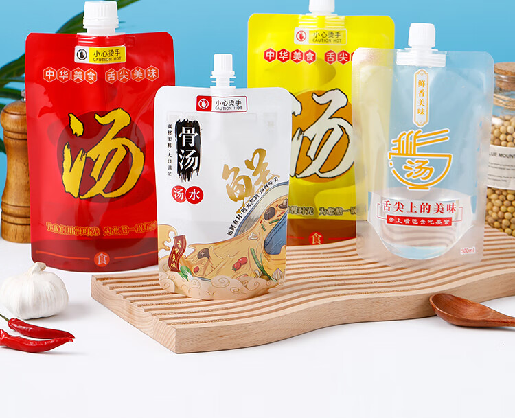 Shantou Lincun takeaway soup bag, snail noodle soup packaging bag, commercial large-capacity hot soup, hot pot soup base, disposable bone soup bag, red soup 500ml, enlarged mouth, 1000 sets of delivery tools