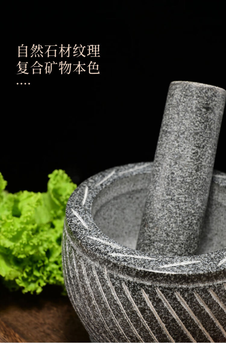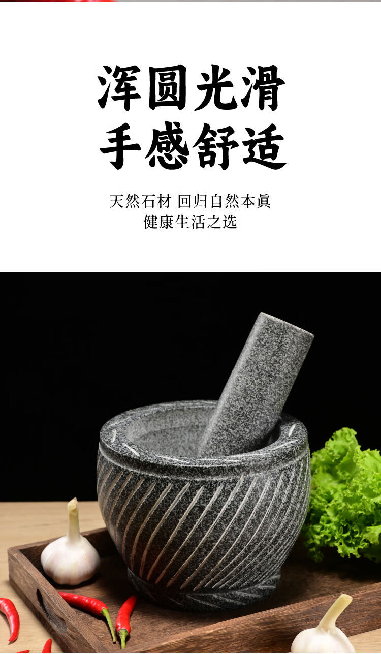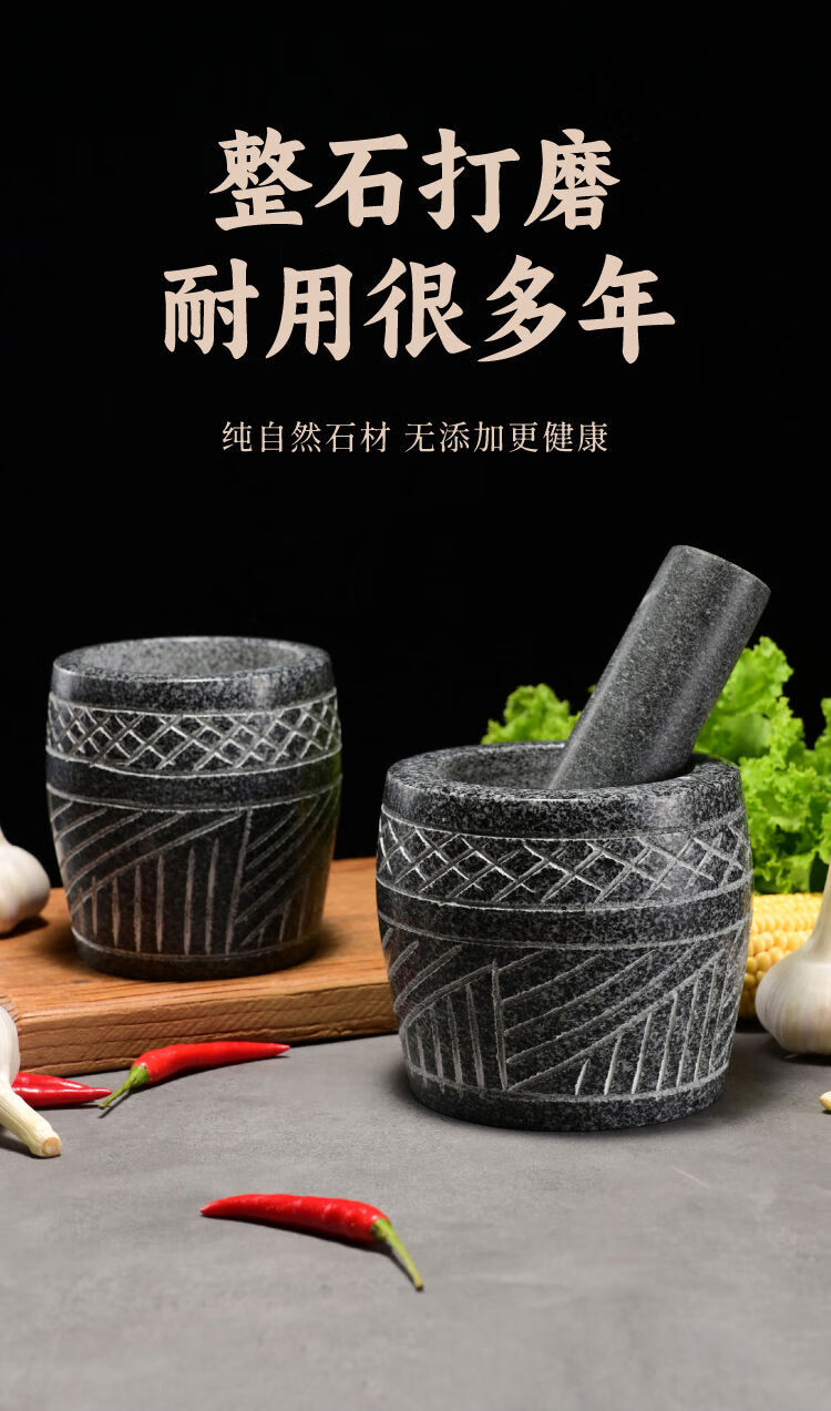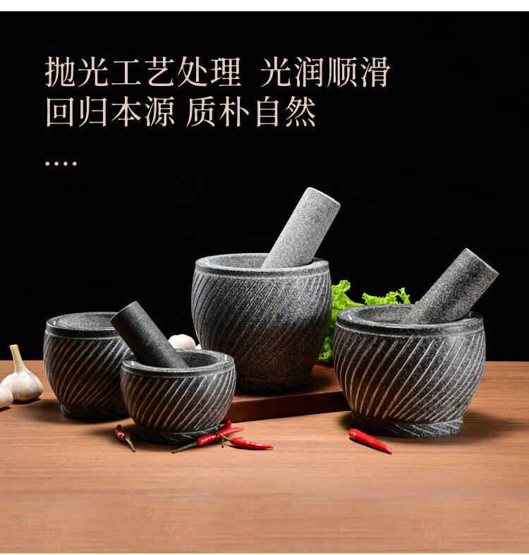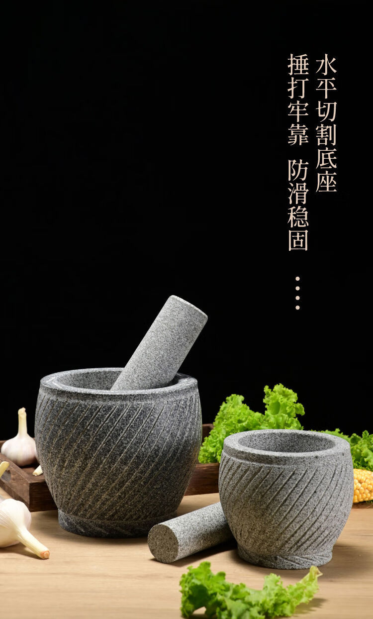 Extra large rice cake making garlic pounder stone garlic mortar grinder stone nest making rice cake peeling garlic garlic press pair nest Shandong gray polished diameter 20 cm bowl with wooden hammer