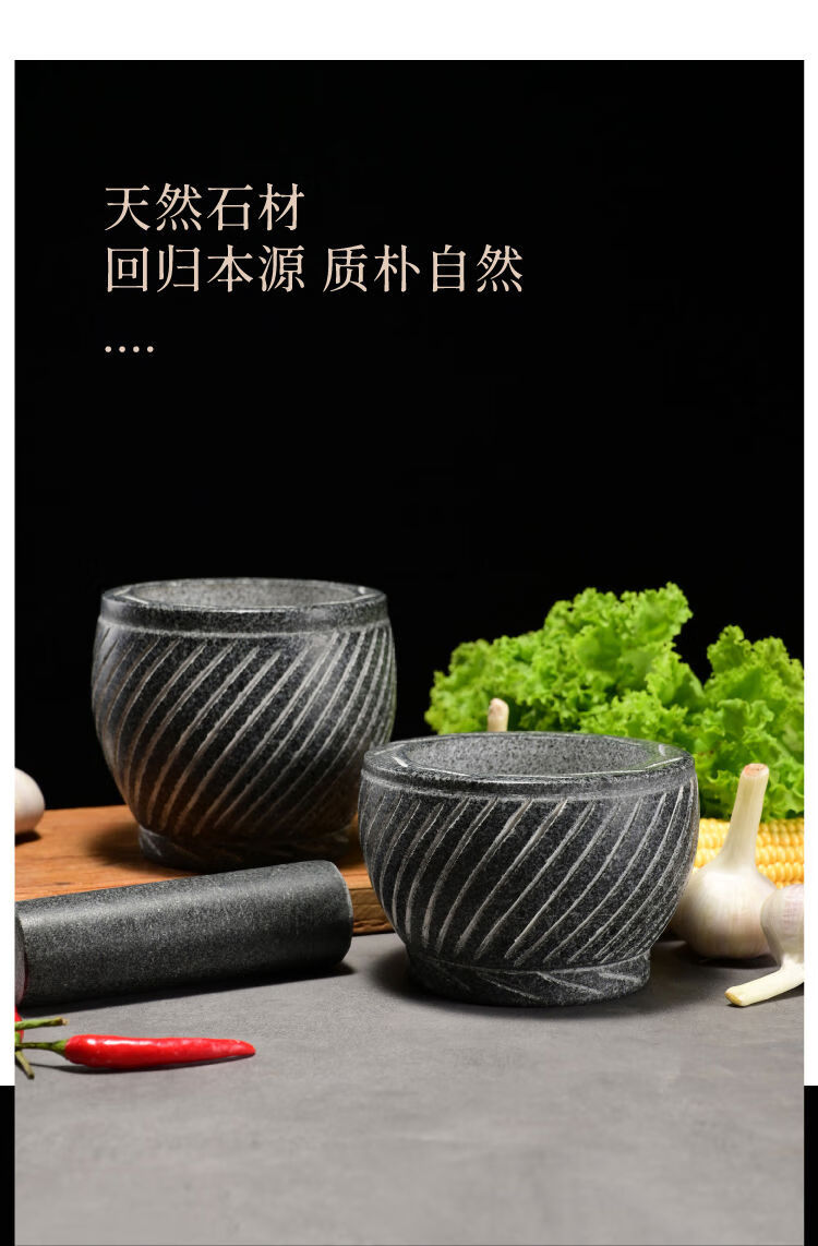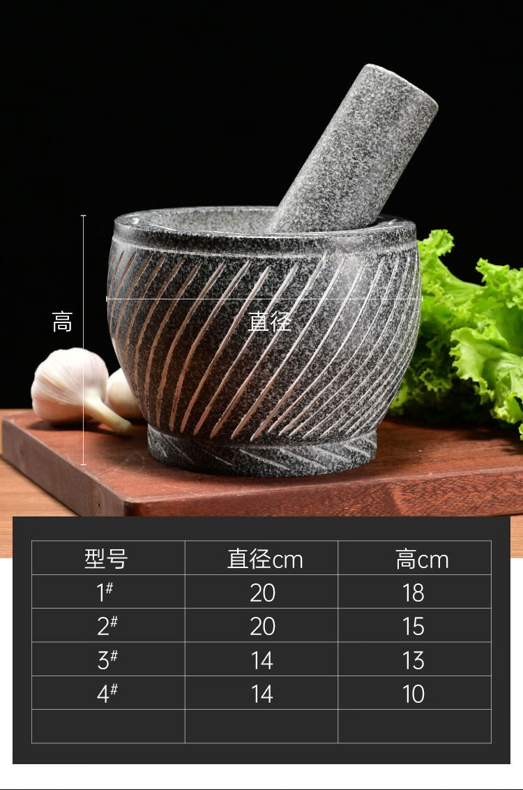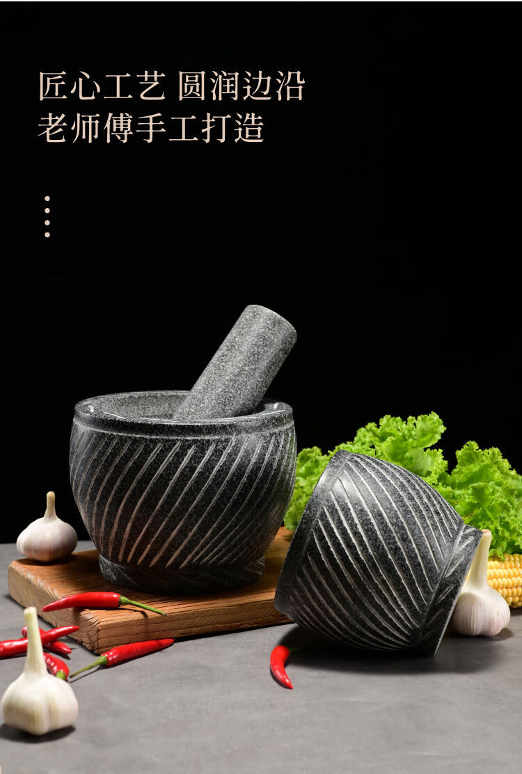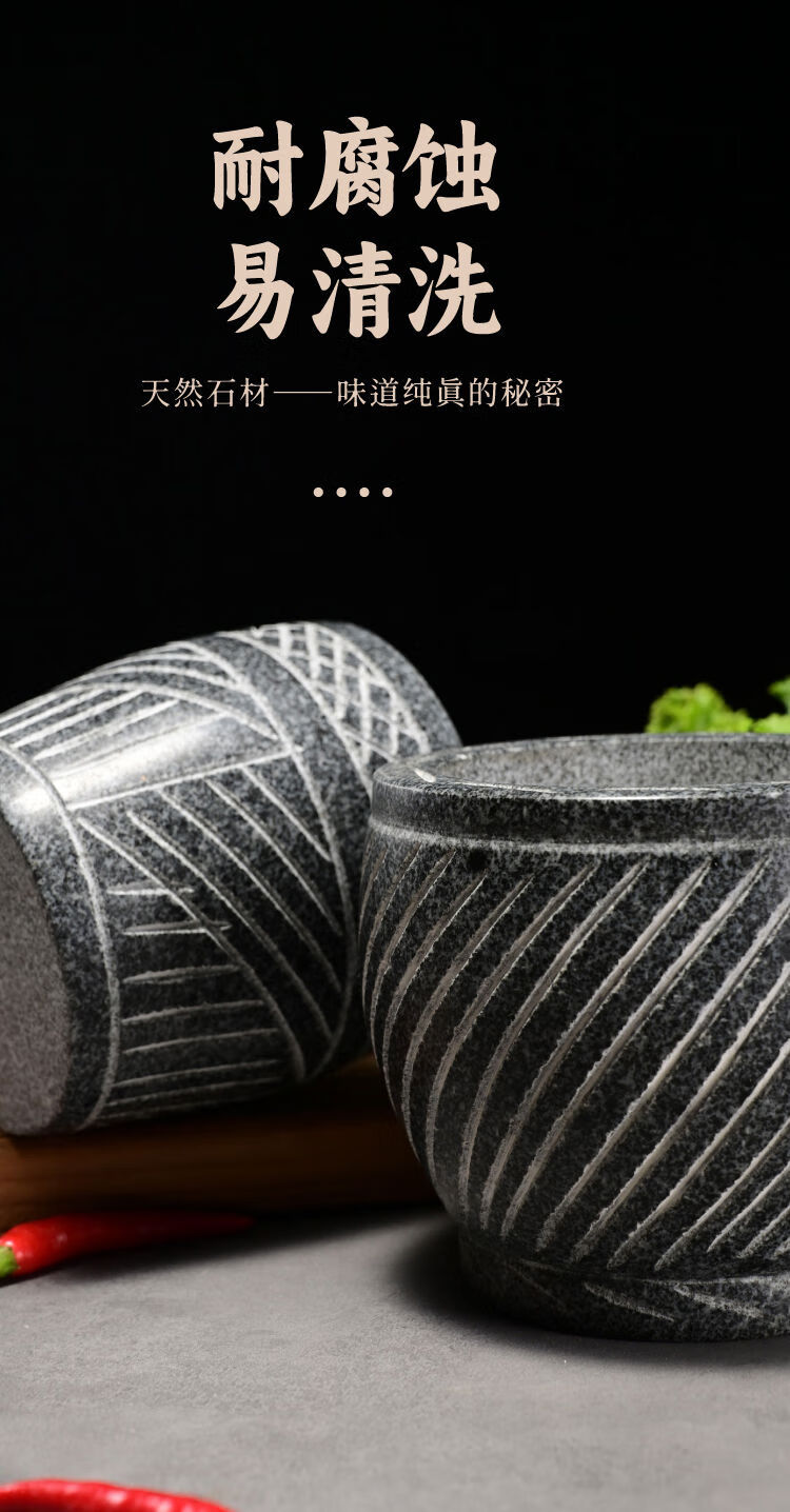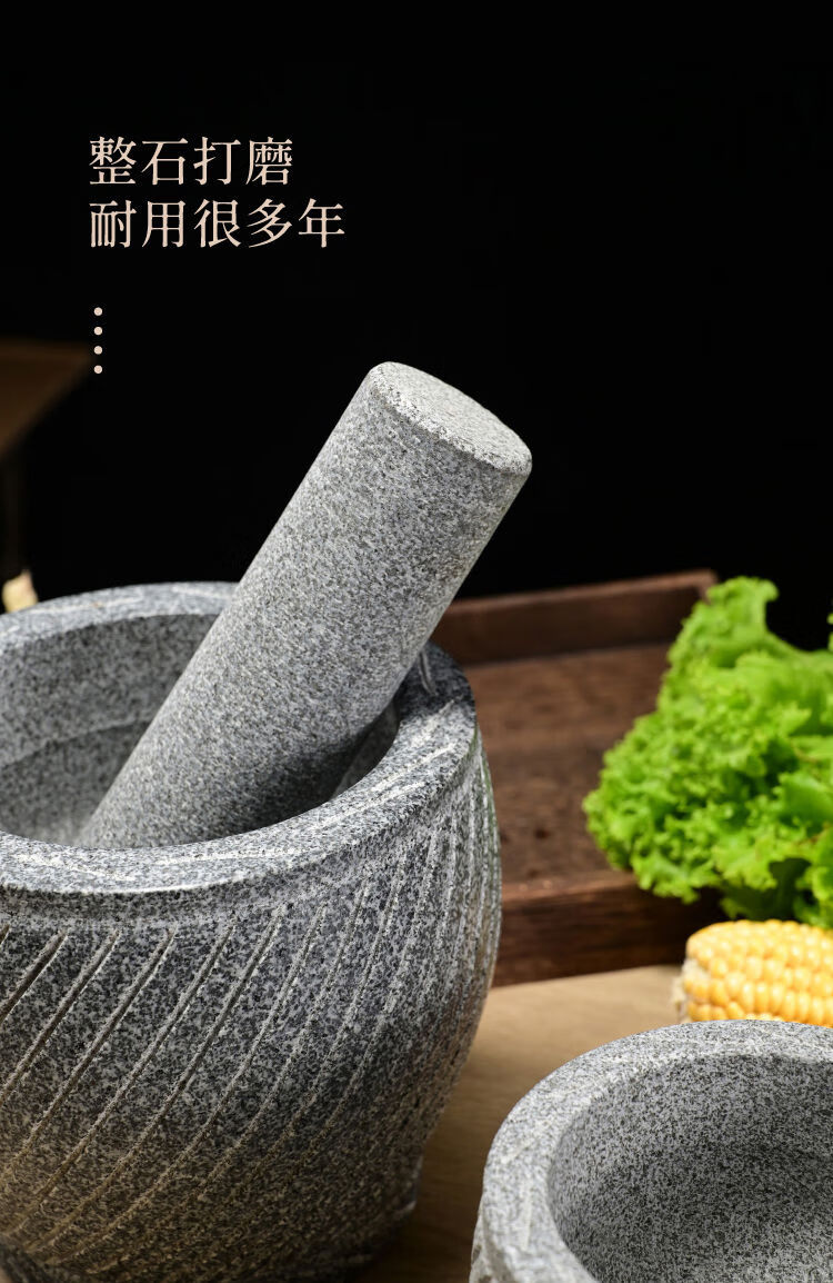 Extra large rice cake making garlic pounder stone garlic mortar grinder stone nest making rice cake peeling garlic garlic press pair nest Shandong gray polished diameter 20 cm bowl with wooden hammer