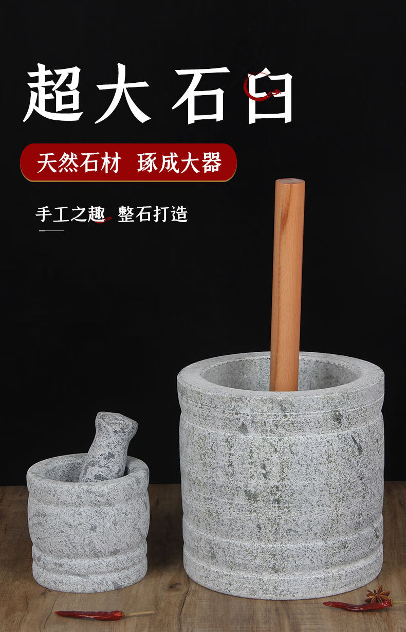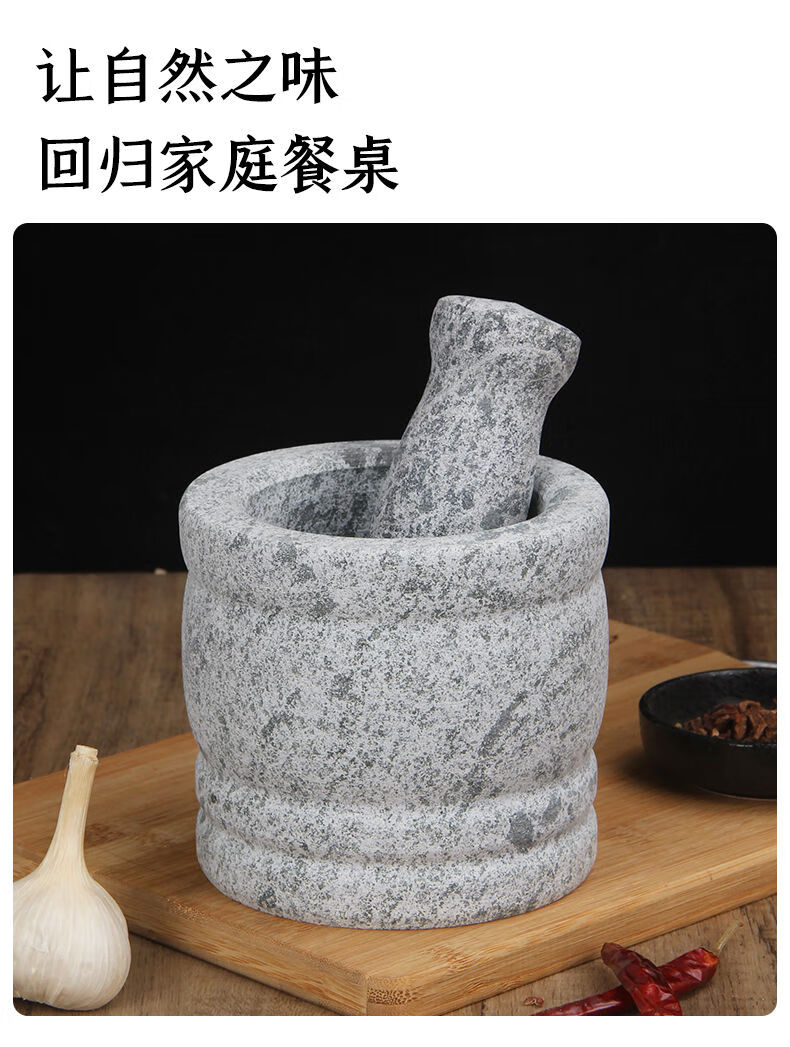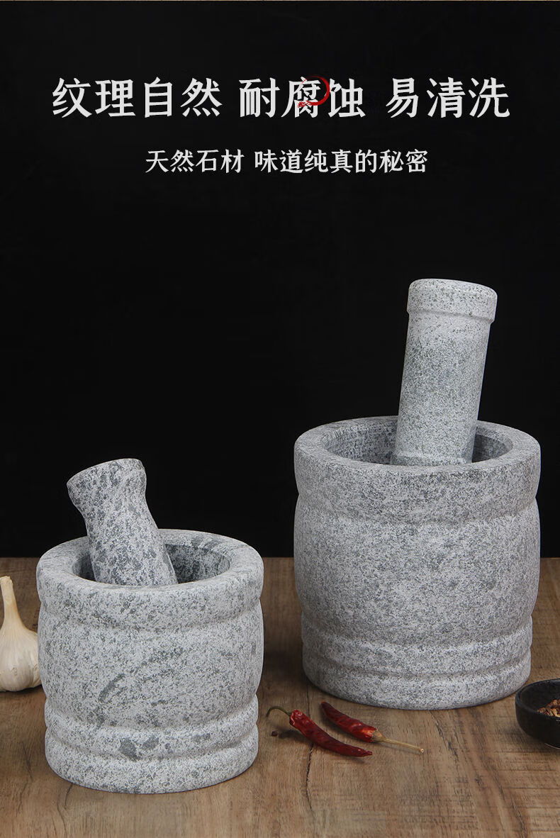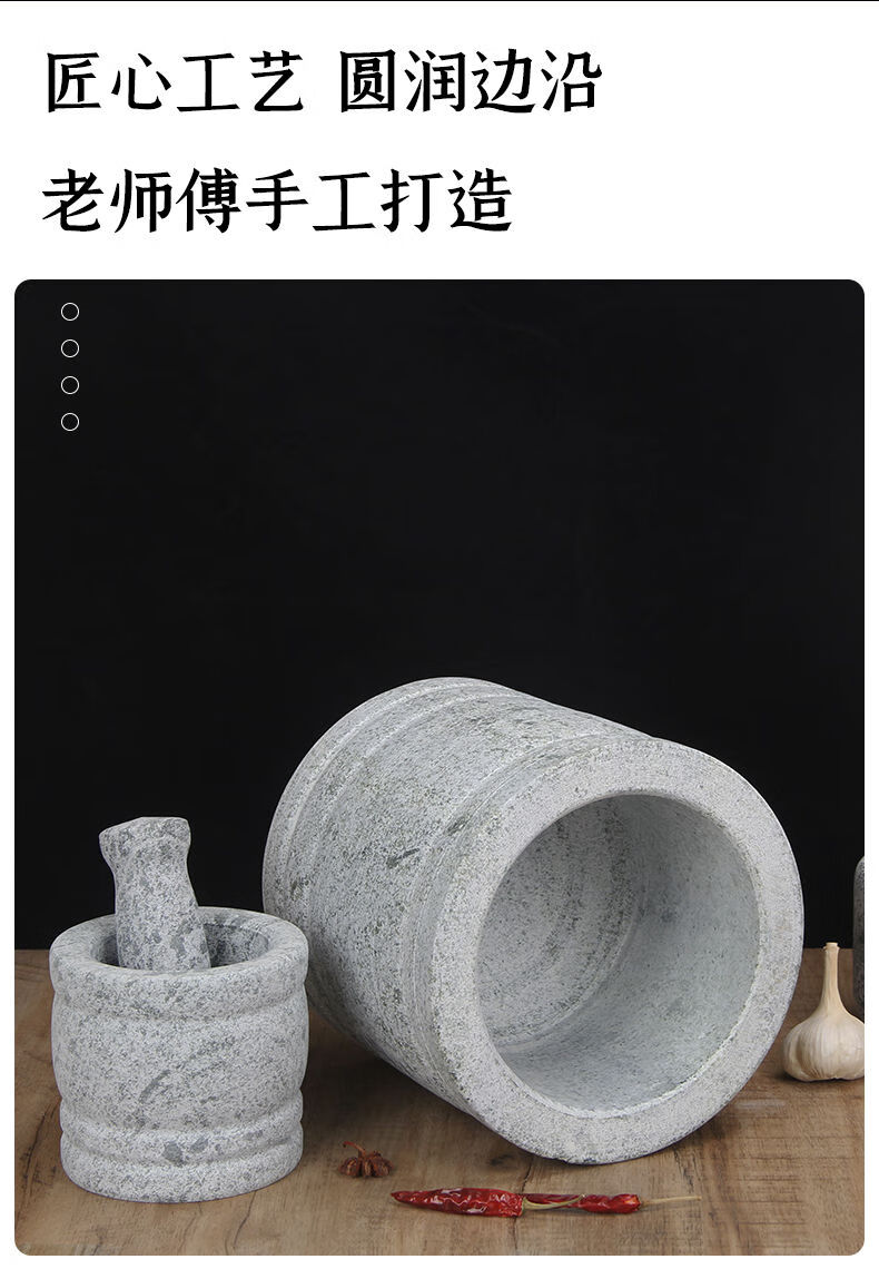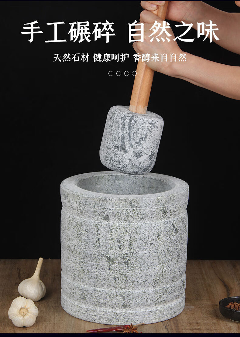 Large stone mortar garlic pounding device garlic mortar handmade artifact old commercial retro garlic pounding medicine pressed garlic to make rice cake glutinous rice cake special bluestone retro engraving 30cm