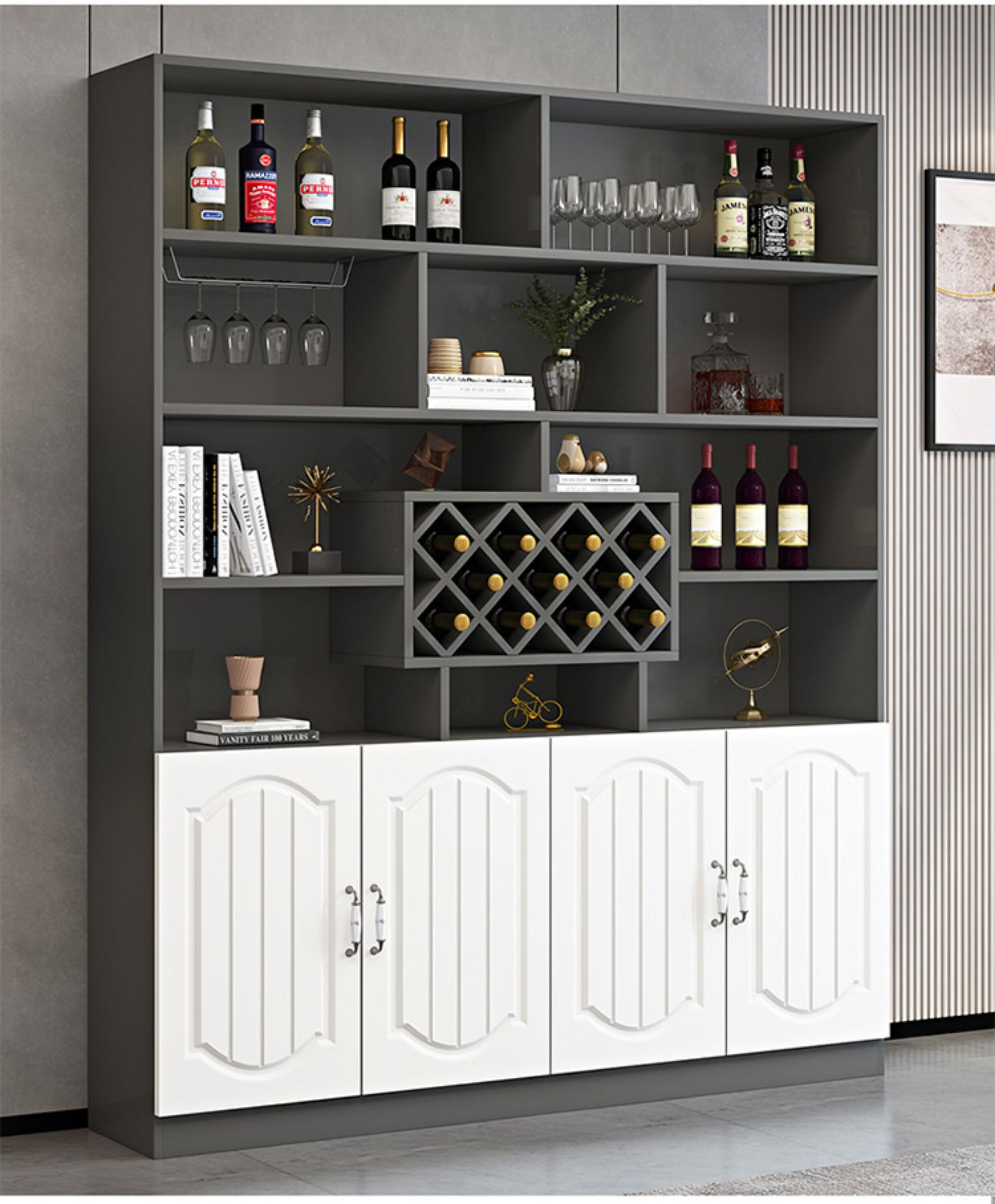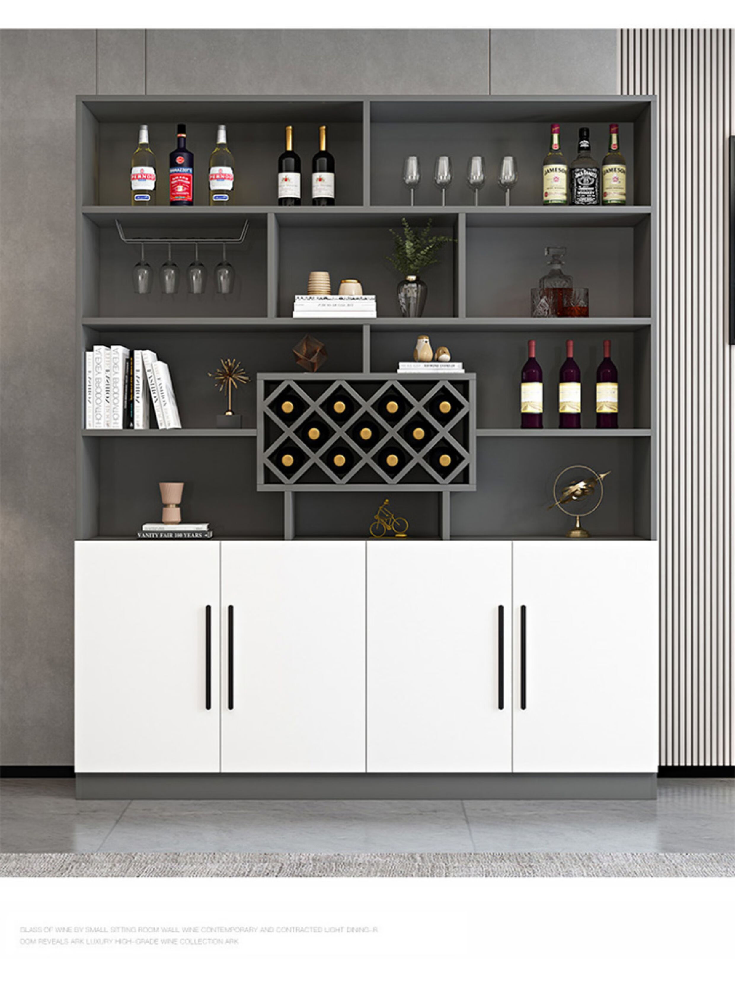 Yusenyi wine cabinet against the wall living room home red wine storage cabinet modern simple wine cabinet sideboard integrated entrance cabinet customization 160 long European style door 4 doors gray white double door