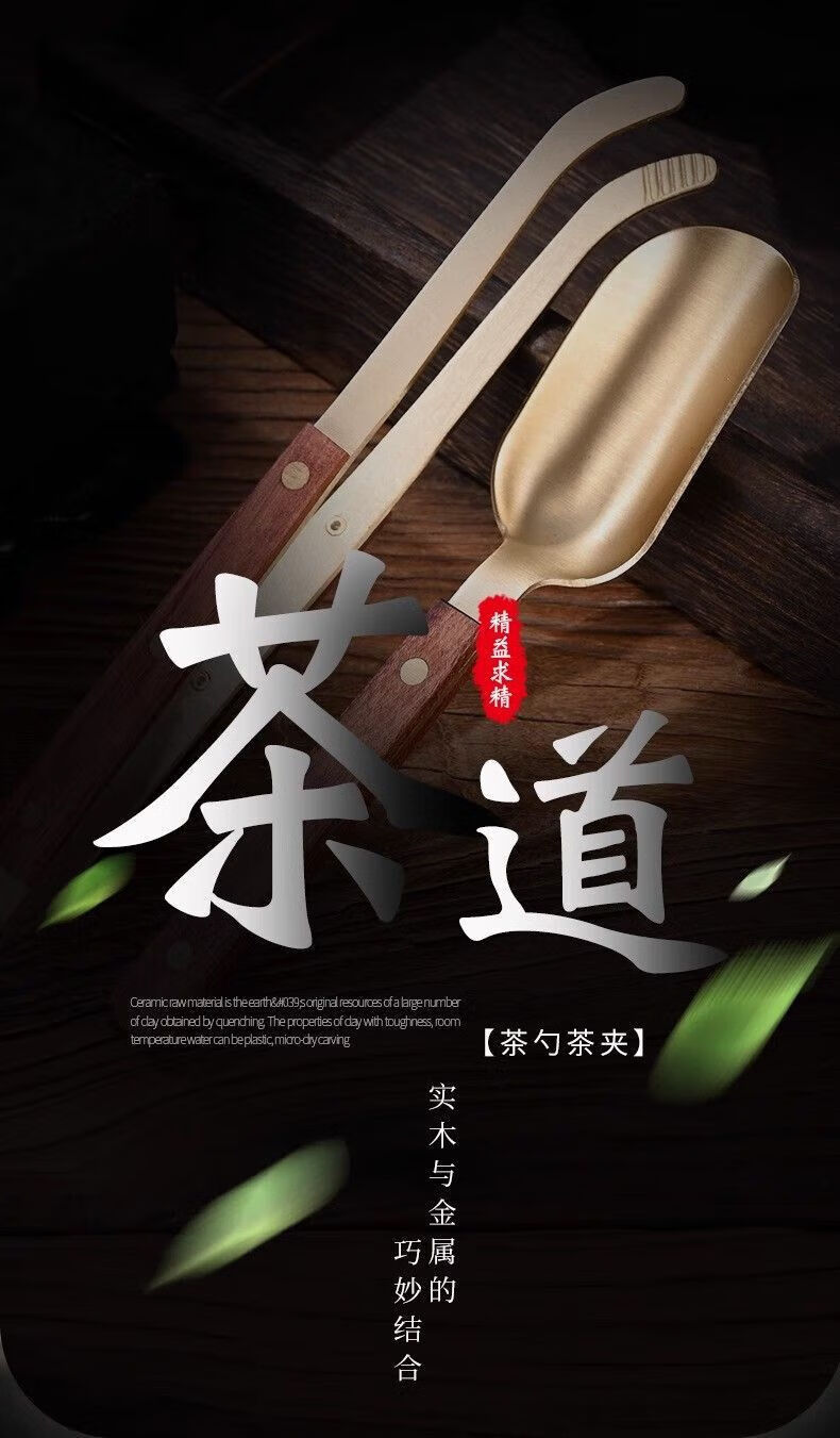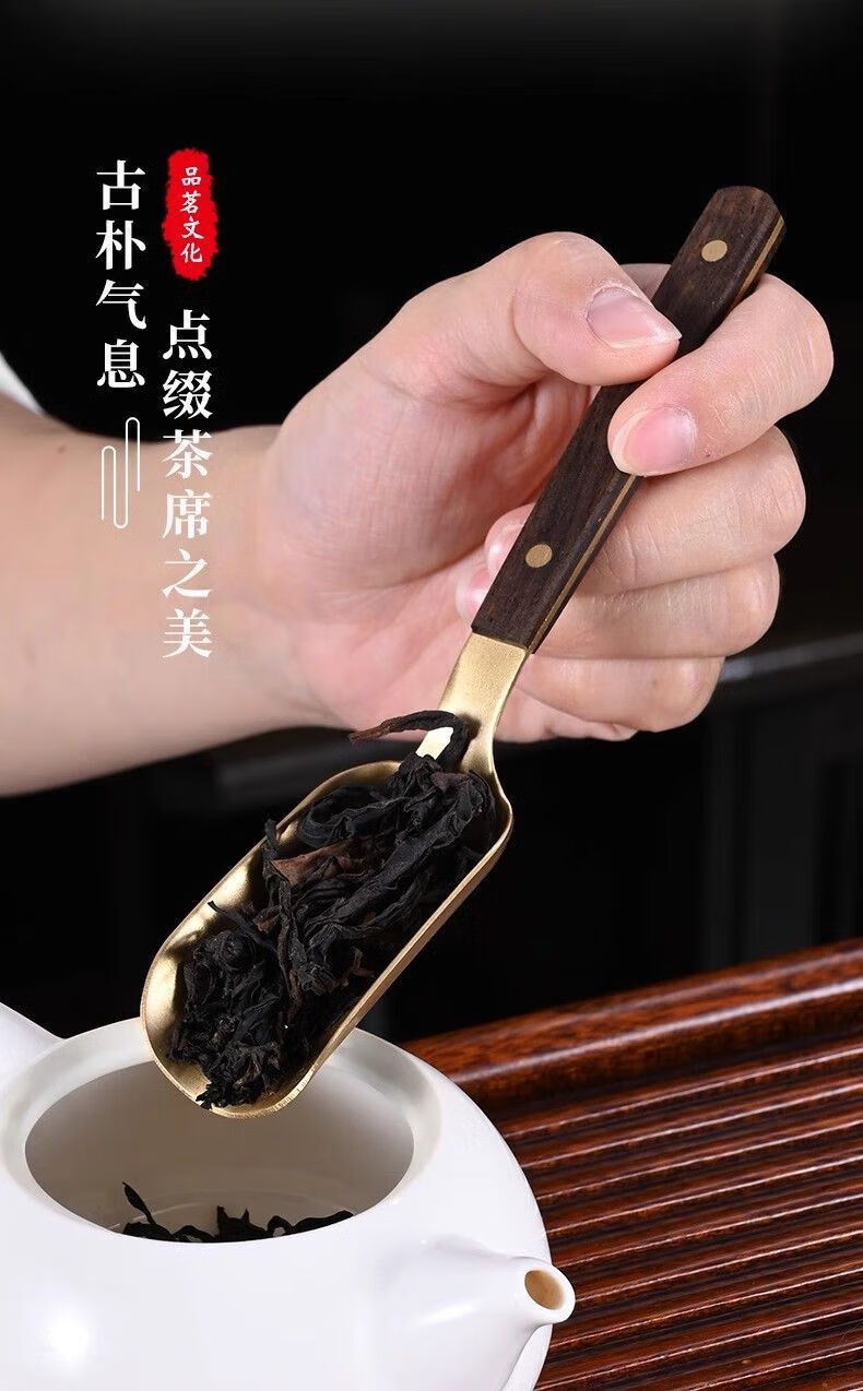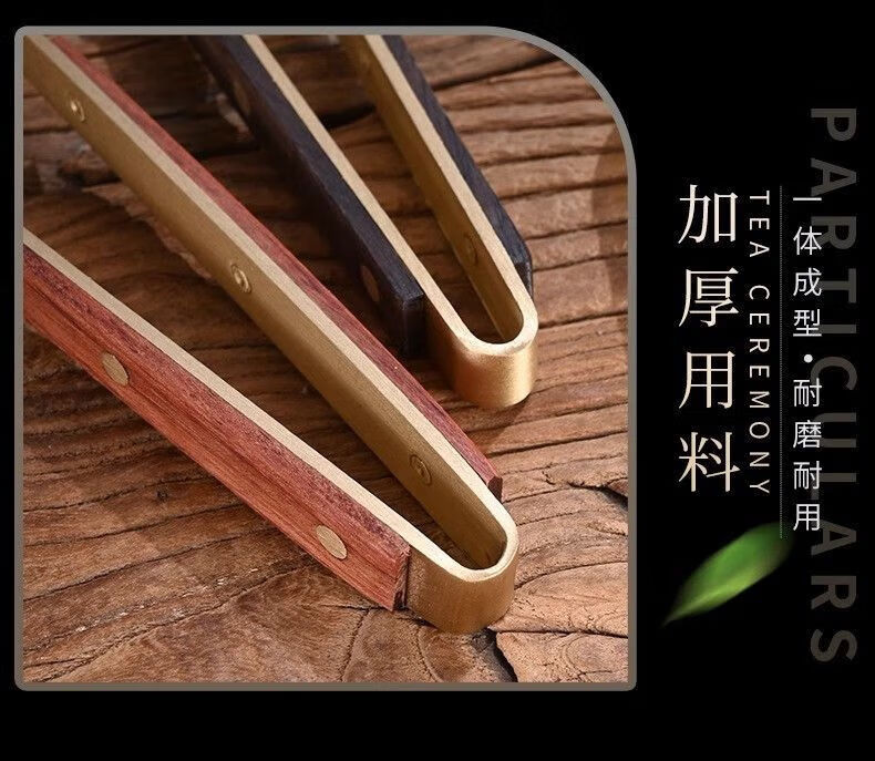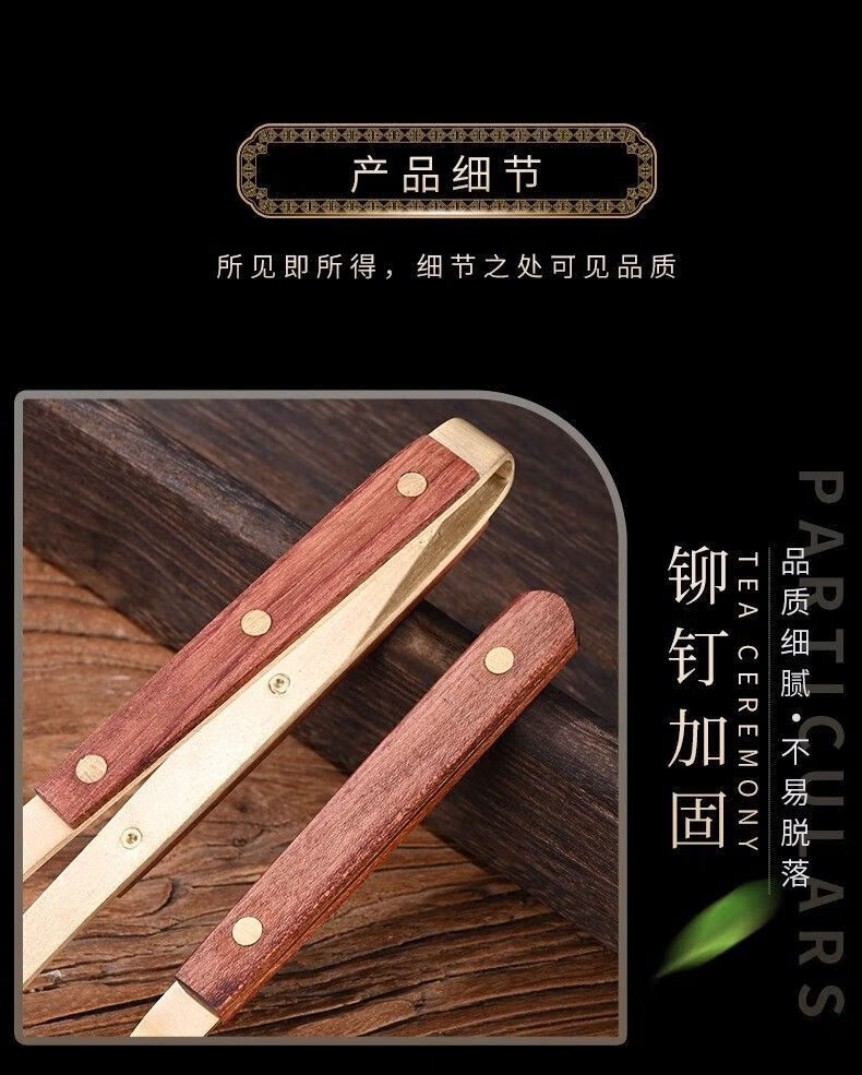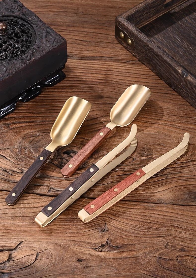 Meikejie Copper and Wooden Tea Spoon Set Three-piece Tea Ceremony Liujunzi Wooden Kungfu Tea Ceremony Three-piece Set Tea Pen Teaspoon Tea Clip (Set of 3) Wooden Copper (Upgraded Teaspoon + Tea Clip + Tea Pen)