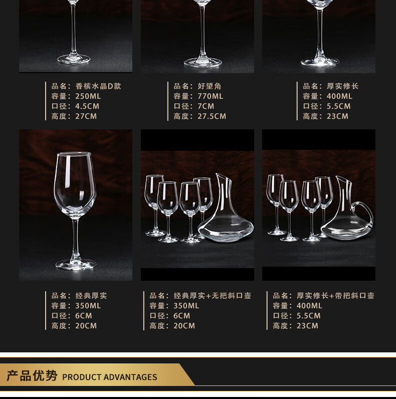 The same type of red wine glass set, household goblet, large decanter, wine set, European crystal glass, classic 330ml 2 pieces