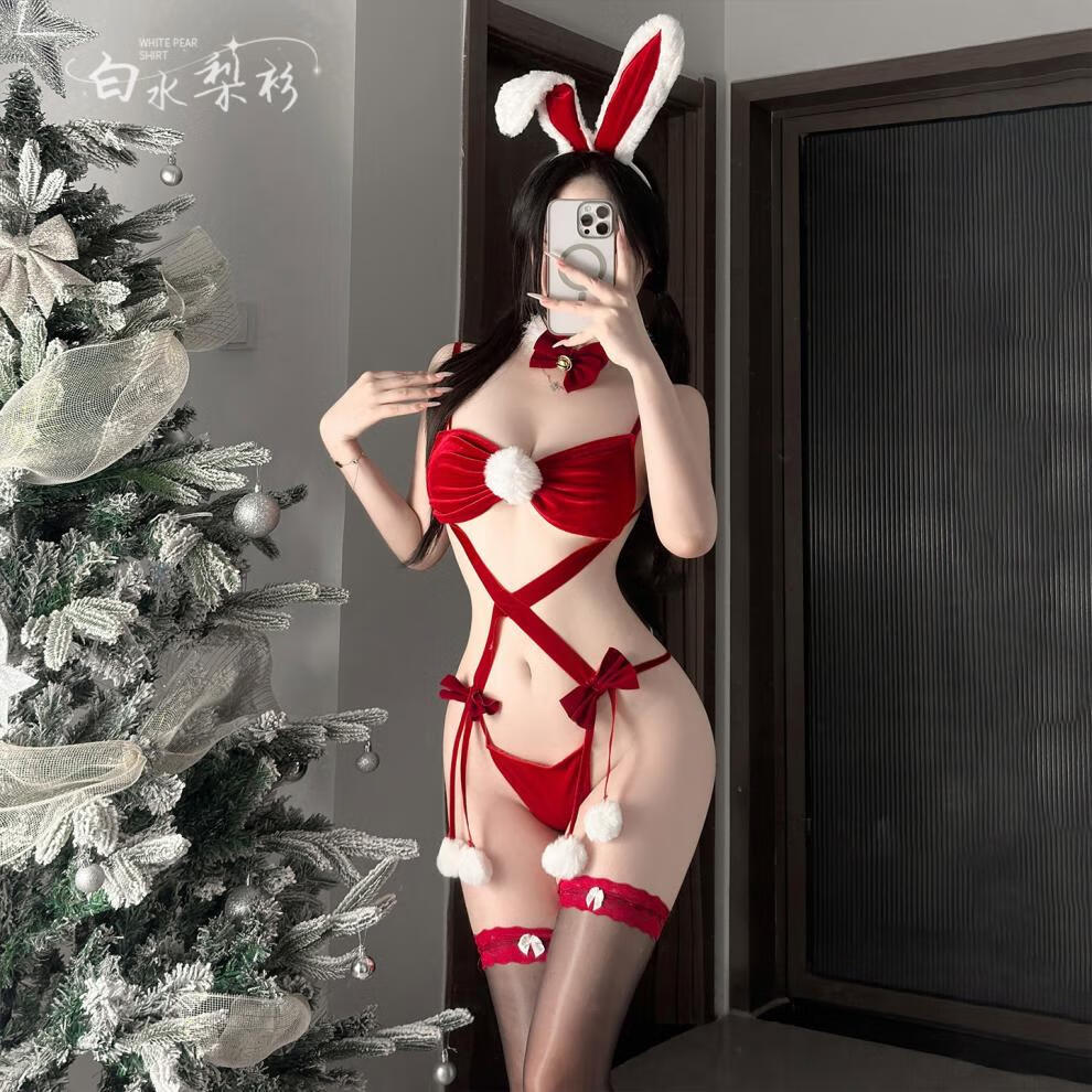 Christmas outfit bunny suit COS suit velvet tube top three-point uniform for women new pure desire shirt three-point bunny girl (including headband + neck ring + three-point jumpsuit) one size