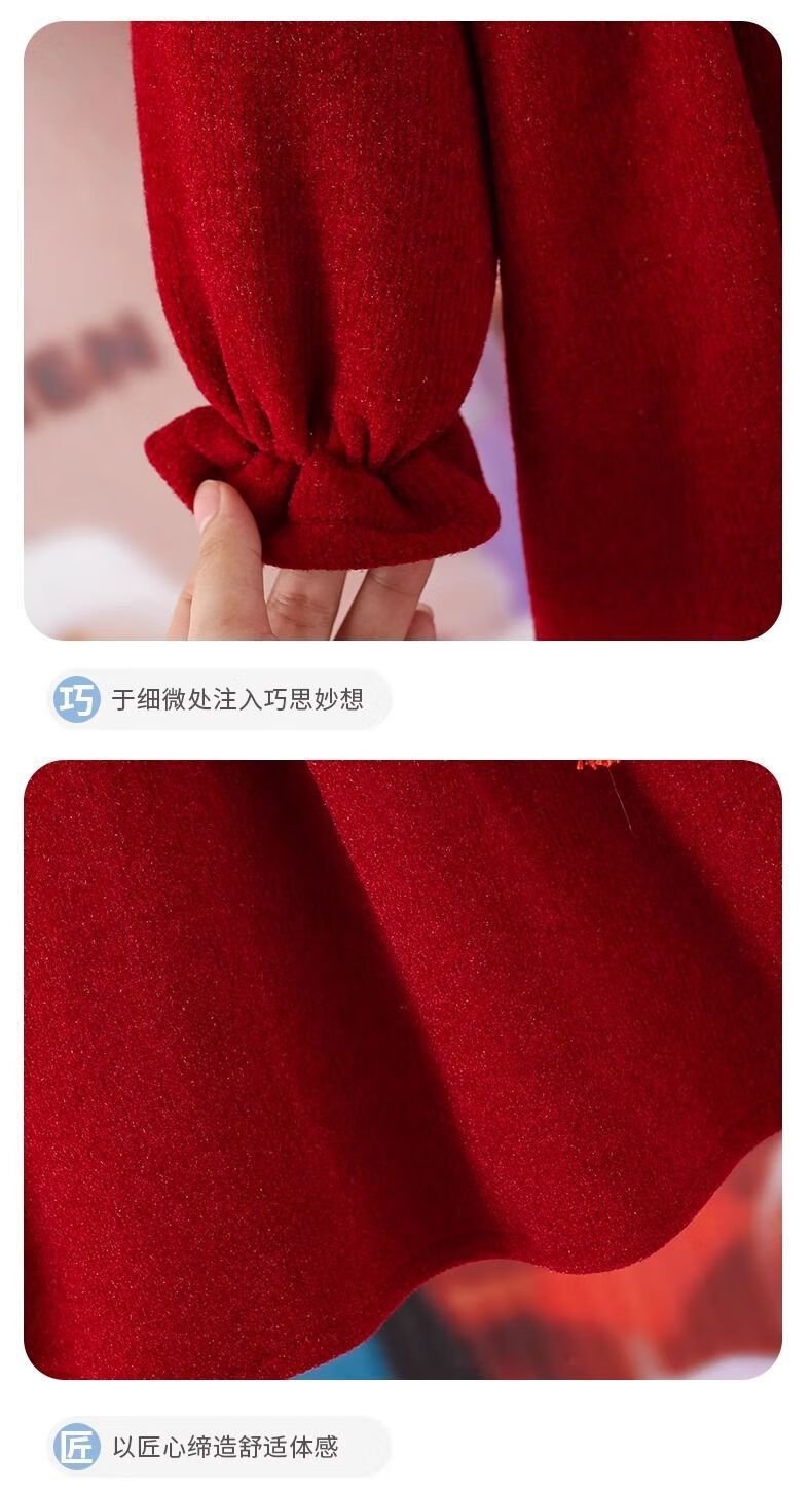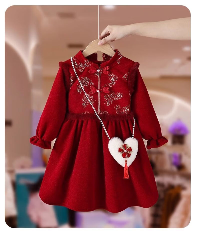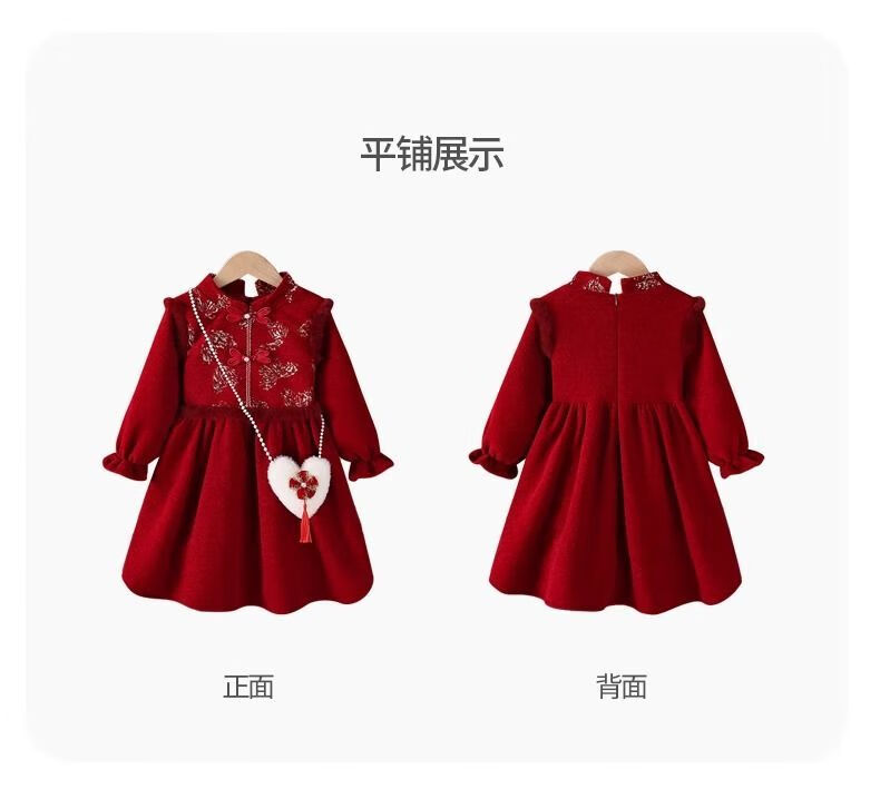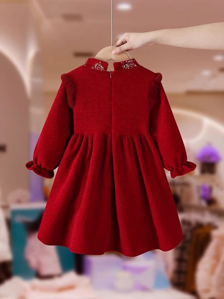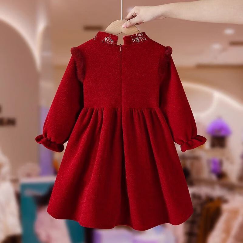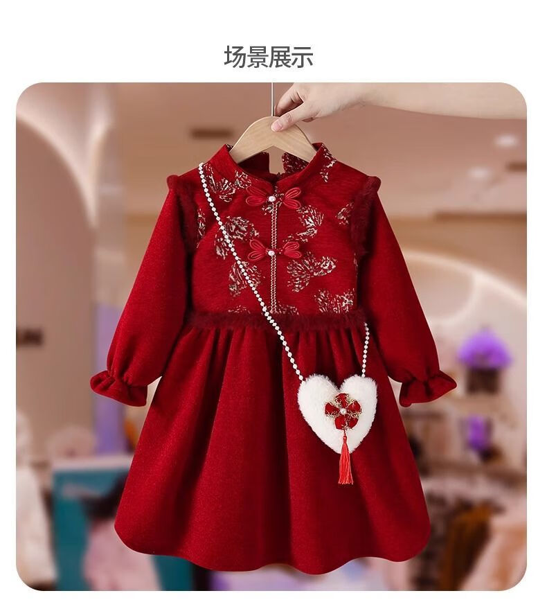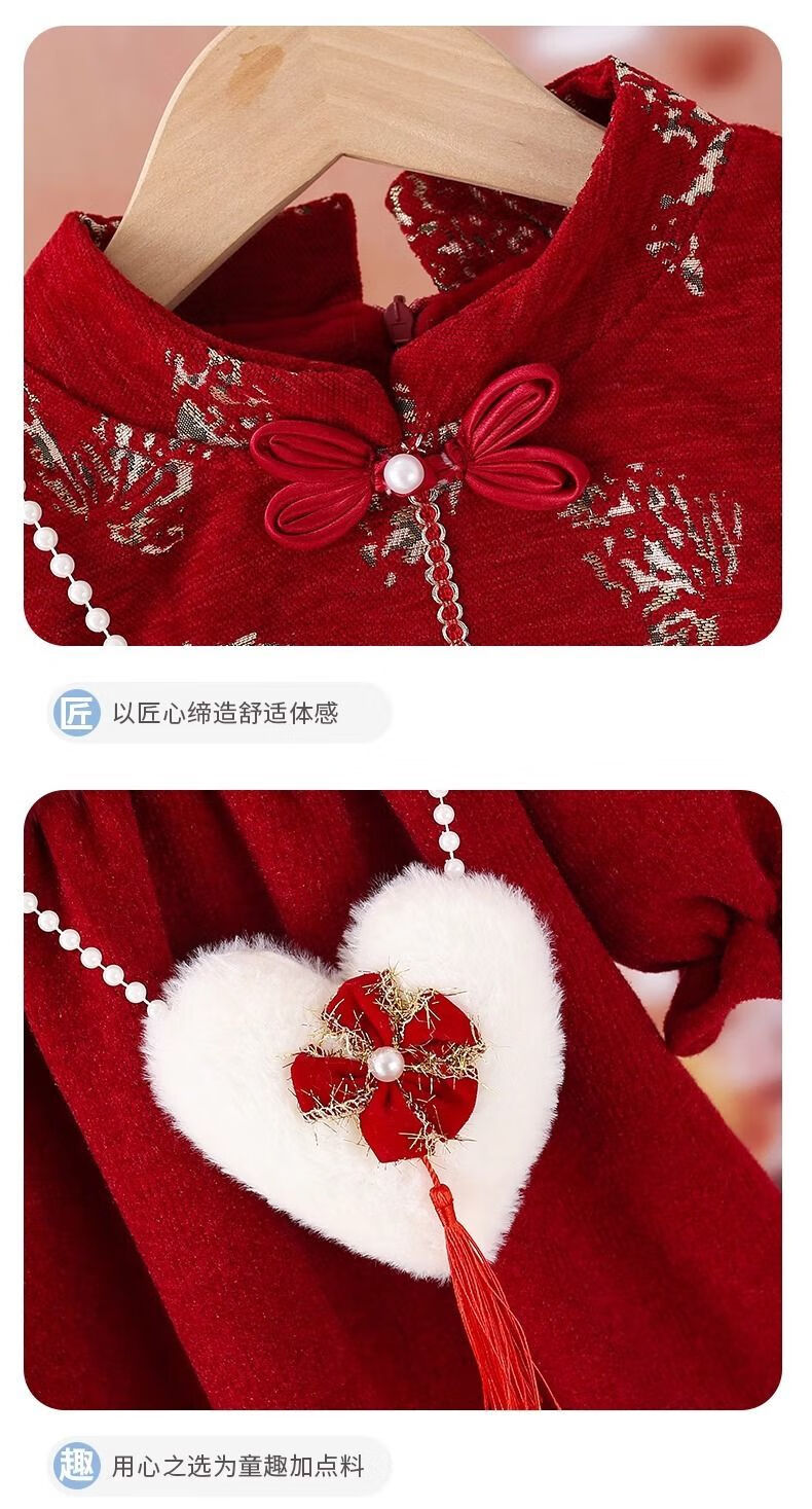 Disney Girls' Velvet New Year's Eve Clothes 2026 New Children's Winter Clothes National Style Dress Girls' Cheongsam Hanfu Skirt Red Plus Velvet Does Not Include Bag 48 Shipped with