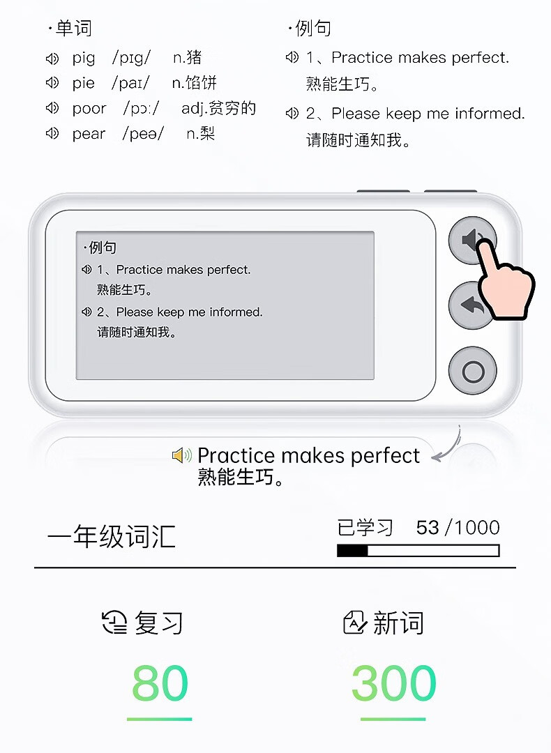 He Jiangong English word learning machine for primary school, junior high school, high school and university postgraduate entrance examination self-discipline ink screen portable card machine basic model 2.13 inches white model + headphones
