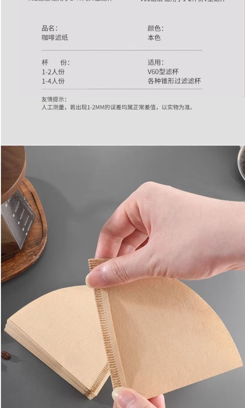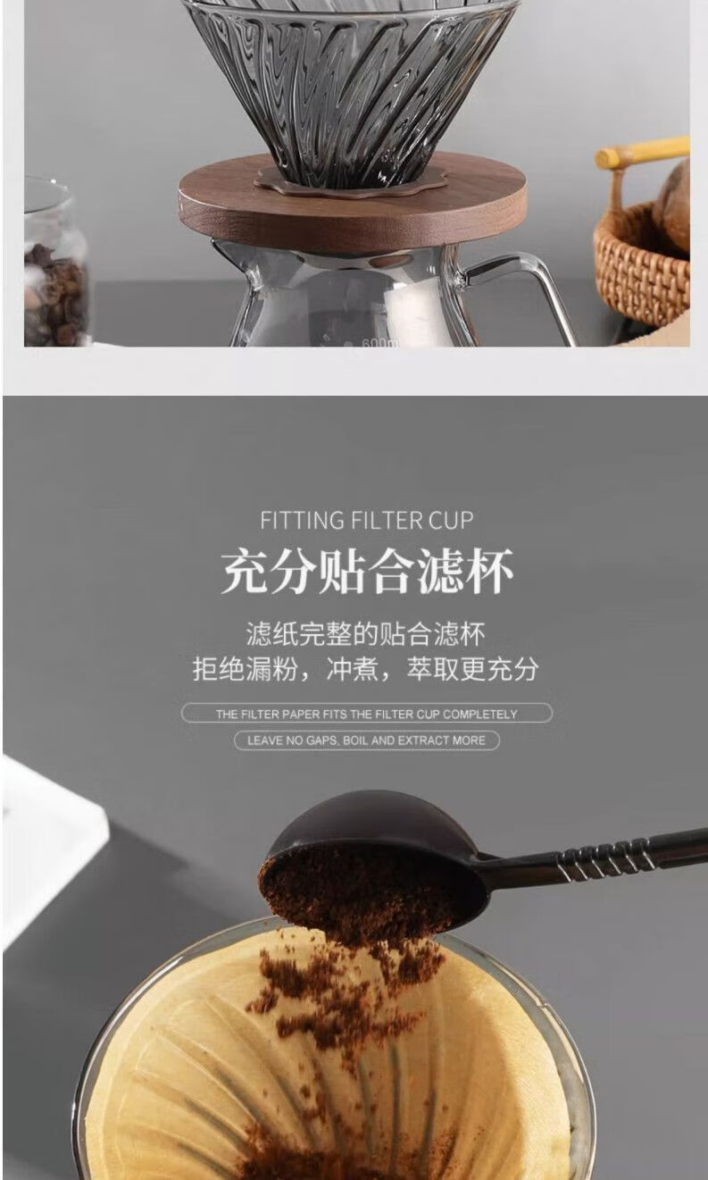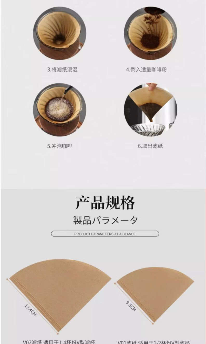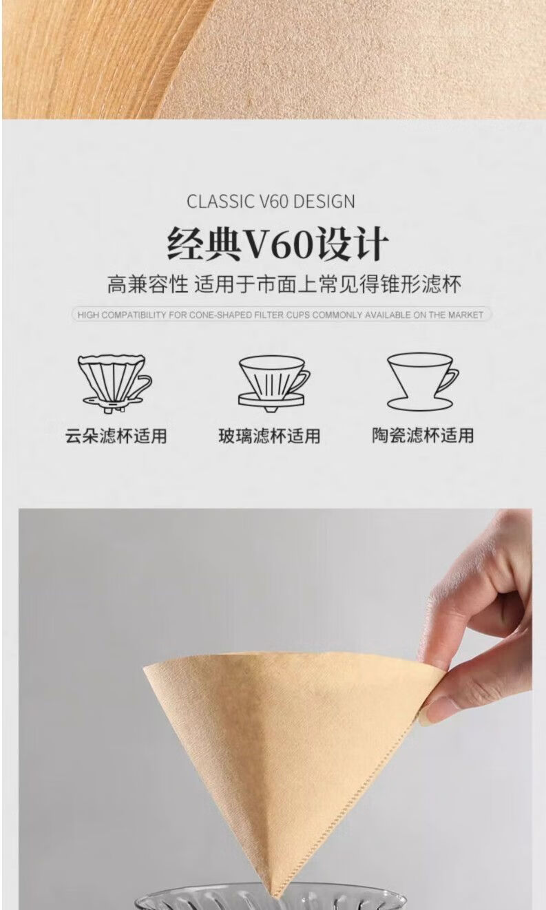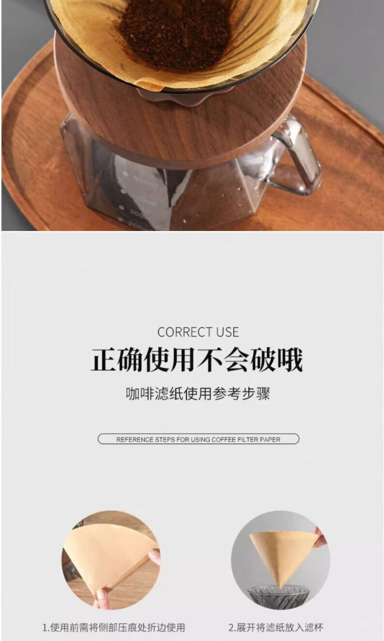 Vinoa coffee filter paper filter conical filter paper V60 drip-type hand-brewed coffee powder filter paper V60 hand-brewed coffee filter paper + solid wood pulp, no breakage, no leakage, 20 pieces, filter residue