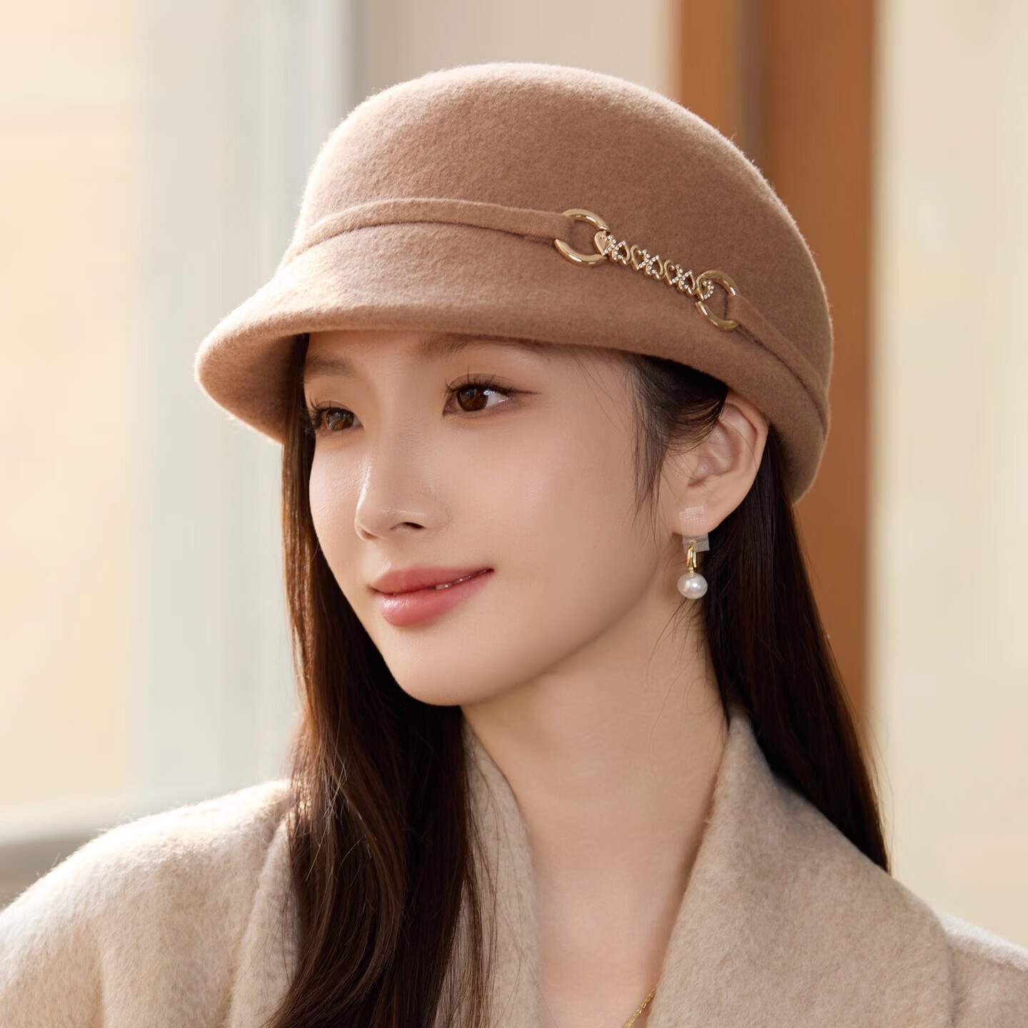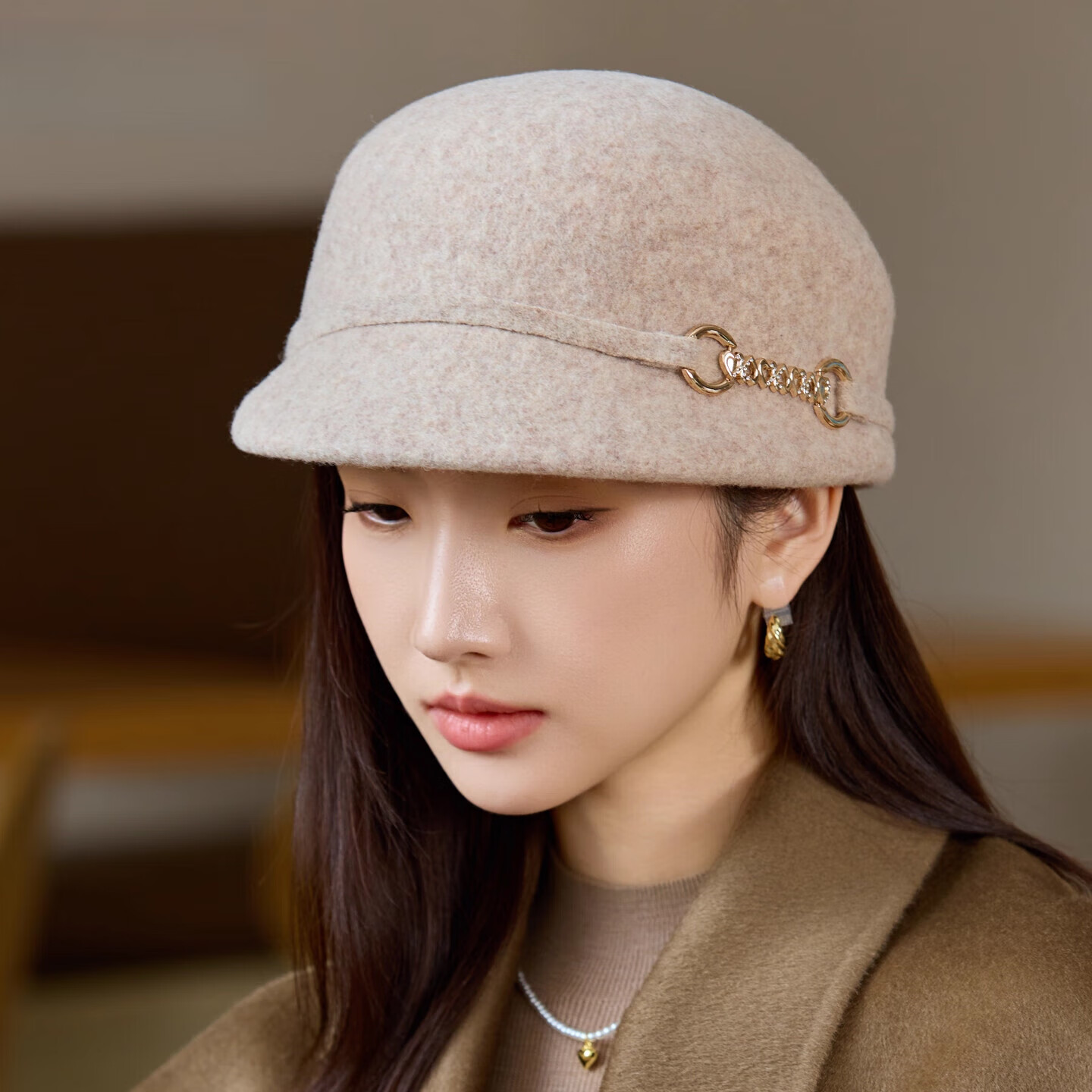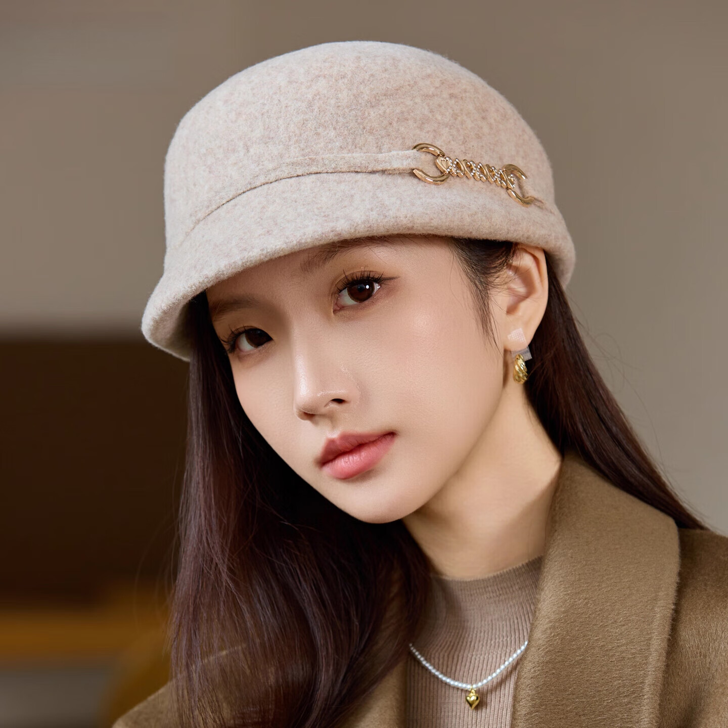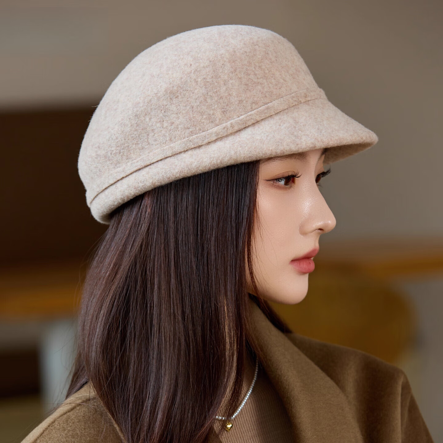 GEFWEIMKL Merino Wool Fisherman Hat Women's Autumn and Winter Elegant Fashion Hat Women's British Retro Versatile Warm Beret Khaki Adjustable (54-59cm)