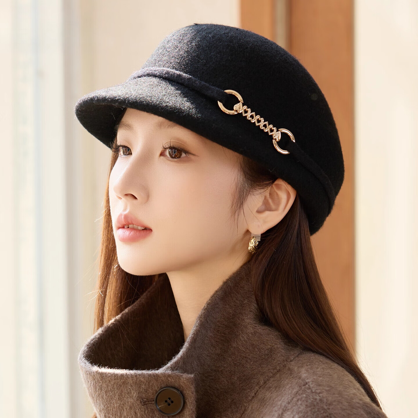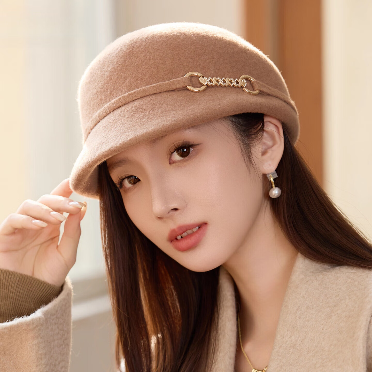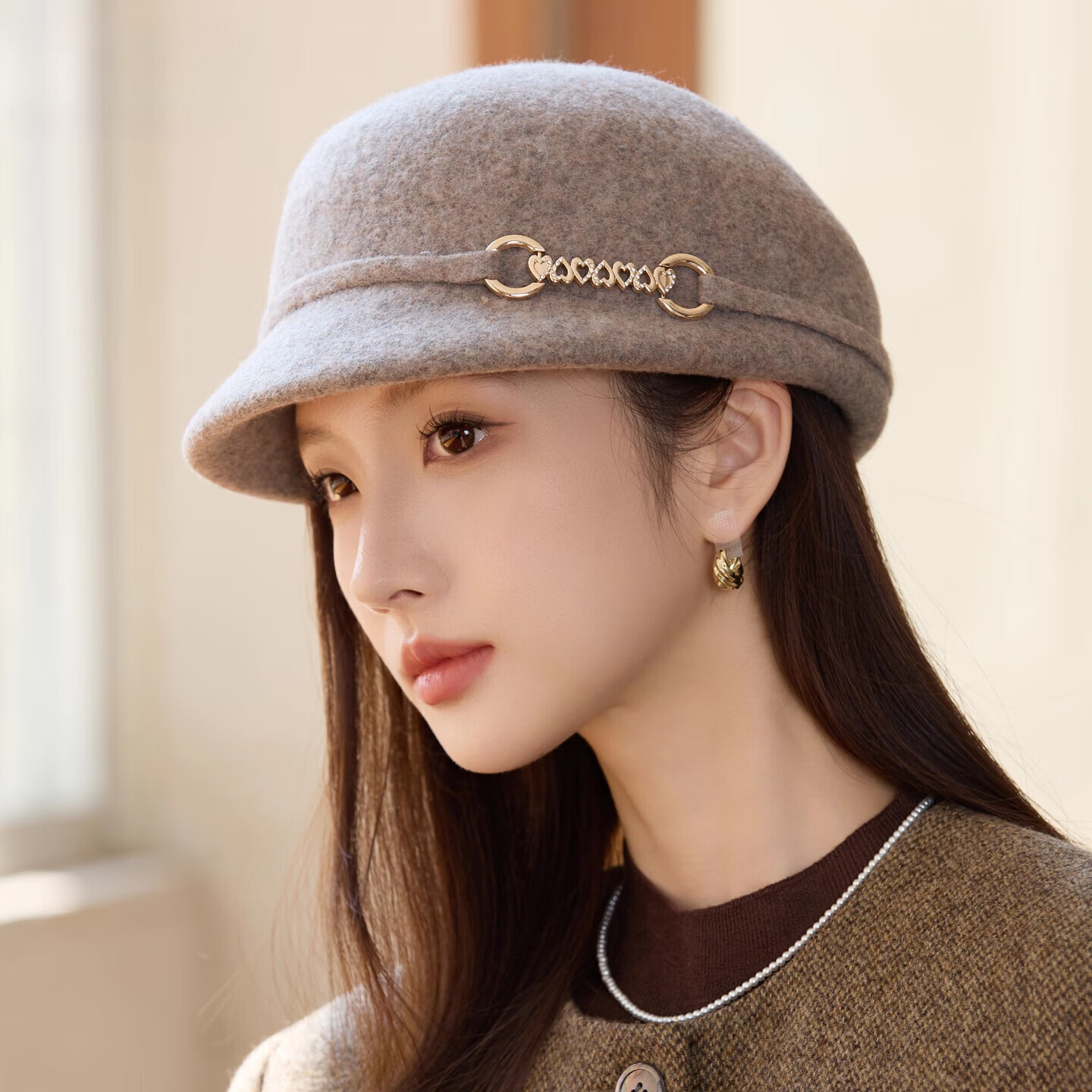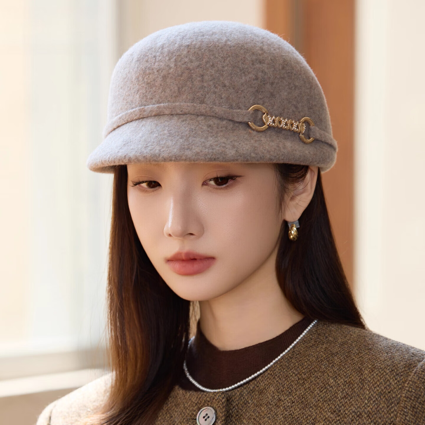GEFWEIMKL Merino Wool Fisherman Hat Women's Autumn and Winter Elegant Fashion Hat Women's British Retro Versatile Warm Beret Khaki Adjustable (54-59cm)