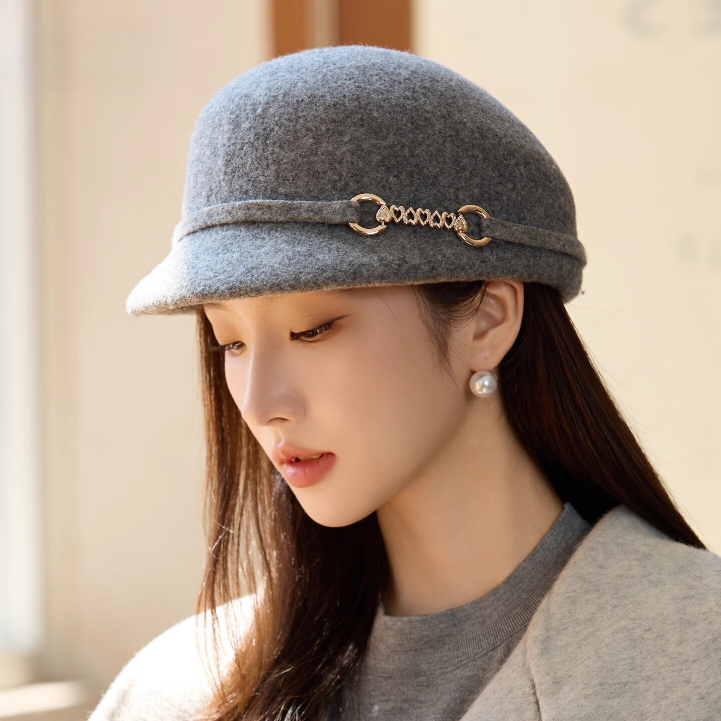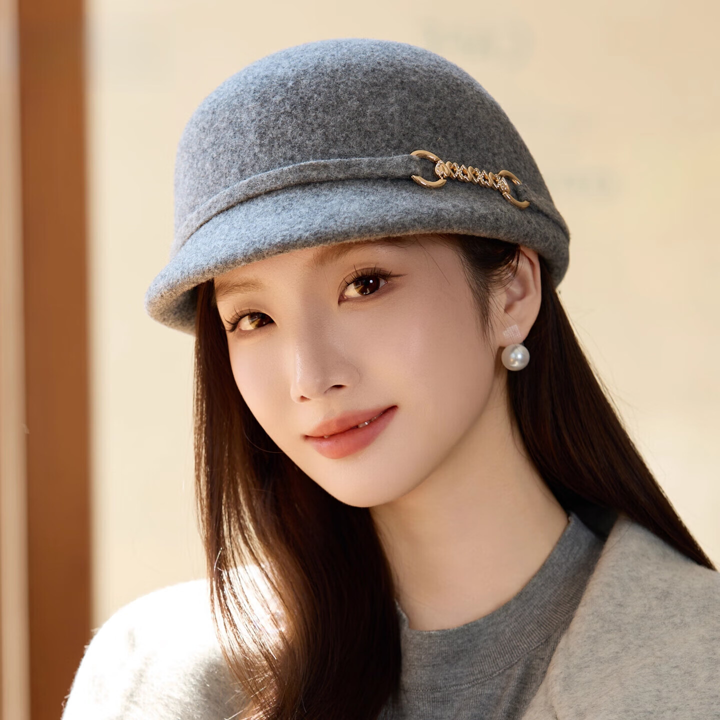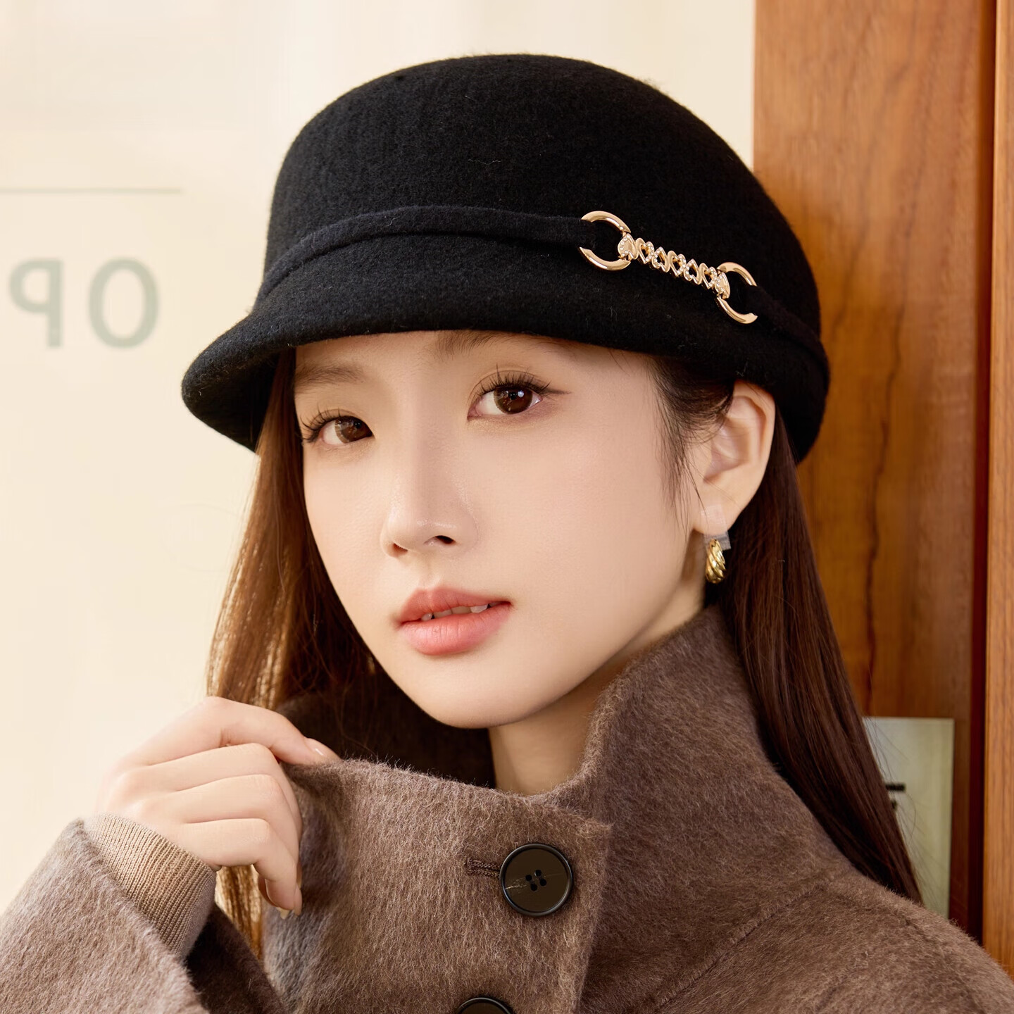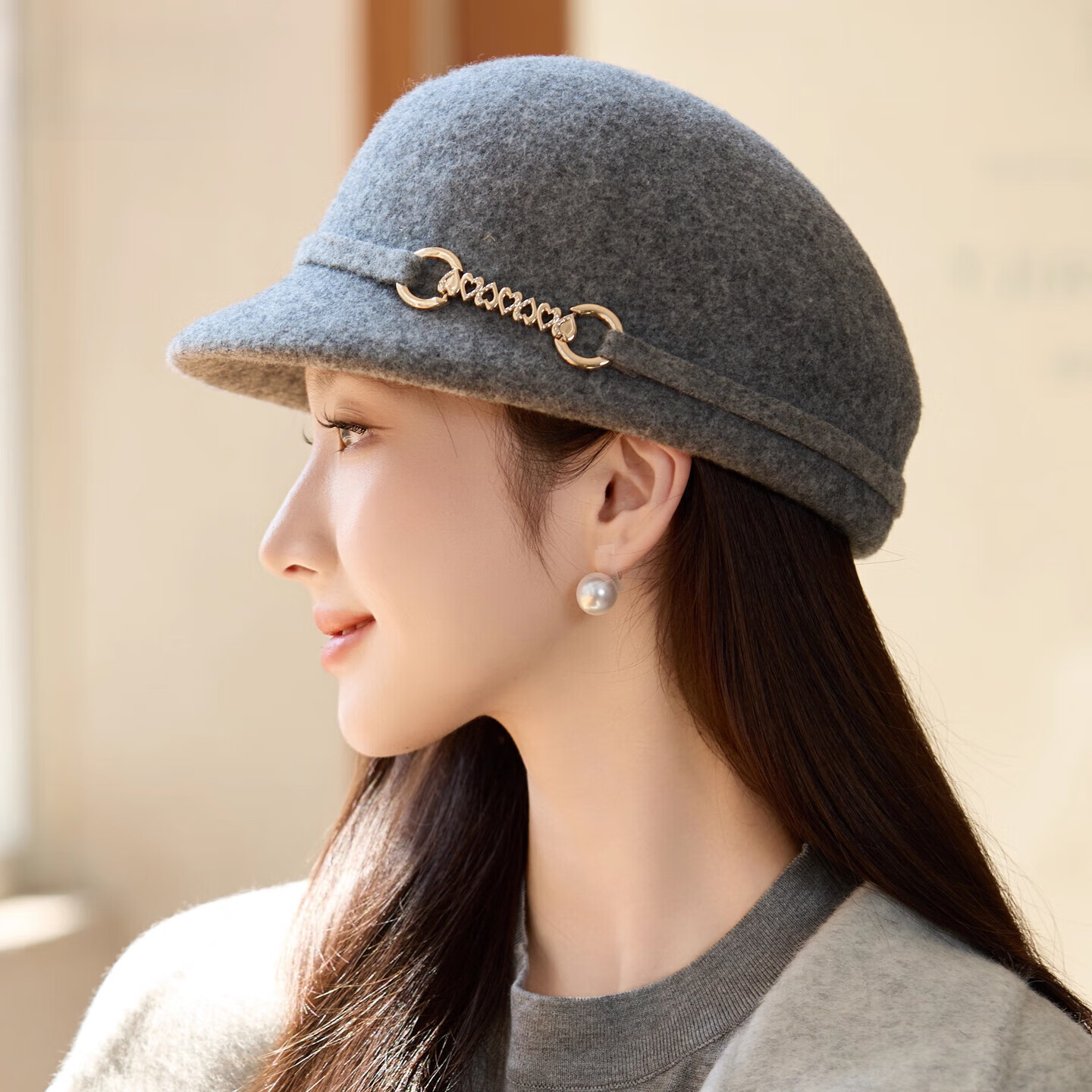 GEFWEIMKL Merino Wool Fisherman Hat Women's Autumn and Winter Elegant Fashion Hat Women's British Retro Versatile Warm Beret Khaki Adjustable (54-59cm)