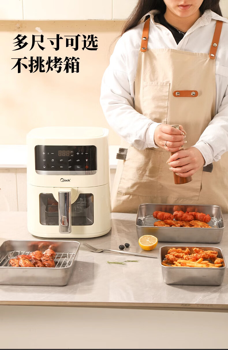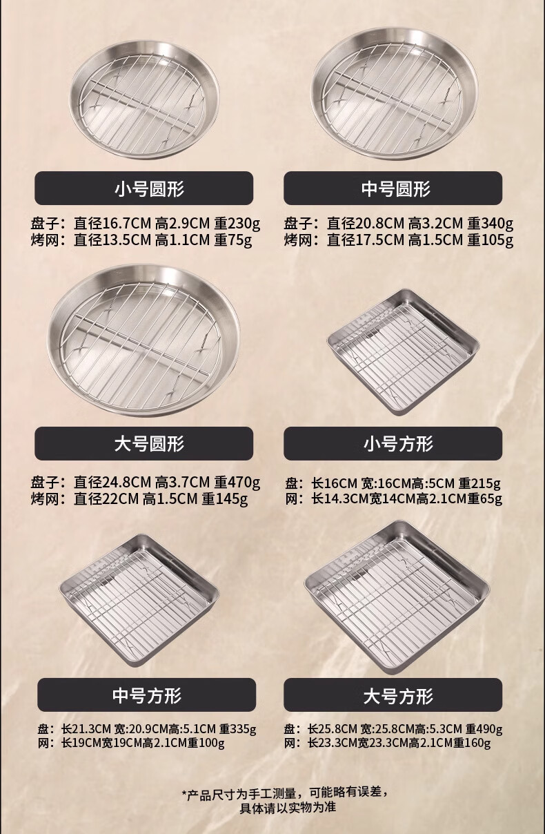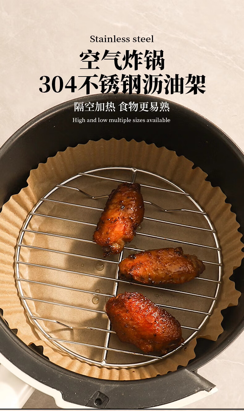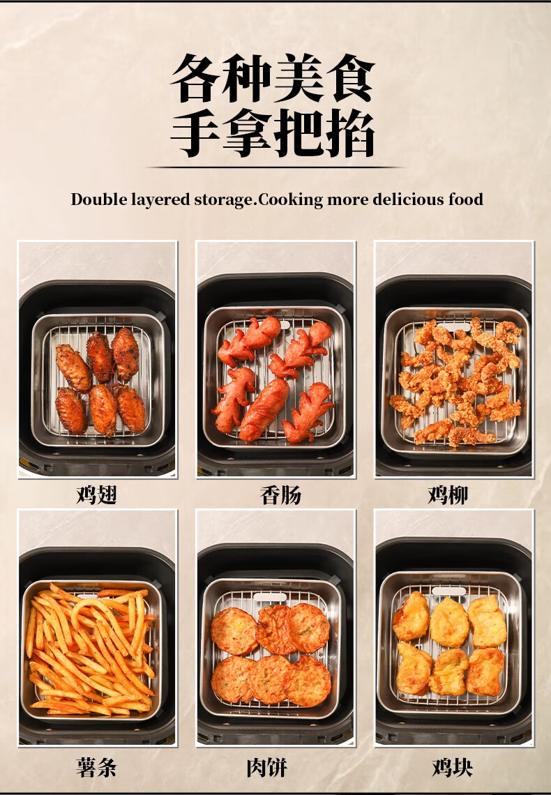 Jingdie 304 stainless steel air fryer baking pan with mesh water filter and oil filter square plate cooked food display plate barbecue sprinkling plate small square baking pan + grill suitable for 3.5L-8L fryer