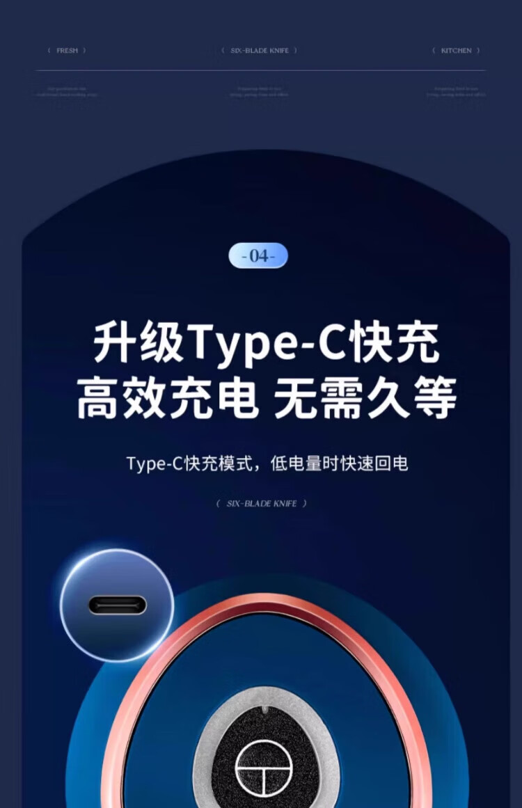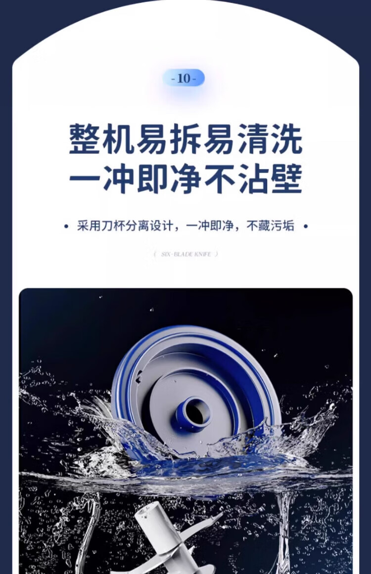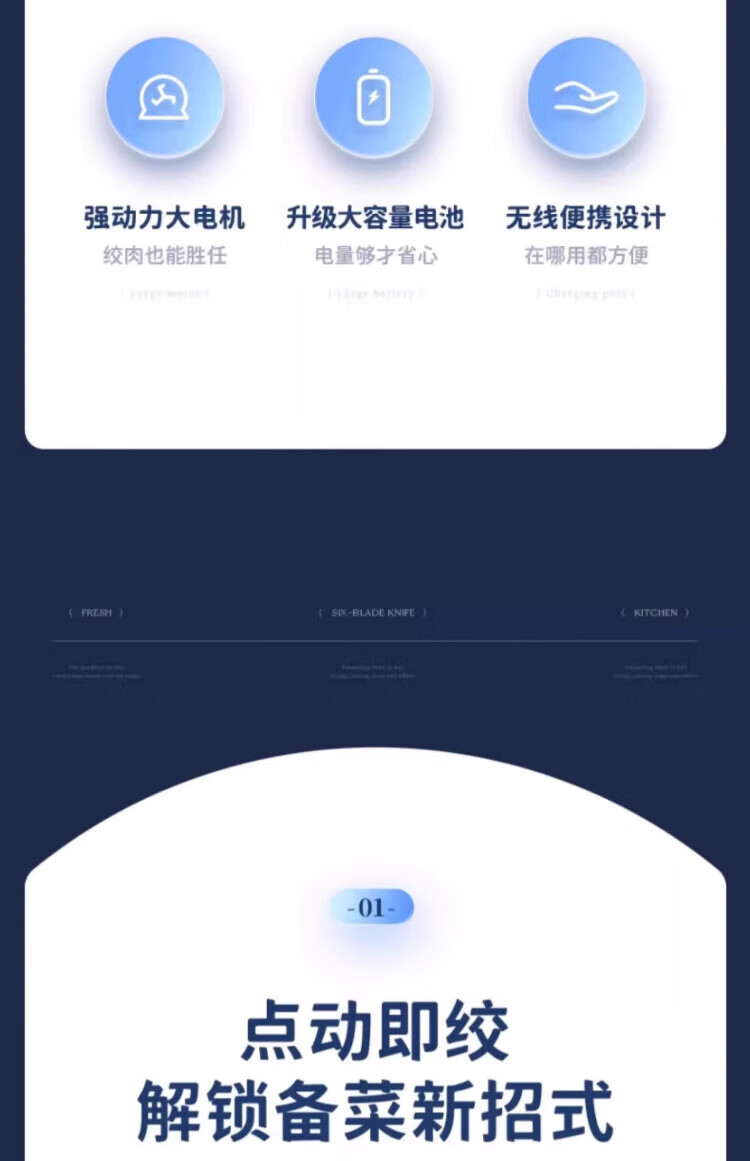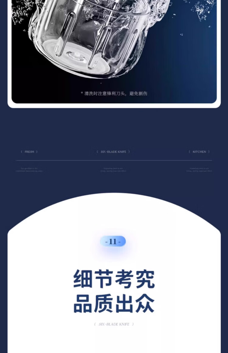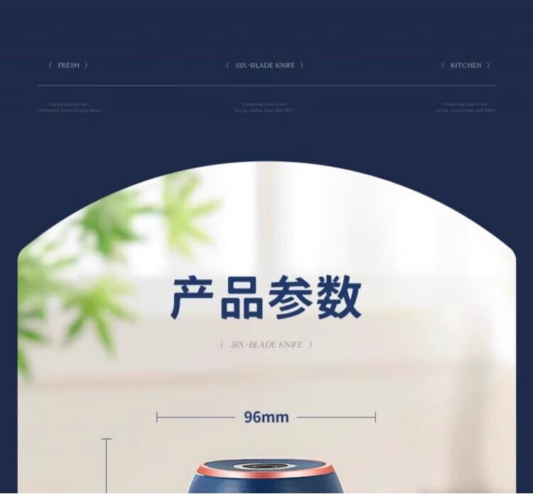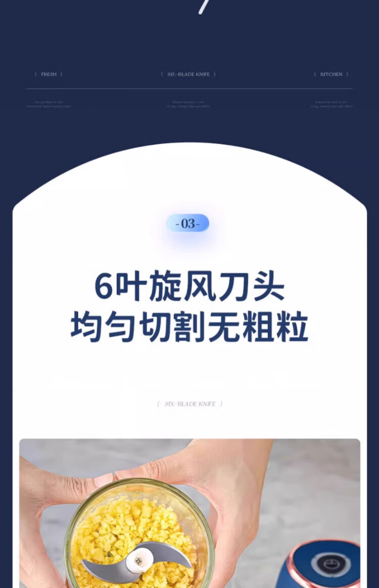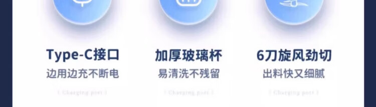 German meat grinder household electric small automatic multi-function stuffing minced meat grinding food supplement machine cooking mixer glass 350ML dark blue six-blade knife minced meat + Type-C charging model