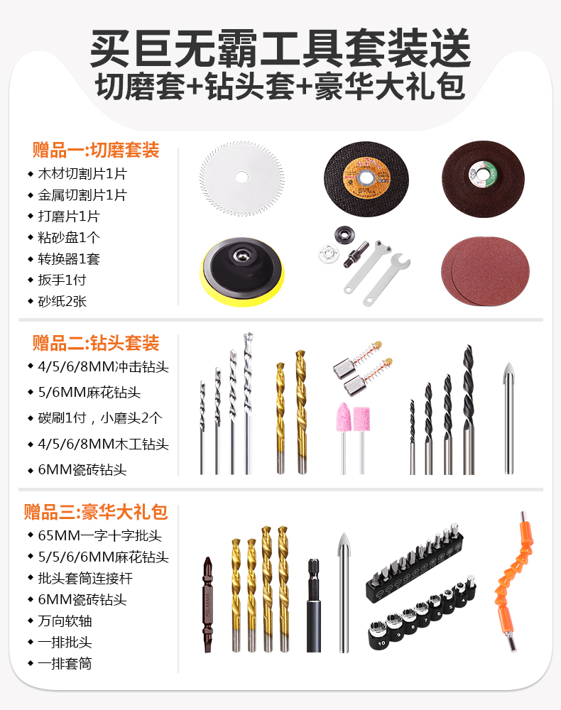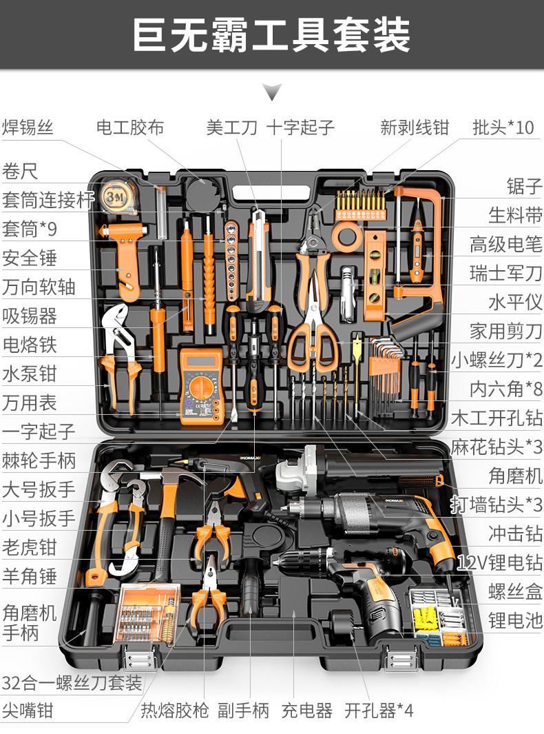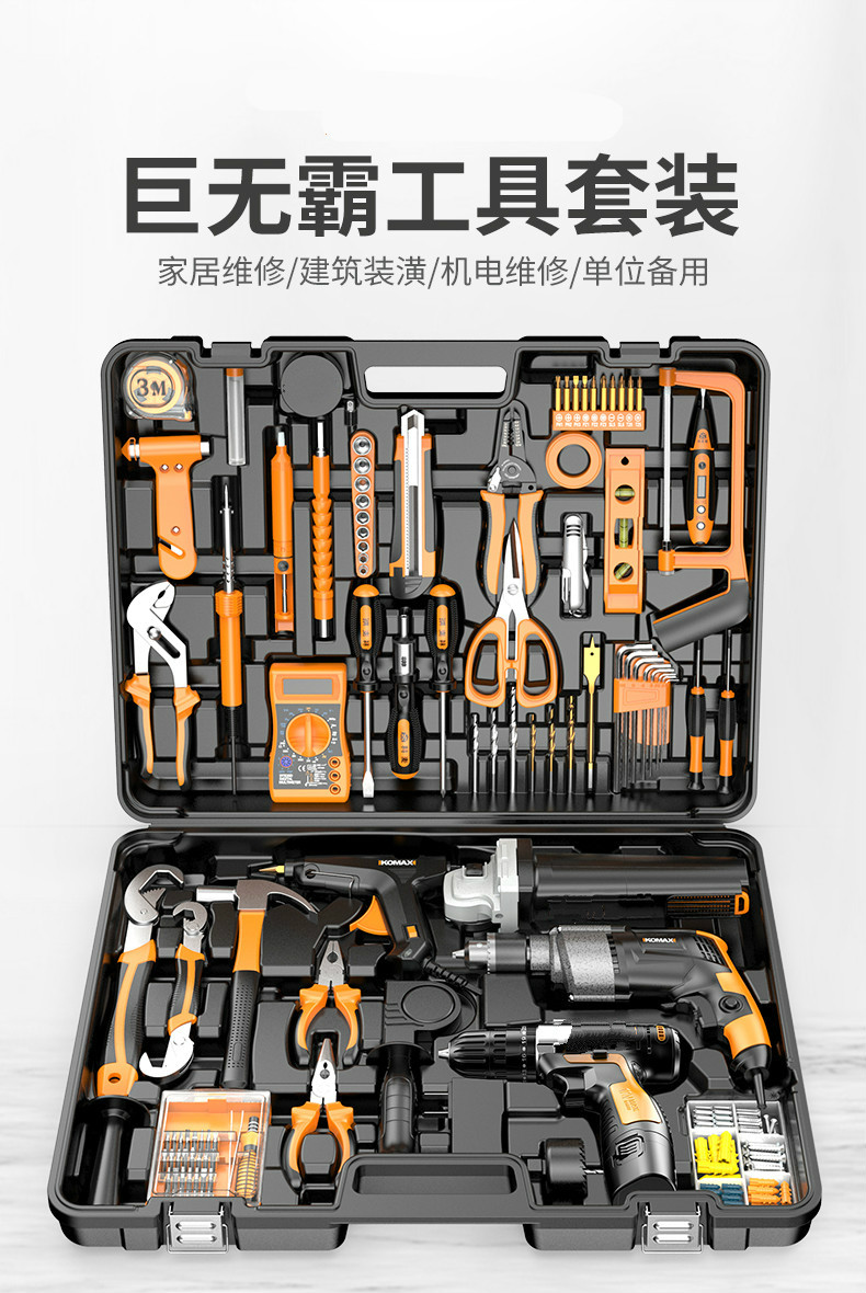 German quality household electric hand tool box set, complete hardware electrician repair multi-functional giant set, drill bit set as a gift