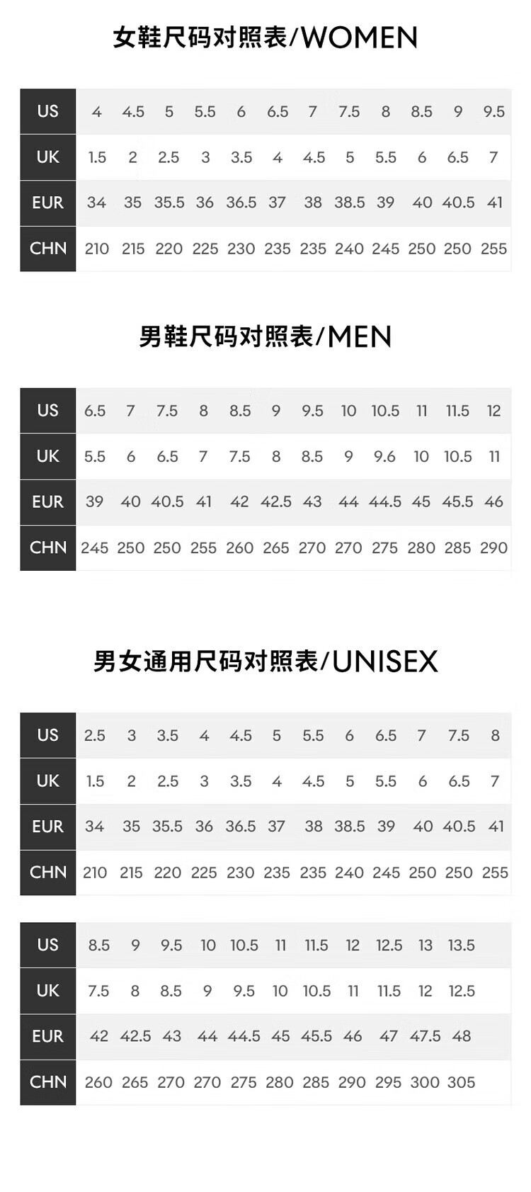 China (cm) 36 - 37 38 - 39 40 - 42 43 - 44 45 - 47