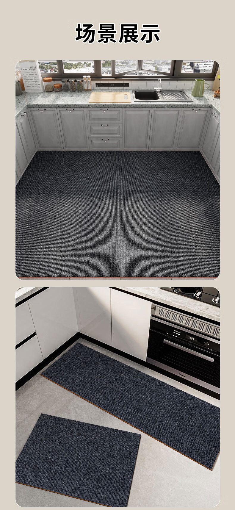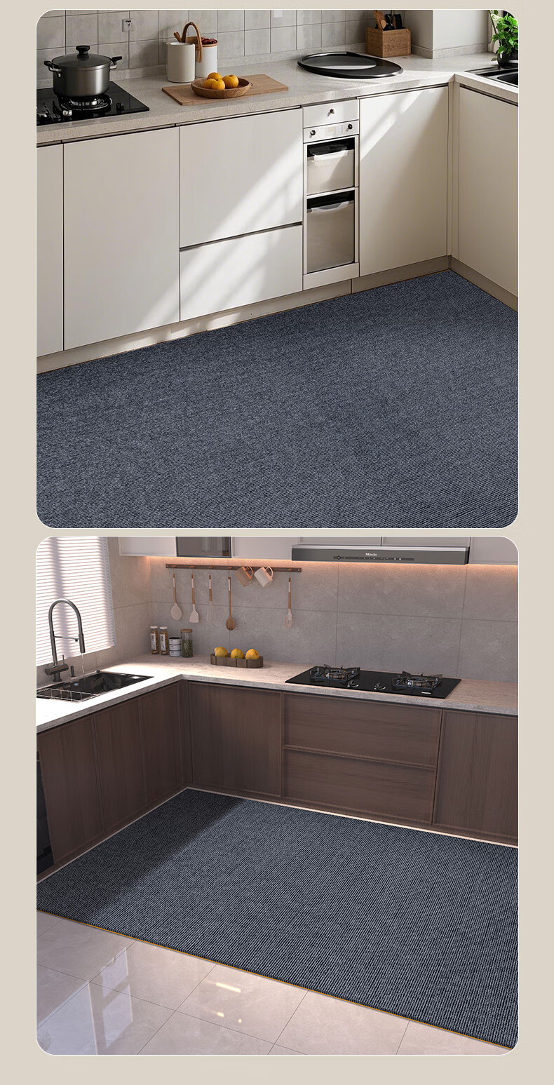 Jun Yuexi kitchen floor mat is waterproof, non-slip, wipeable, washable, oil-proof, full-cover, special high-end mat, stain-resistant, household large area, gray TPE single stripe 9mm thickened version 200cm*300cm