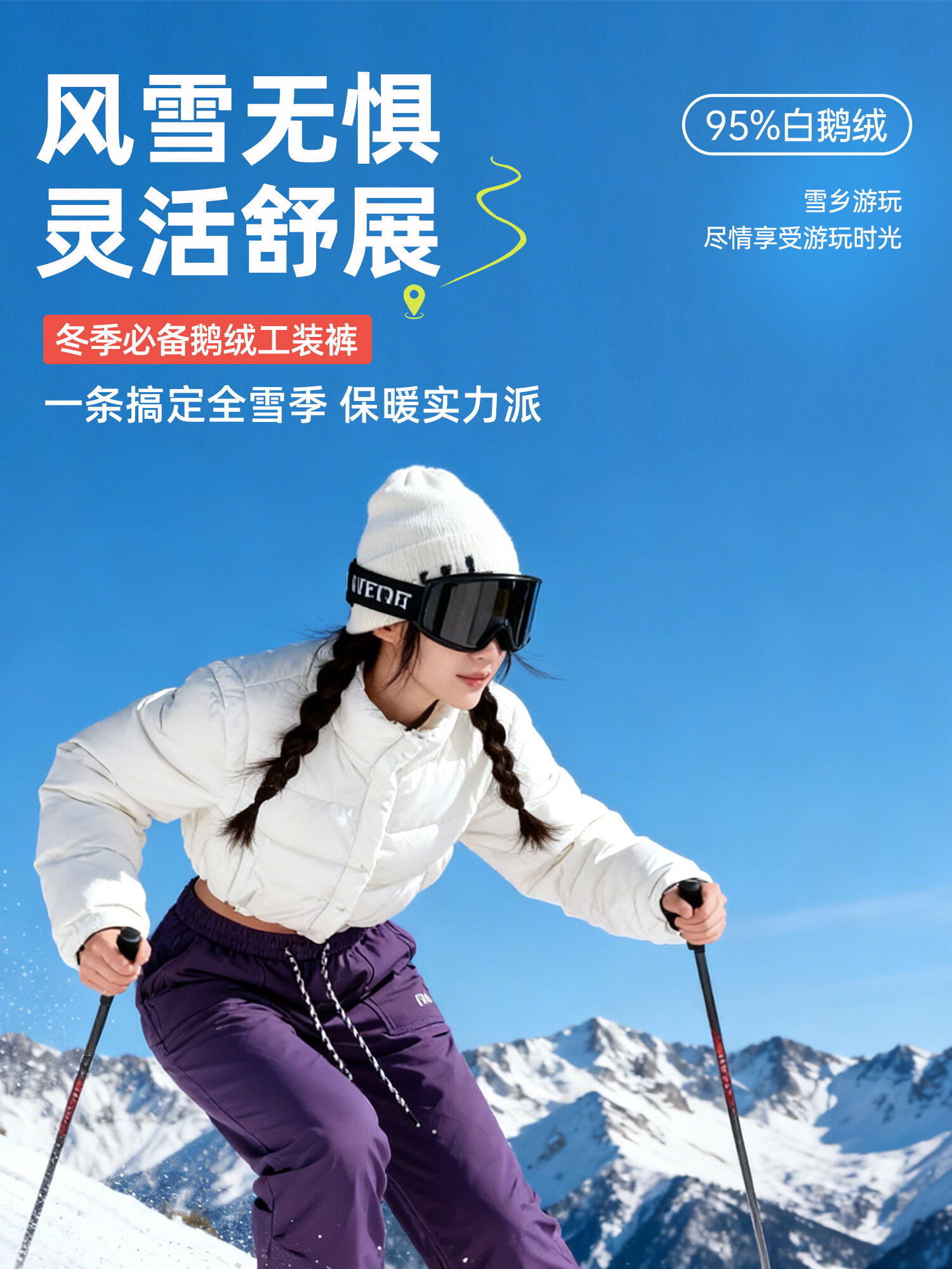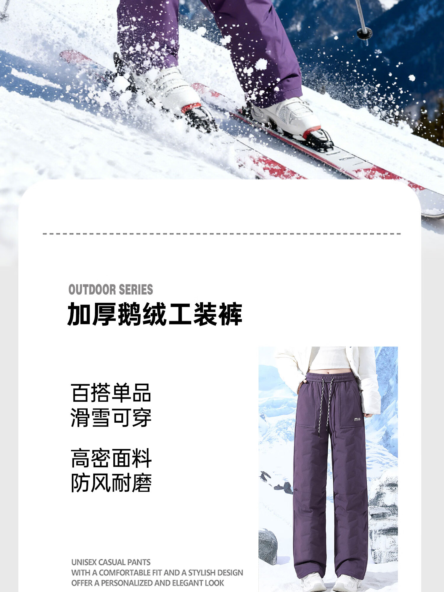 RUIBK Northeast Ski Pants Women's 2025 New Winter Minus 40 Degree Goose Down Jacket Pants Harbin Workwear Outdoor Waterproof White - 95 White Goose Down XL 105-115Jin Jin is equal to 0.5 kg