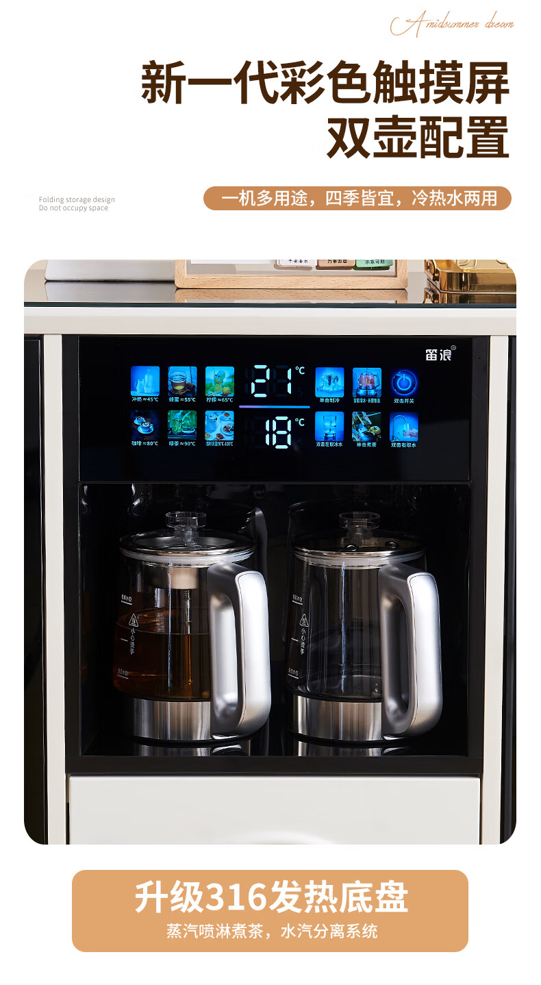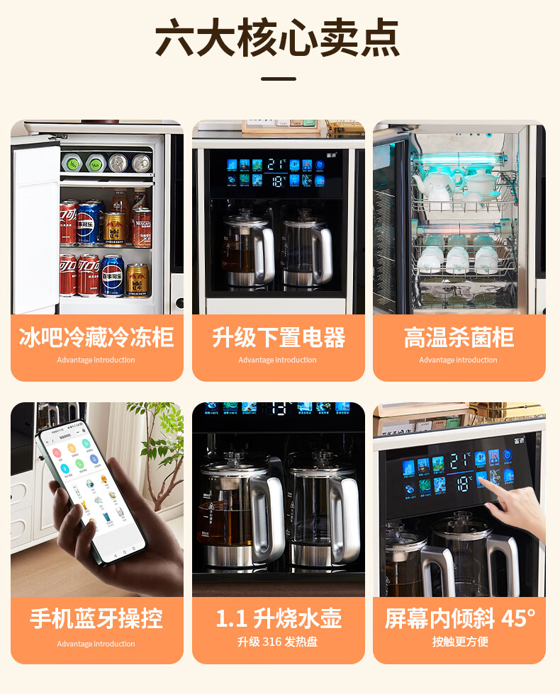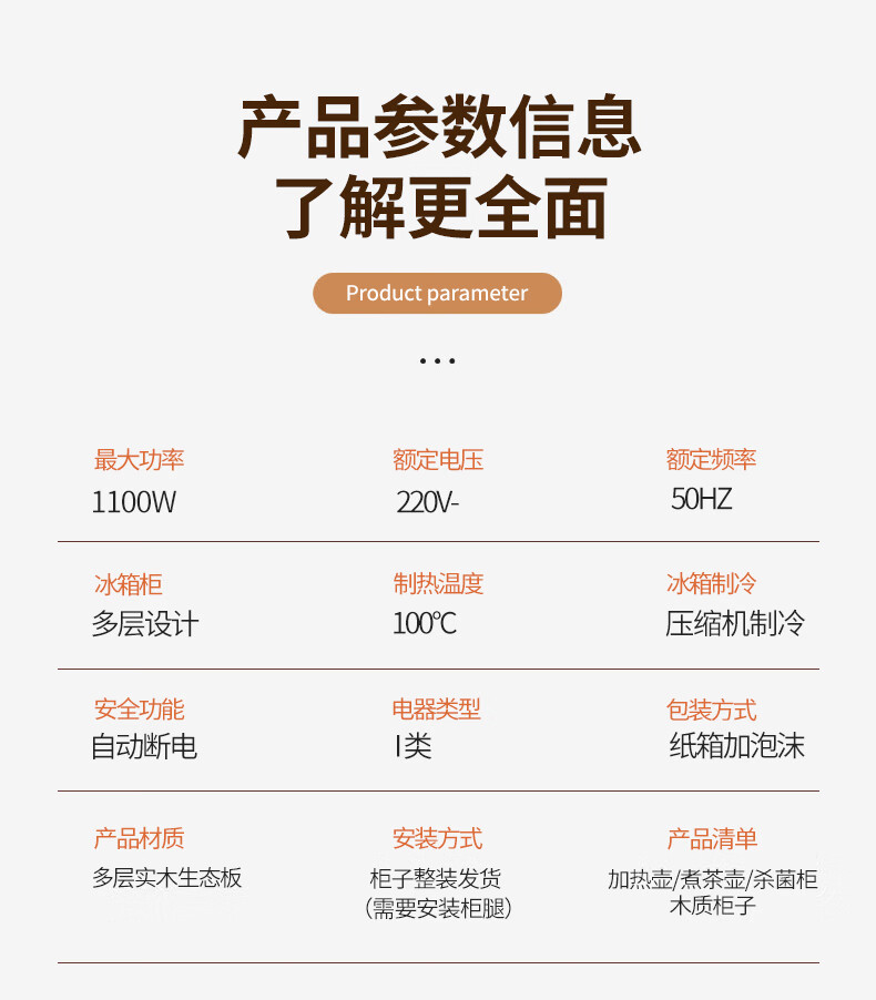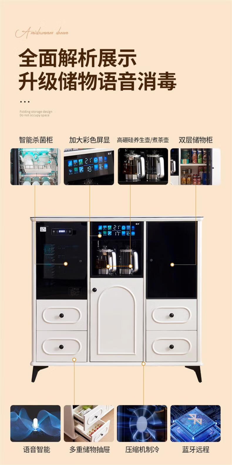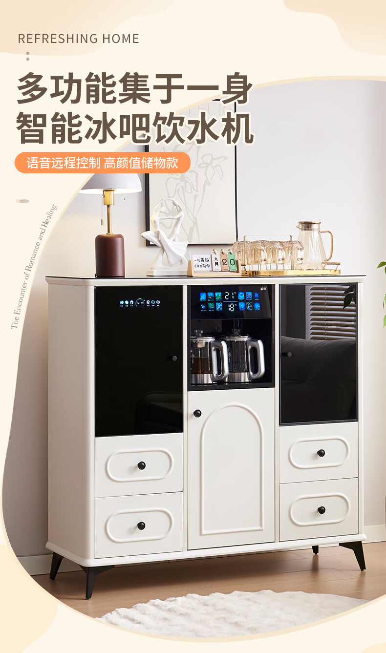 Wanbao with refrigerator ice bar solid wood tea bar water dispenser embedded office home dining side cabinet home fully automatic all-in-one 1913 walnut color warm single cabinet heating type ice warm