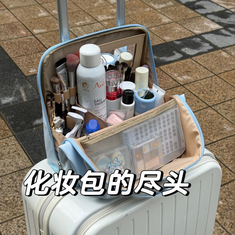 JPHZNB stand-up cosmetic bag with mirror, women's large-capacity portable hangable suitcase, travel portable partition collection, portable partition collection