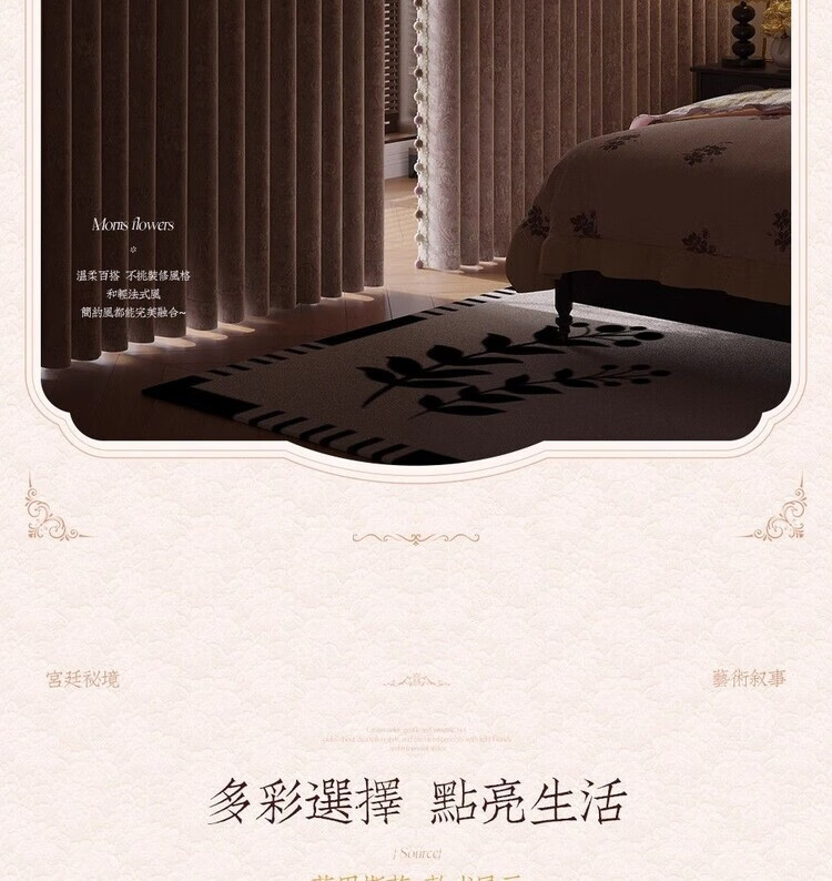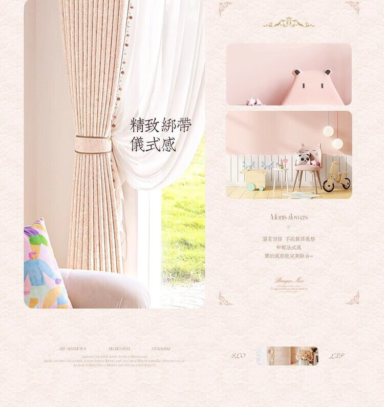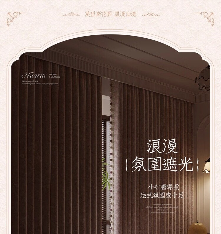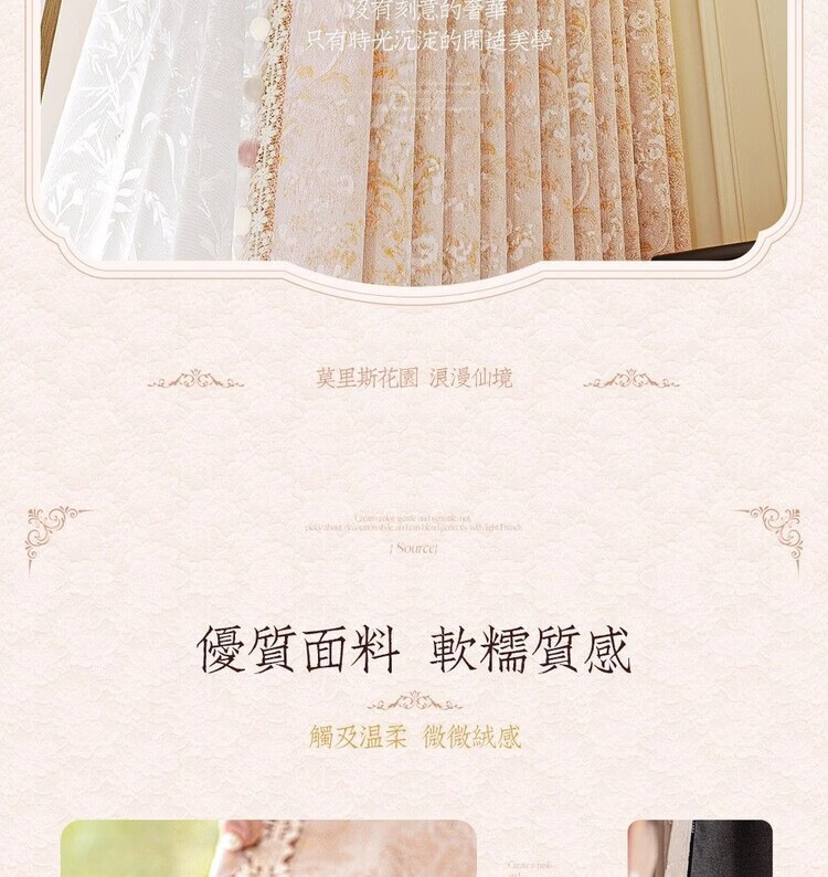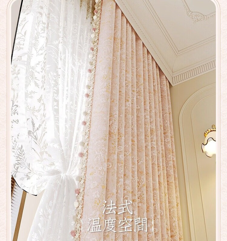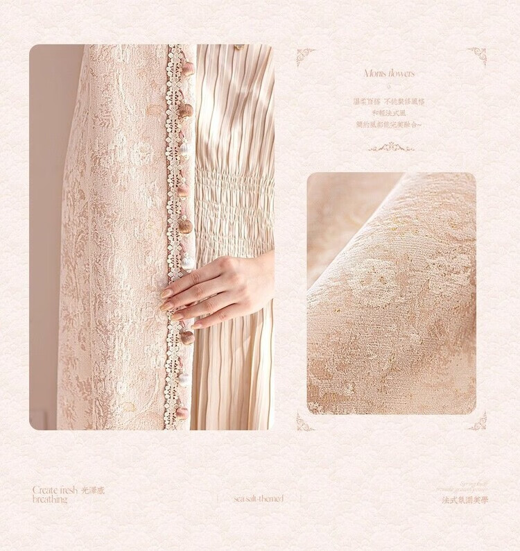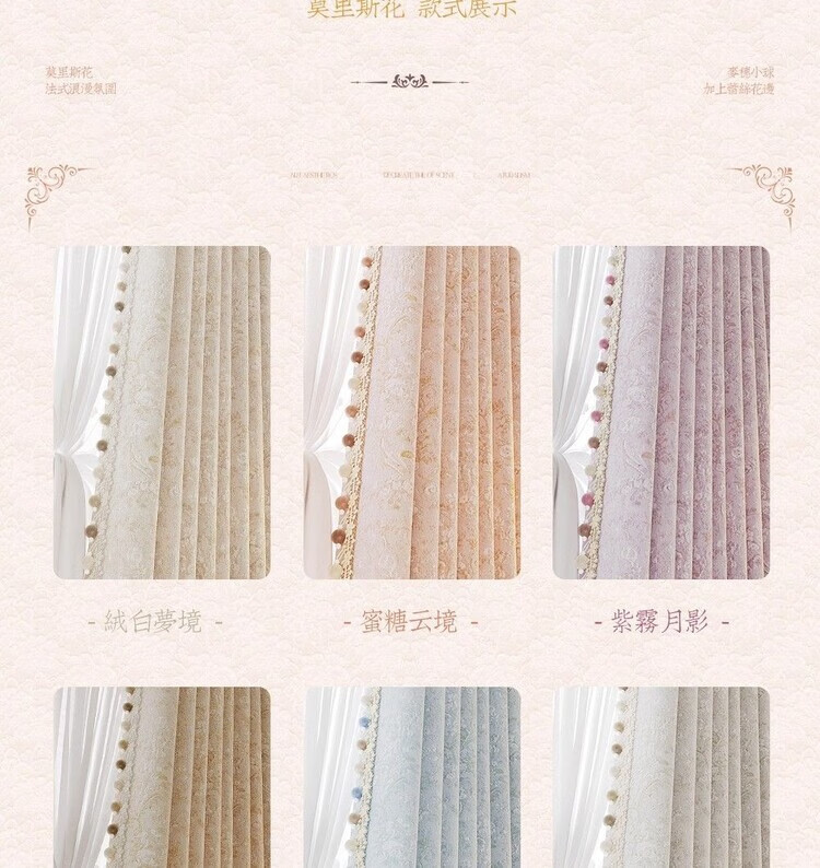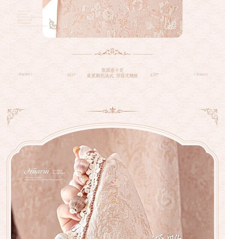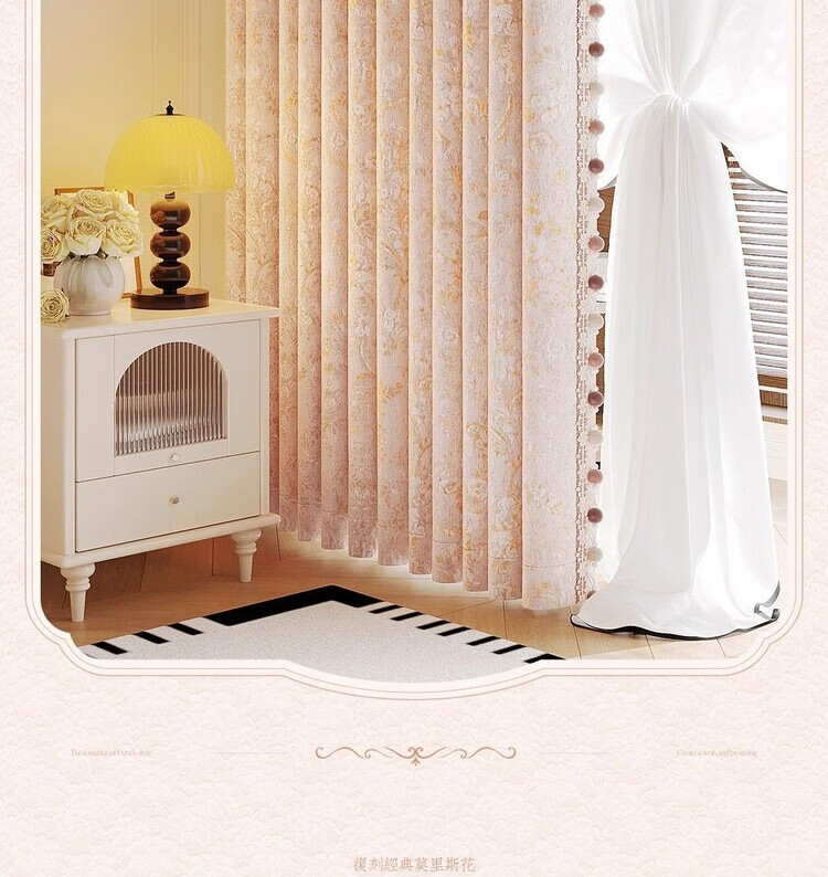 Xiaomi famous craftsman mother and baby grade children's room French Morris Flower Curtain Chenille 2025 new blackout bedroom and living room high-end sense hook style - Morris Flower Velvet White Dream with lace Applicable wall width 3.6-4.1m Curtain height 2.7m *set of 2 pieces