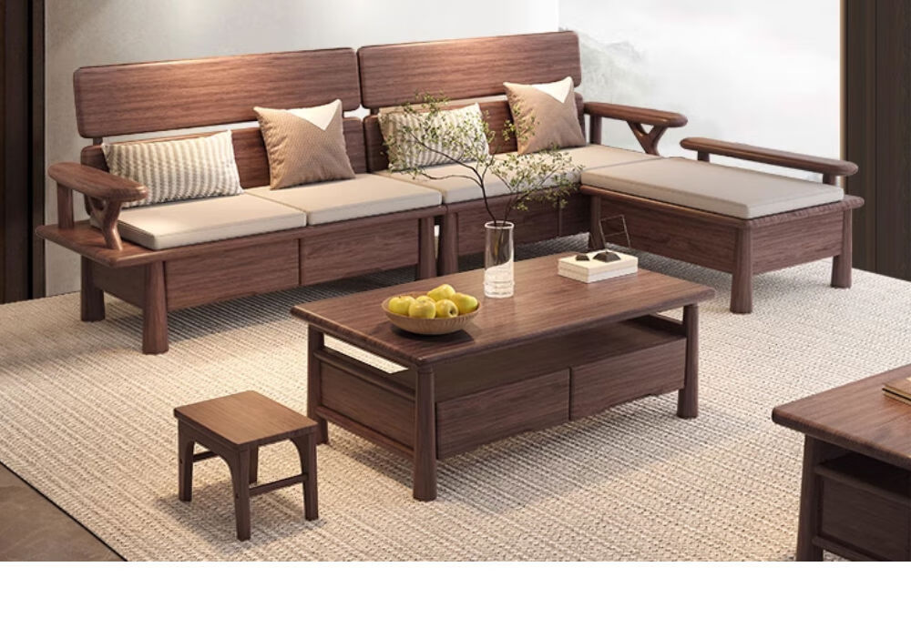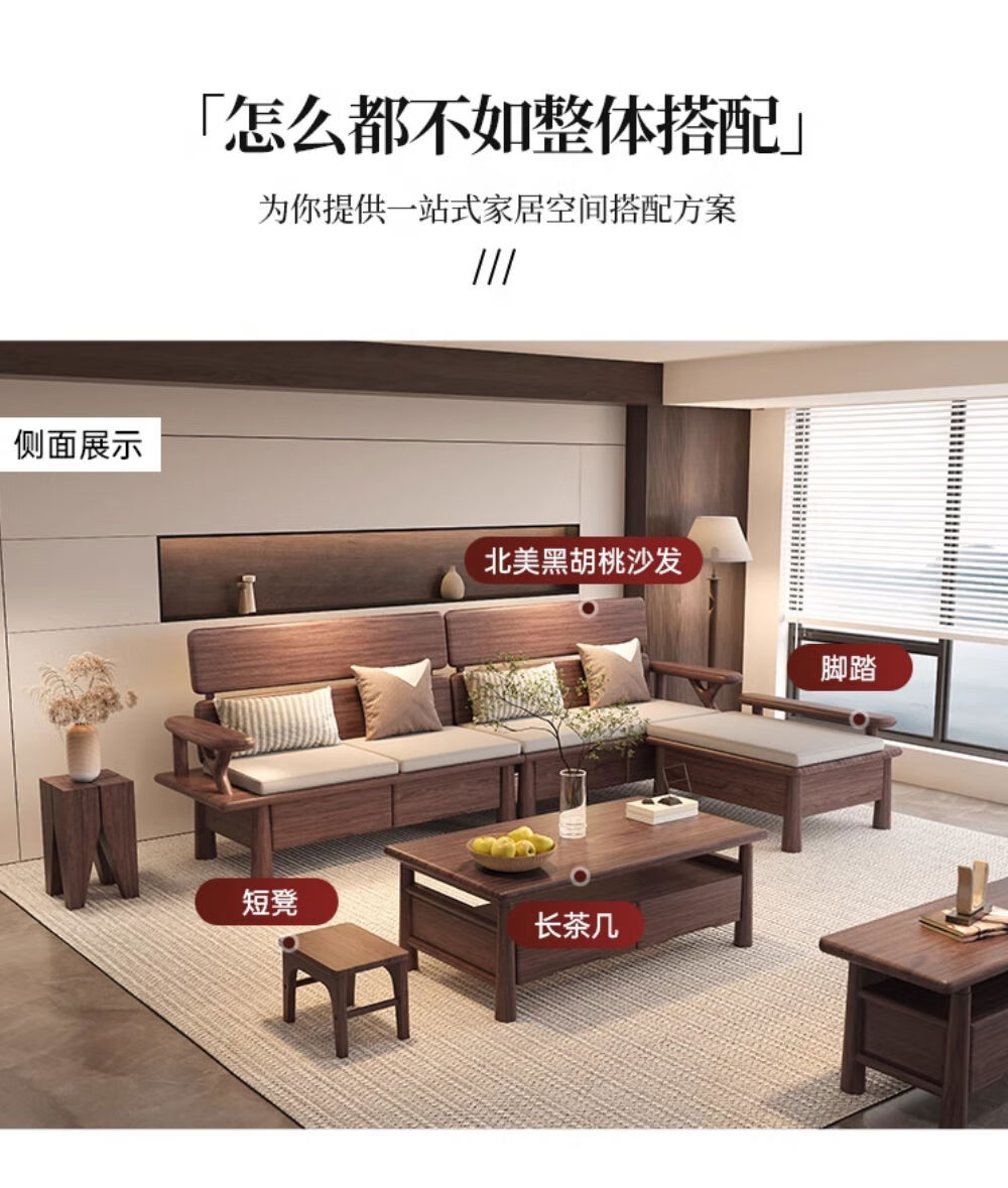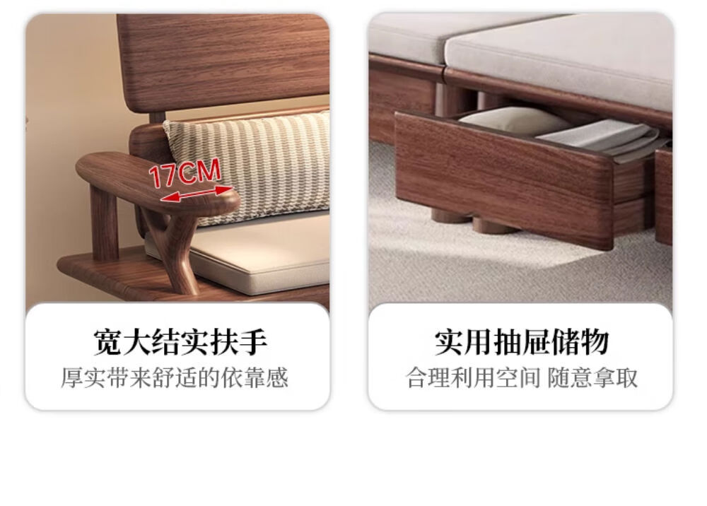 Yusenyi black sofa living room winter and summer storage size household TV cabinet black walnut
