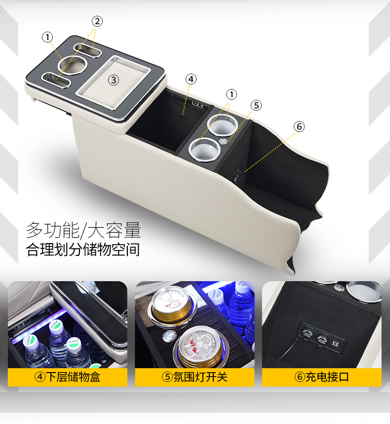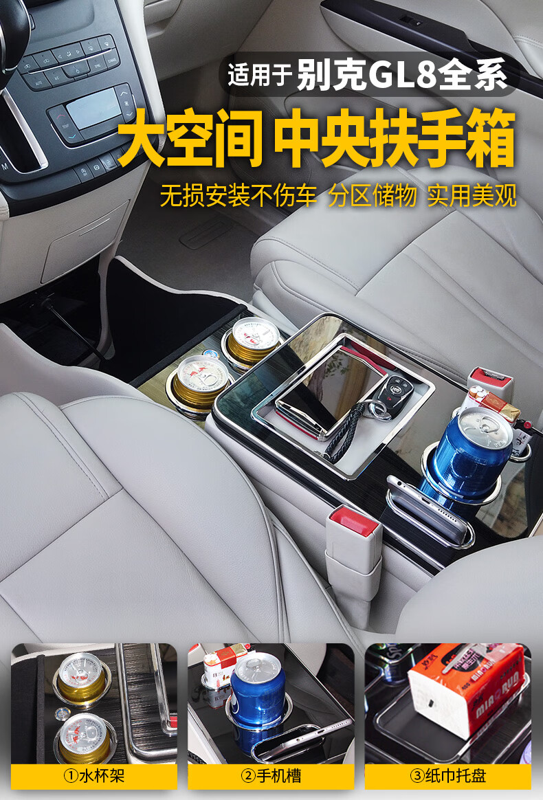 Jinxiu is suitable for Buick gl8 armrest box storage box Lu Zun modified armrest box storage box storage box 1723 original appearance GL825S fat head fish modified 28T with wireless charger