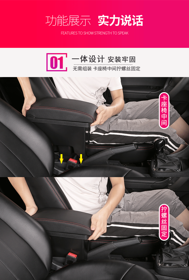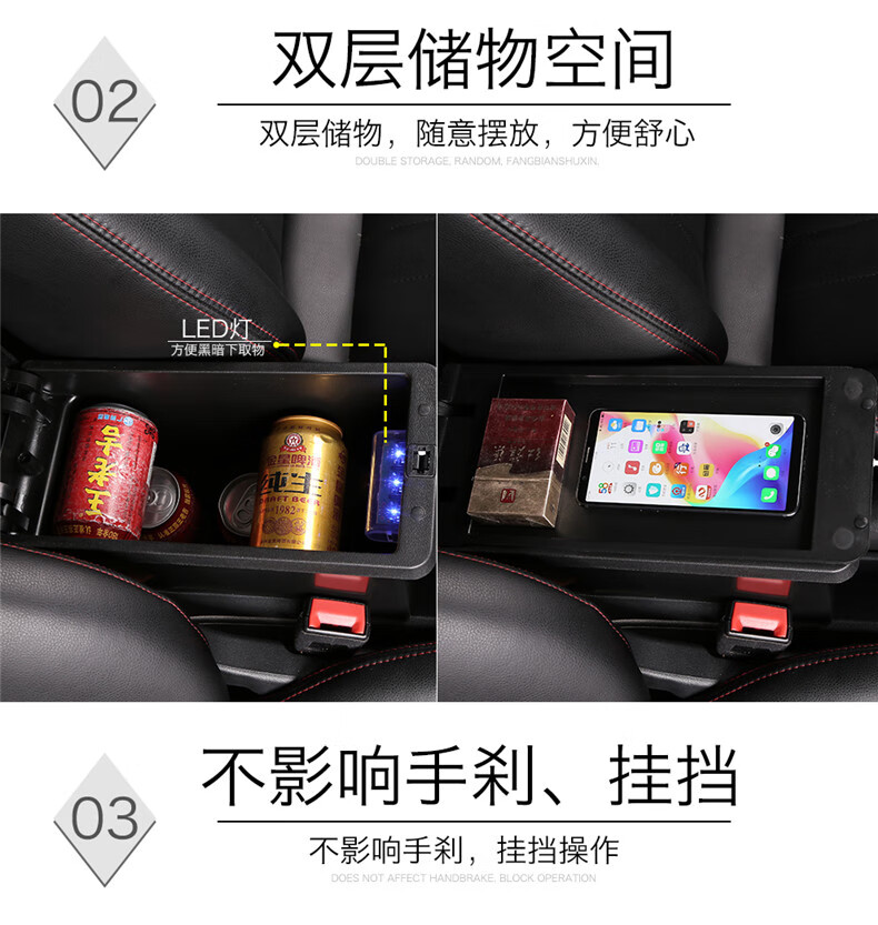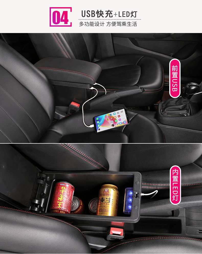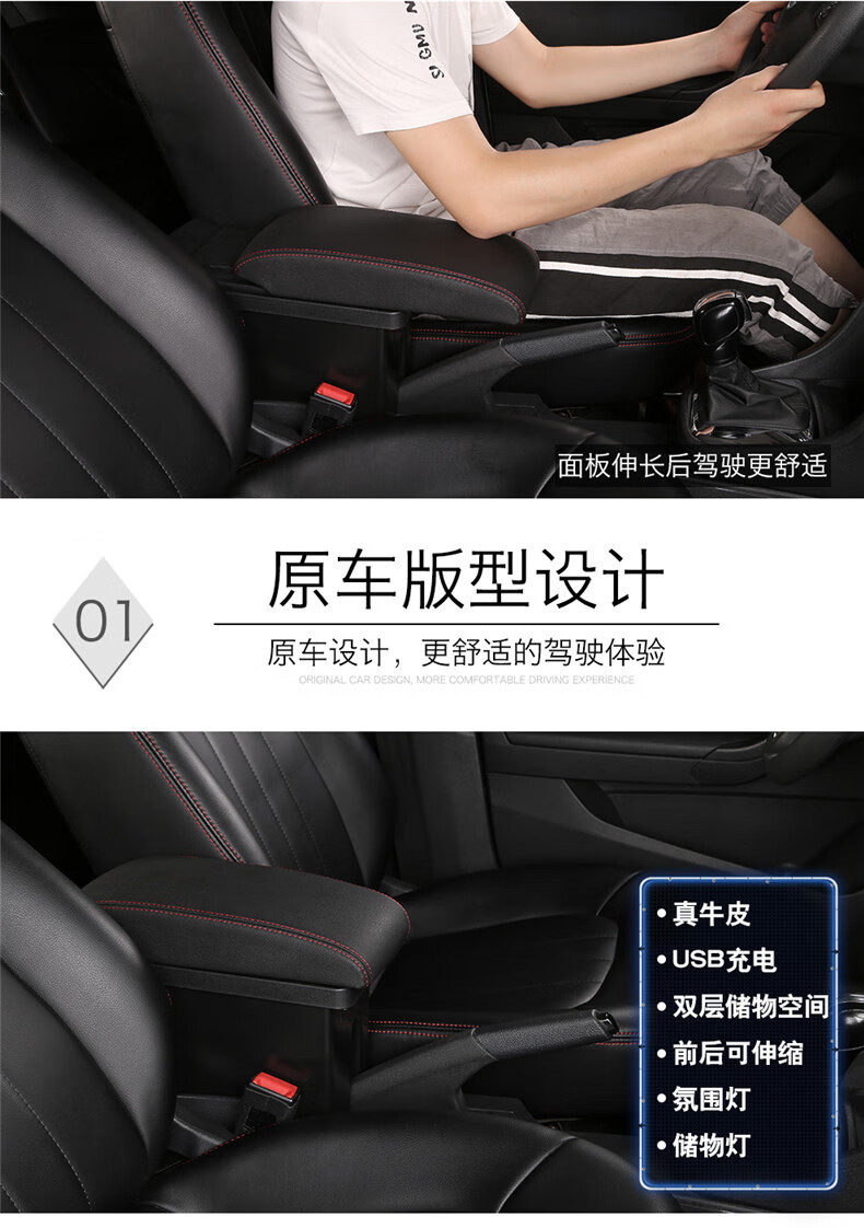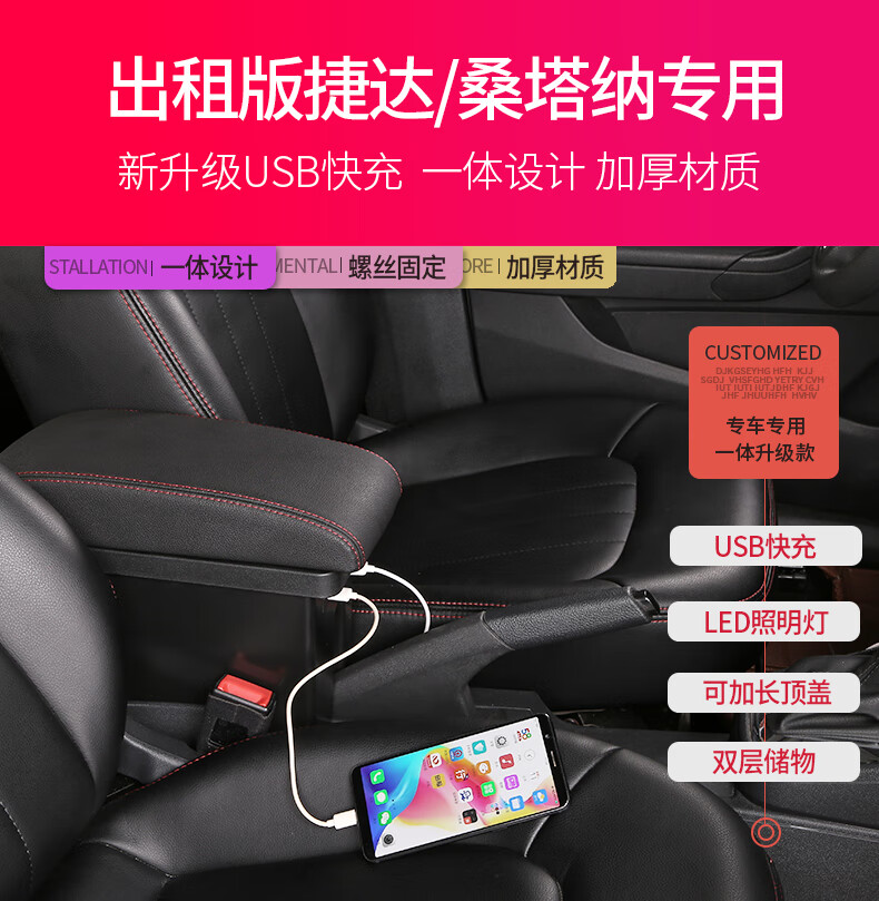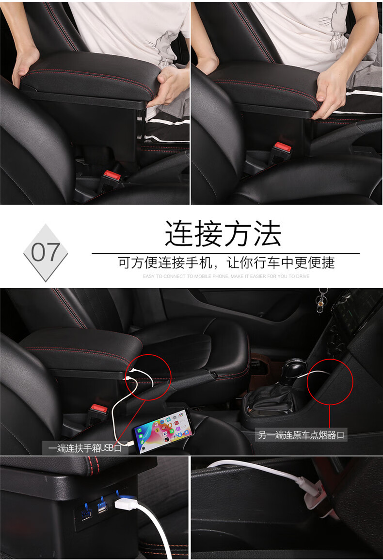 Gongma Volkswagen rental version Jetta Santana armrest box modification special original va3 central taxi handrail new type microfiber leather-black white wire wire-thick model B type armrest box USB does not support fast charging Volkswagen Jetta