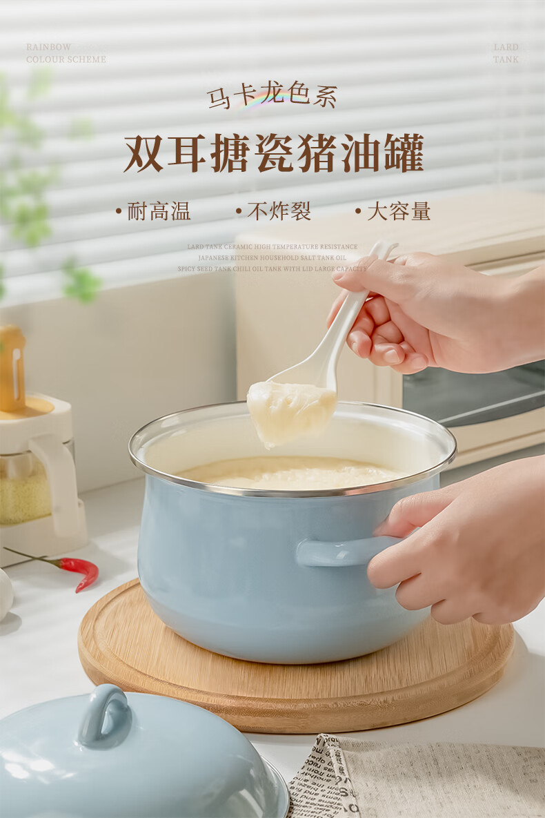 Weiai enamel lard tank with lid, household high temperature resistant old-fashioned meat oil tank, double-eared large-capacity oil storage basin, chili oil tank, clear sky blue - small size 2000ml