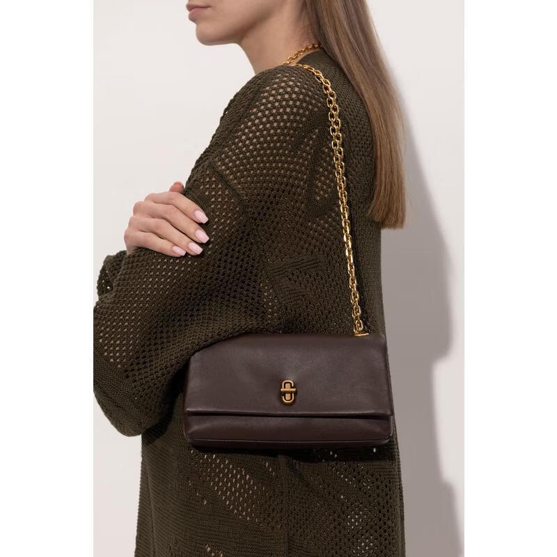 MARC JACOBS women's chain wallet can be carried on the shoulder, large-capacity inner pocket, zippered hidden pocket structure, stiff dark brown, brown TU