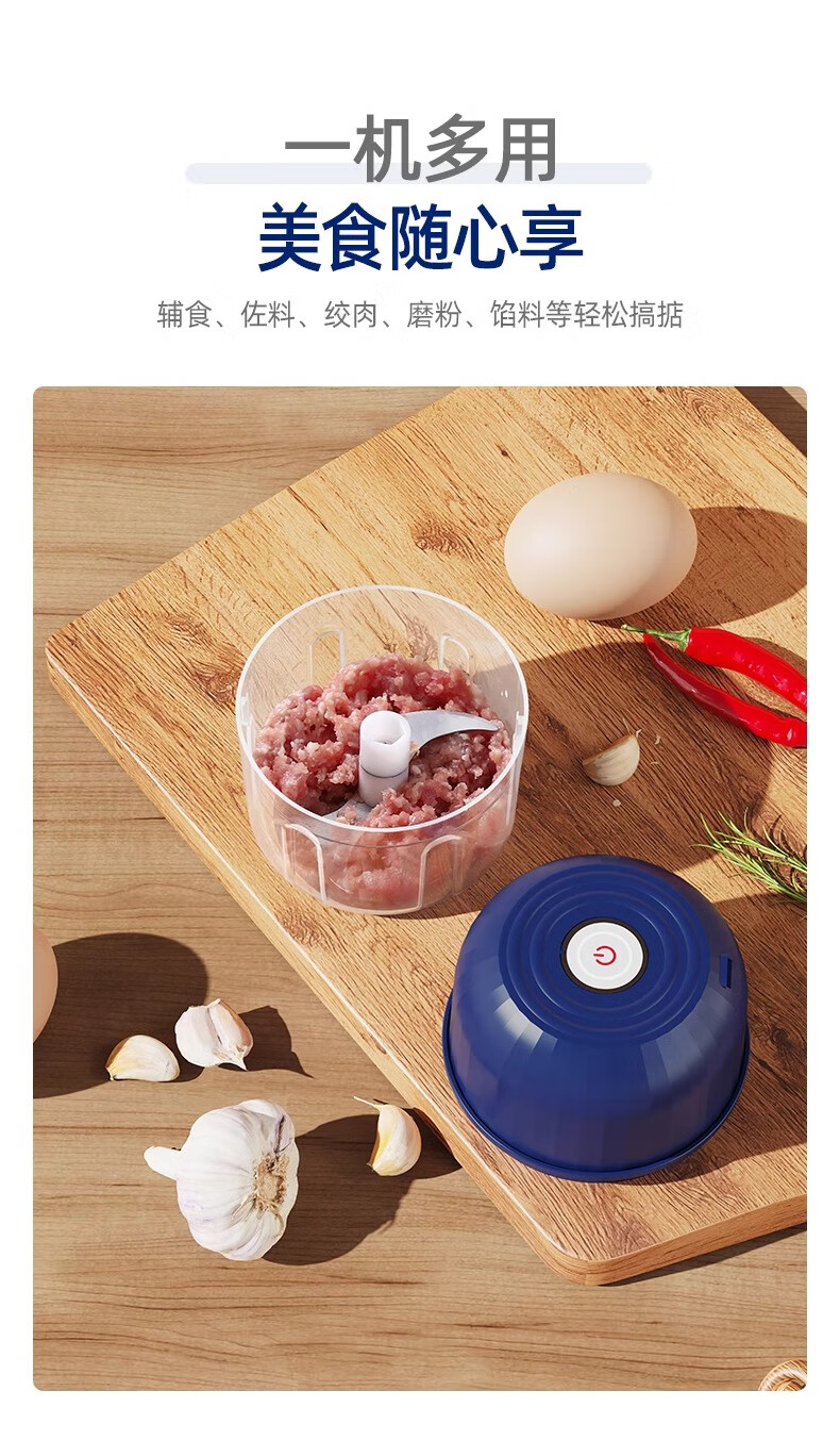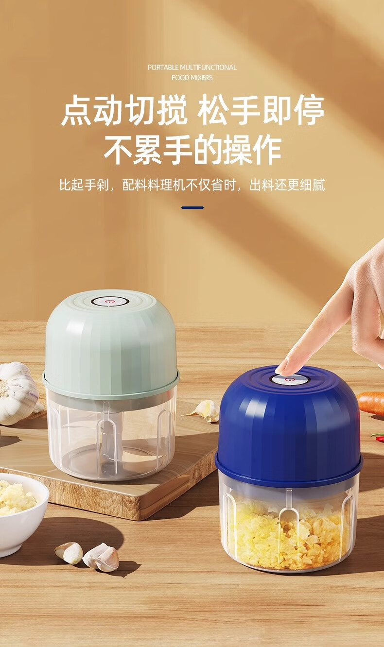 Tuojin imported high-quality garlic artifact from Germany, electric garlic stirrer, garlic garlic masher, fully automatic garlic beater, garlic press, upgraded royal blue 3-leaf fine steel knife with strong power