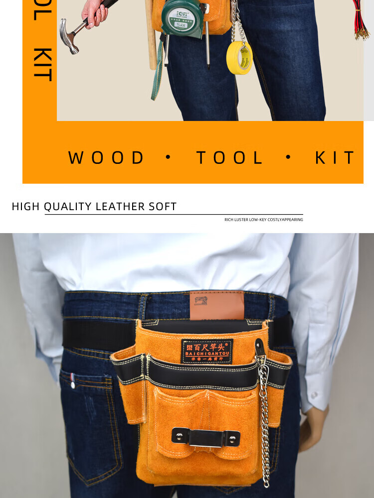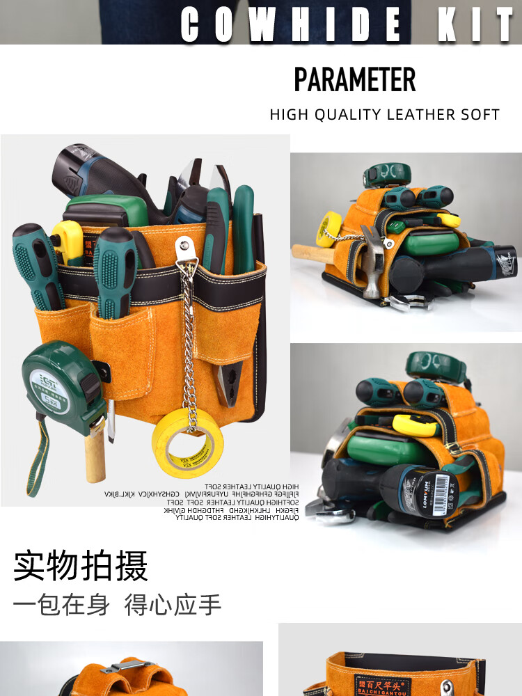 RSRDDY customized electrician's tool bag, cowhide leather work bag, men's multifunctional electrician bag, air conditioning installation model 3001