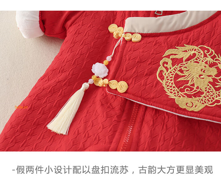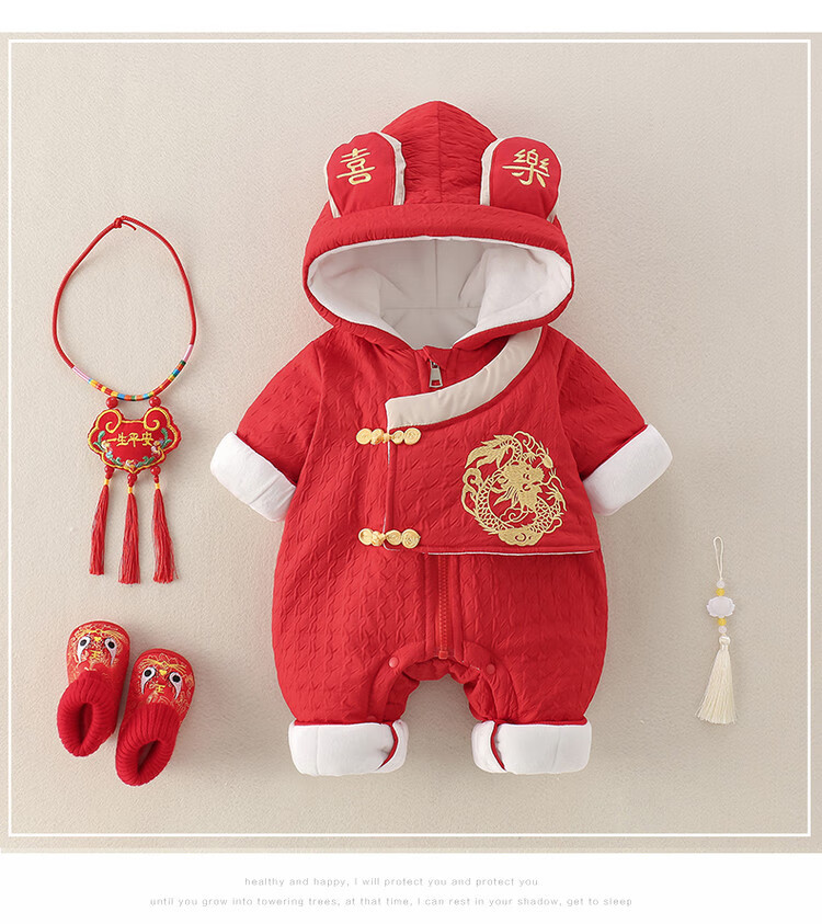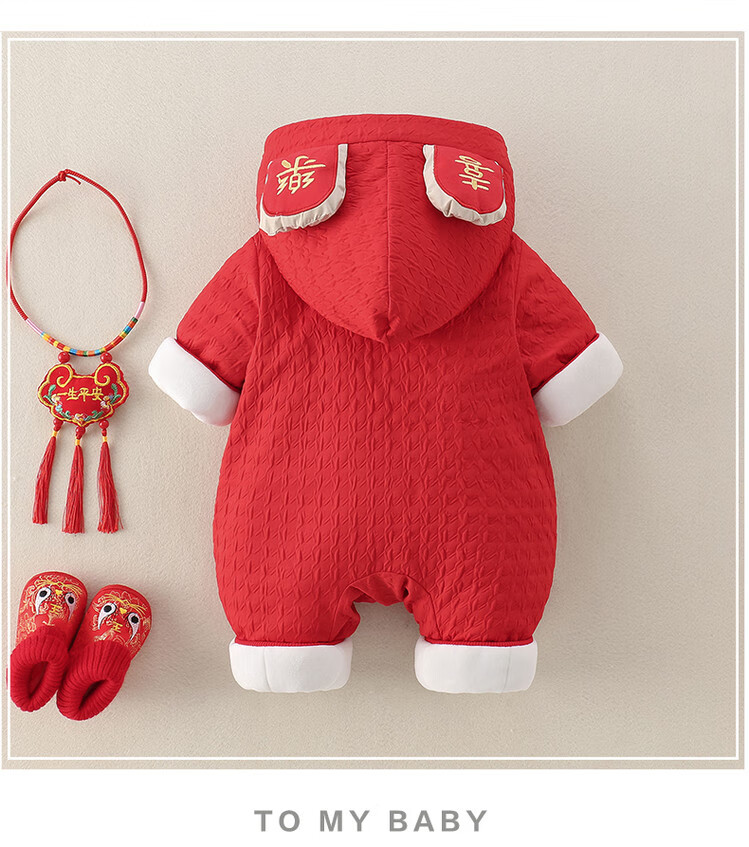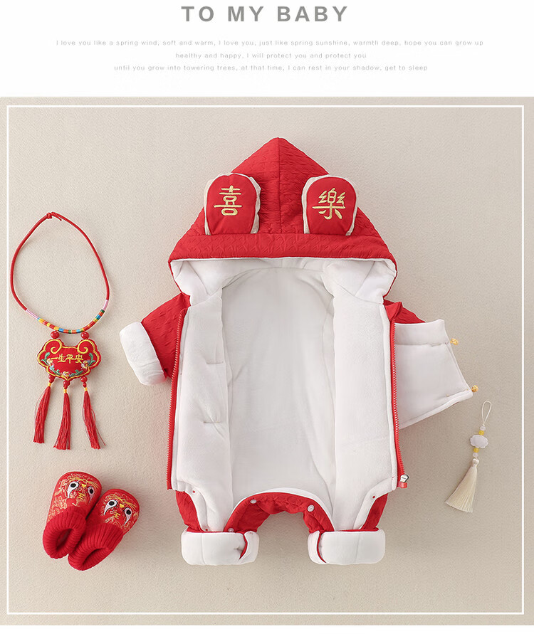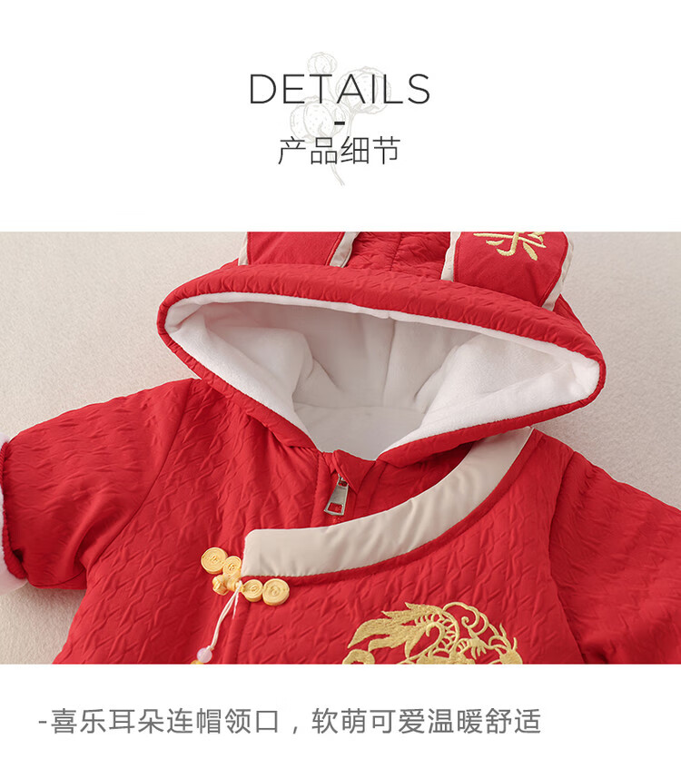 G.duck Little Yellow Duck Children's Clothes Baby New Year's Clothes Plus Velvet Thickened Warm Winter Clothes Newborn Onesies New Year's Climbing Clothes Red 66cm