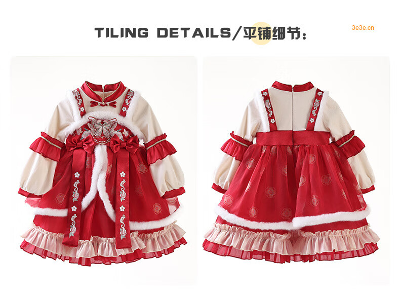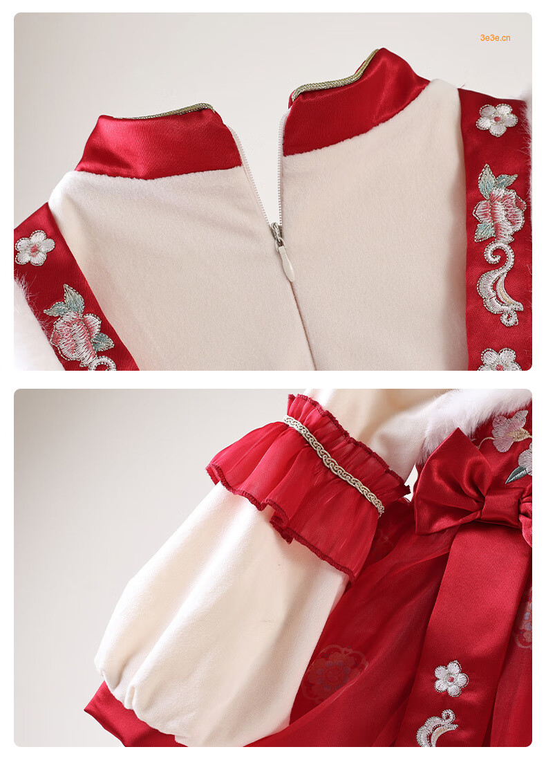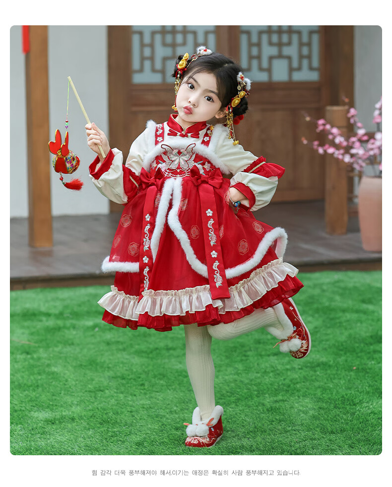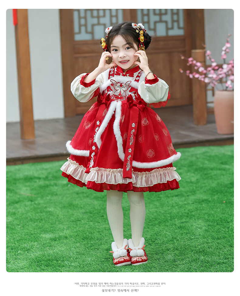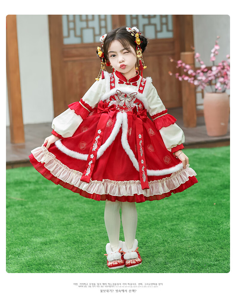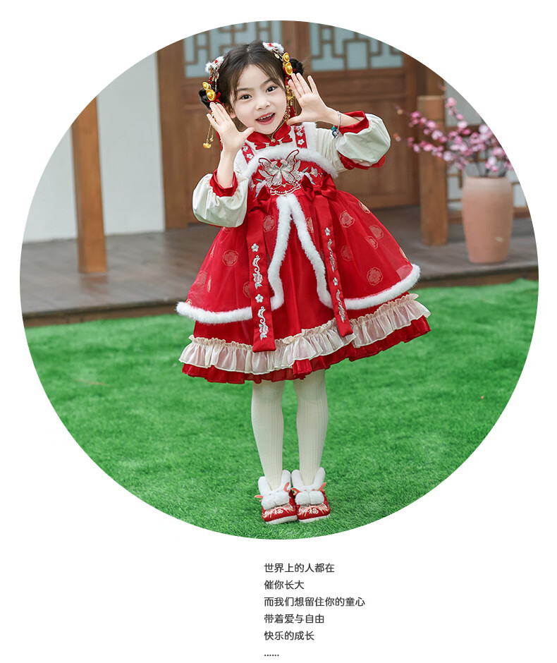 G.duck brand children's clothing Lolita princess dress girls winter thickened warm dress children's velvet Hanfu New Year's dress red 110 cm