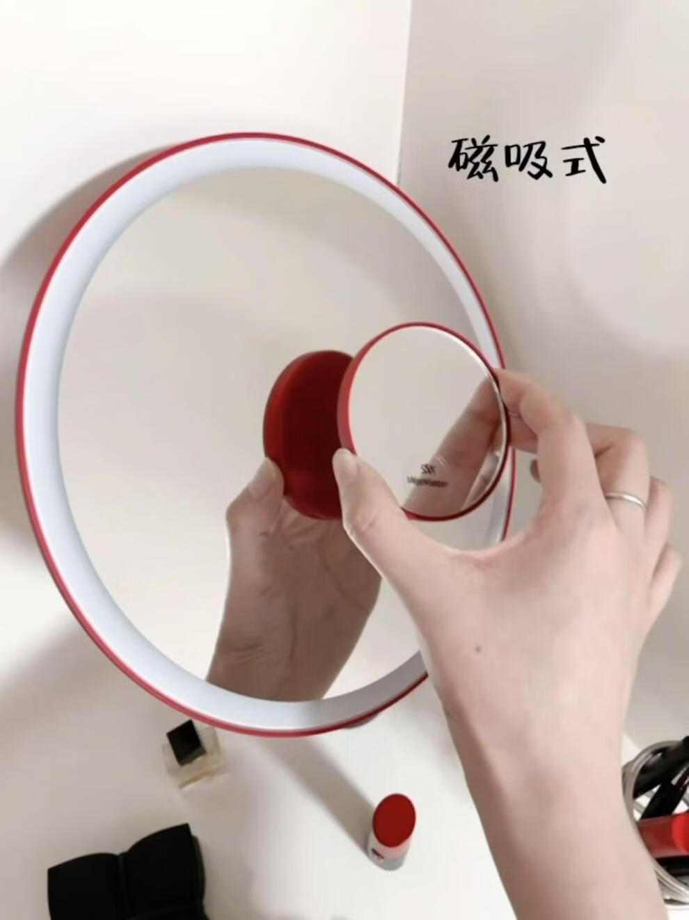 Birthday wedding gift LAMER makeup mirror with light led smart mirror internet celebrity desktop mirror companion gift green smart mirror + 5x mirror + gift box + shopping bag
