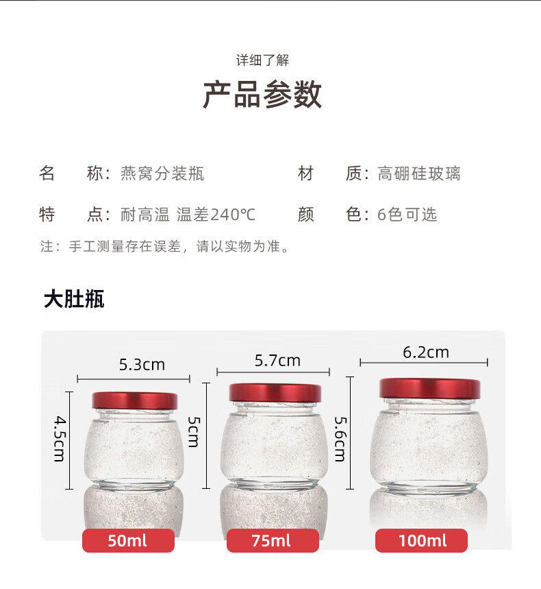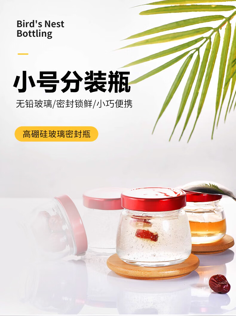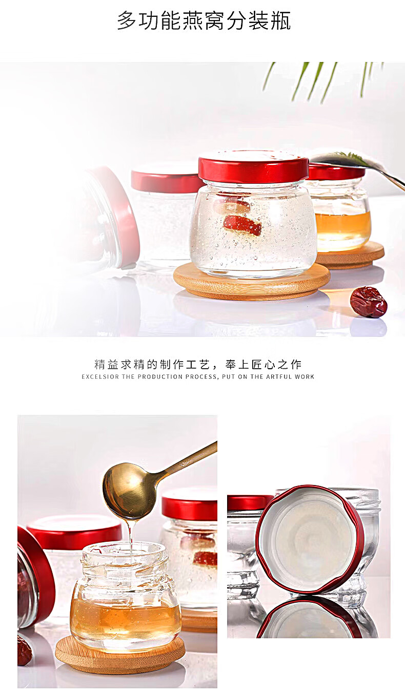 Bird's nest refilling bottle, high temperature resistant sealed glass bottle, stew pot, retortable bird's nest cup, fish maw custard empty bottle, refilling bottle, 75ml big belly bottle, 6 pieces