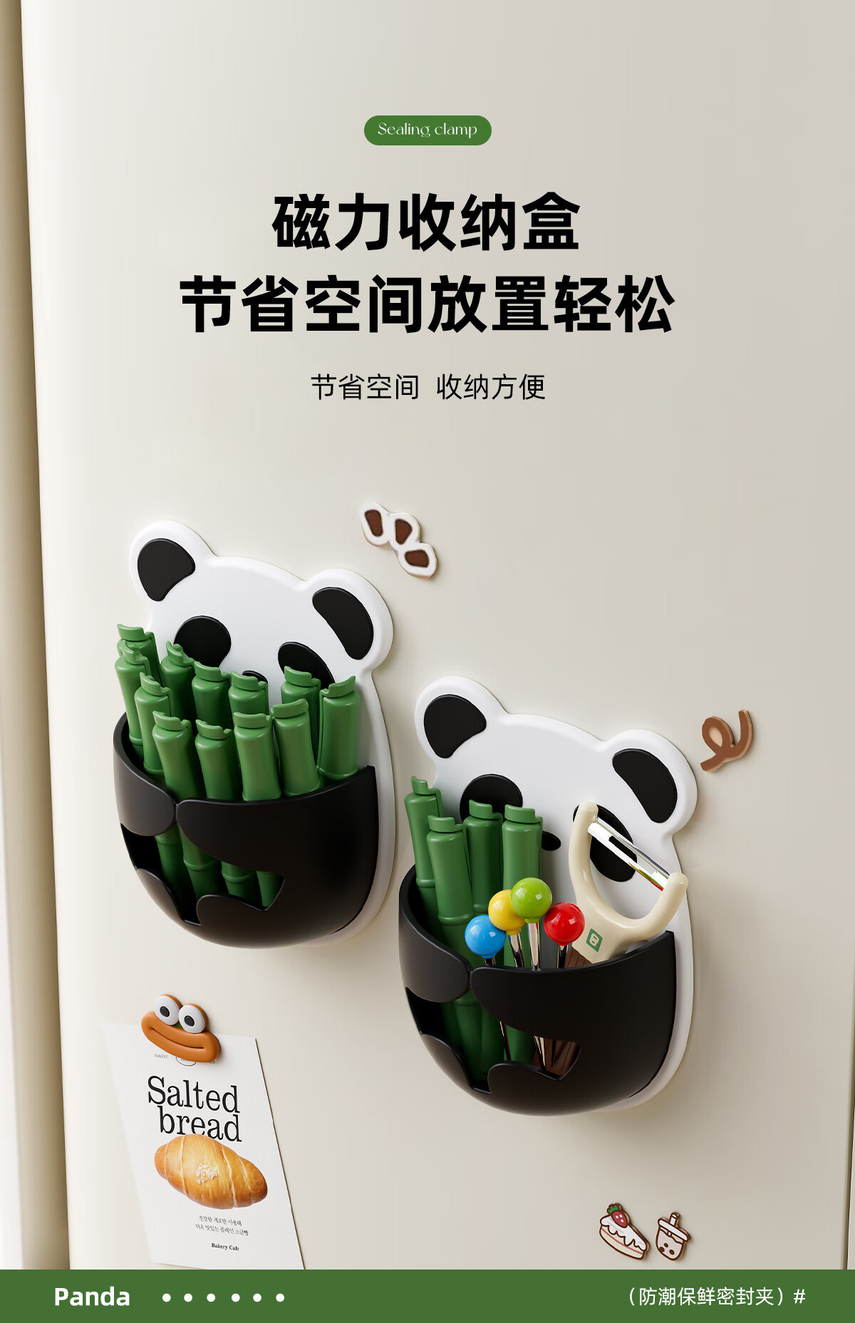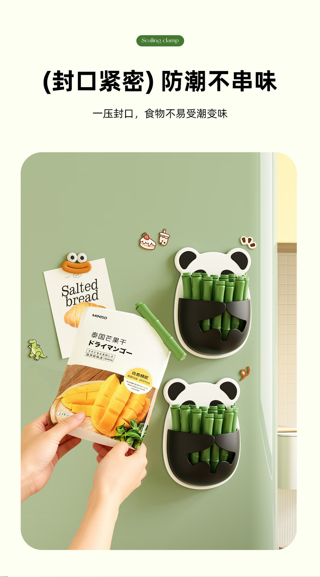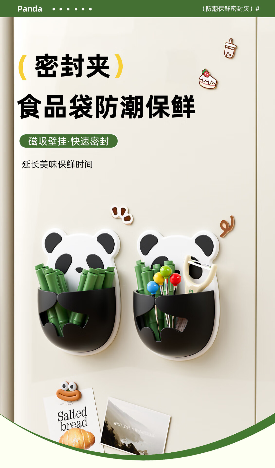Small panda sealing clip refrigerator magnetic sticker wall hanging two-choice clip bag snacks moisture-proof insurance cute sealing clip magnetic style