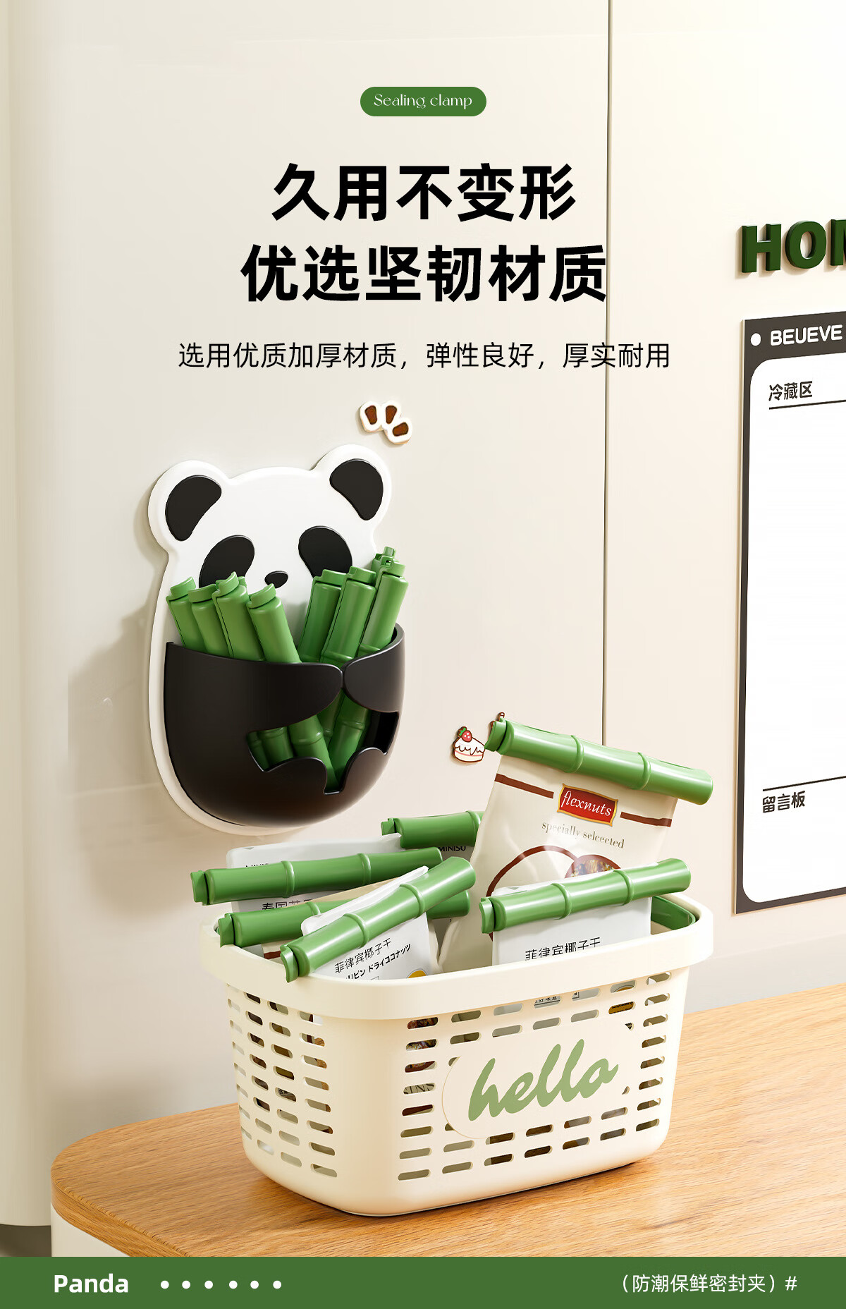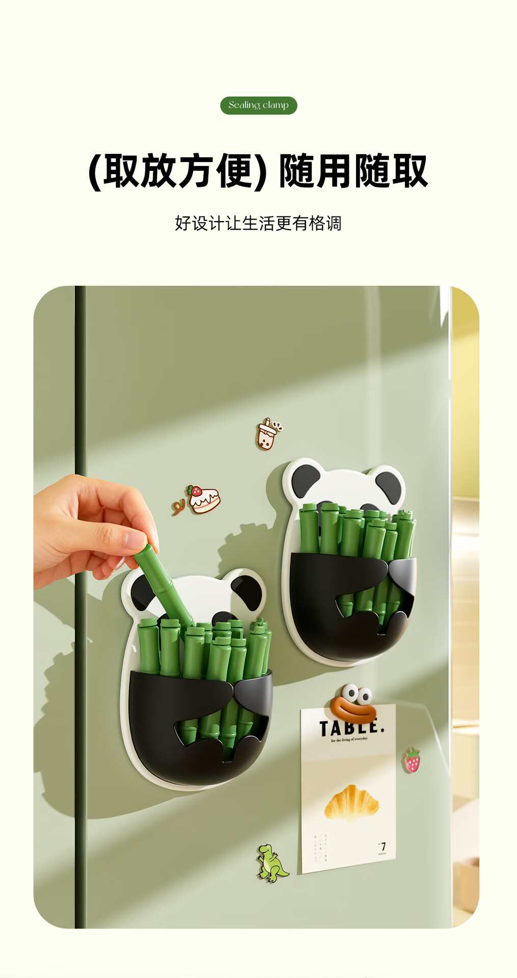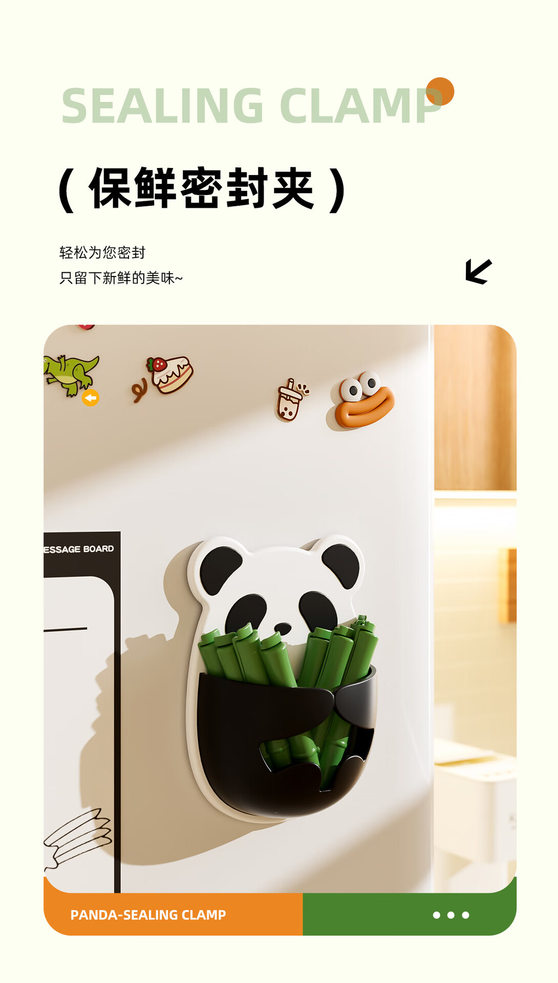 Small panda sealing clip refrigerator magnetic sticker wall hanging two-choice clip bag snacks moisture-proof insurance cute sealing clip magnetic style