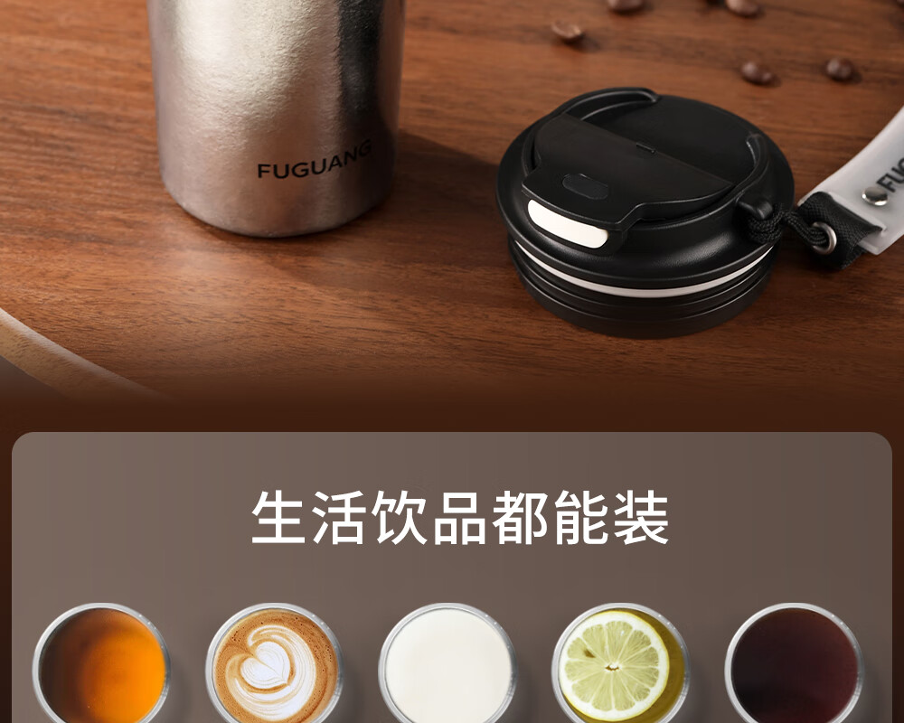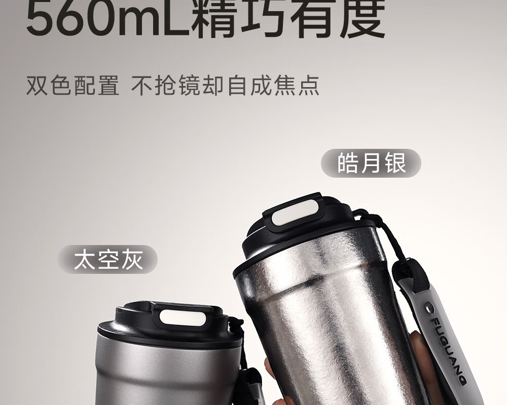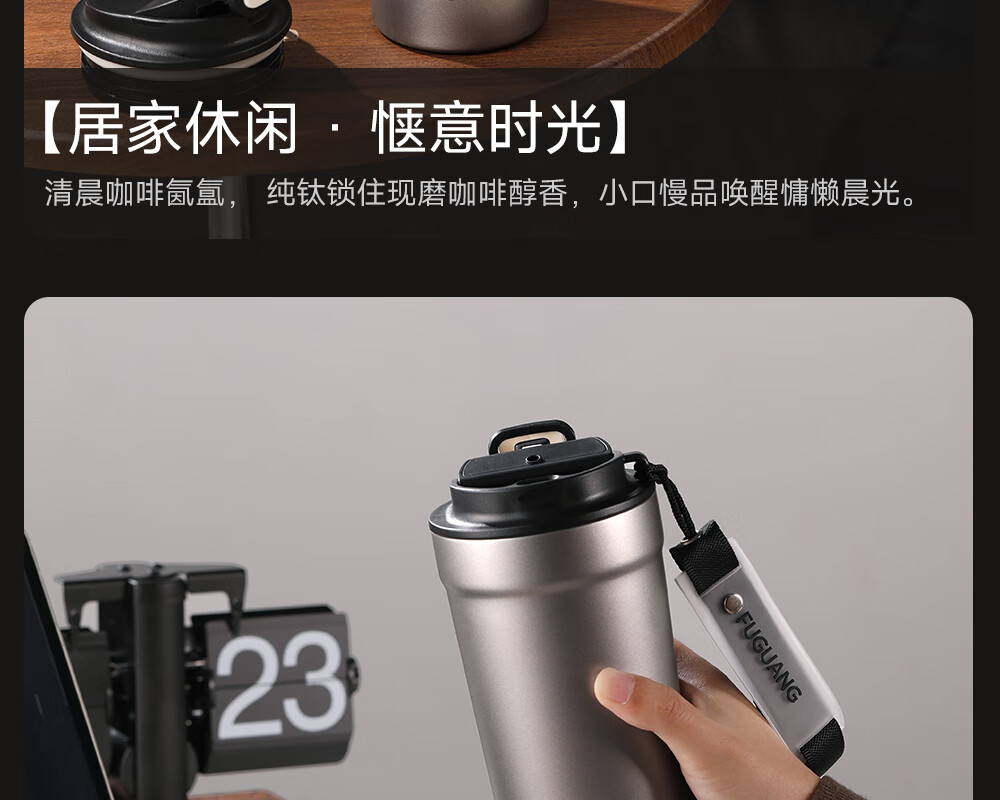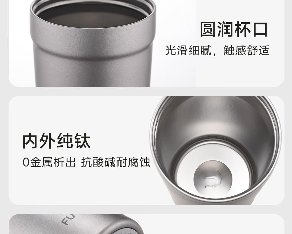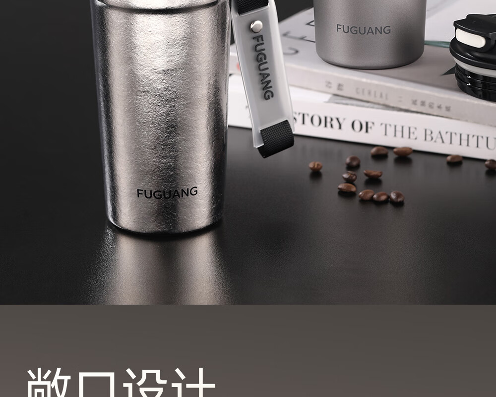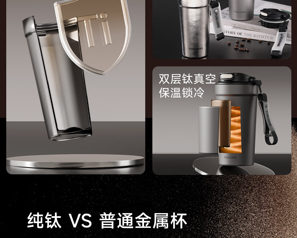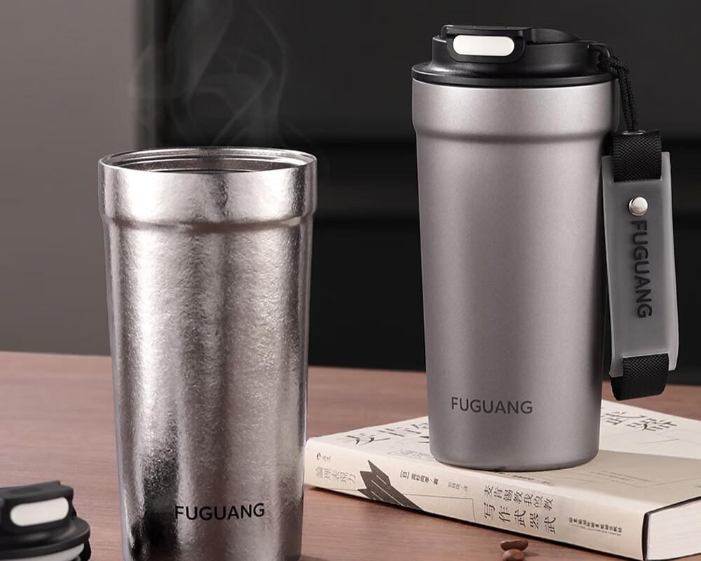 Fuguang pure titanium thermos cup titanium coffee cup large capacity high-end business titanium cup portable car-mounted double drink accompanying water cup space gray 560ml pure titanium inside and outside + one lid for double drinks
