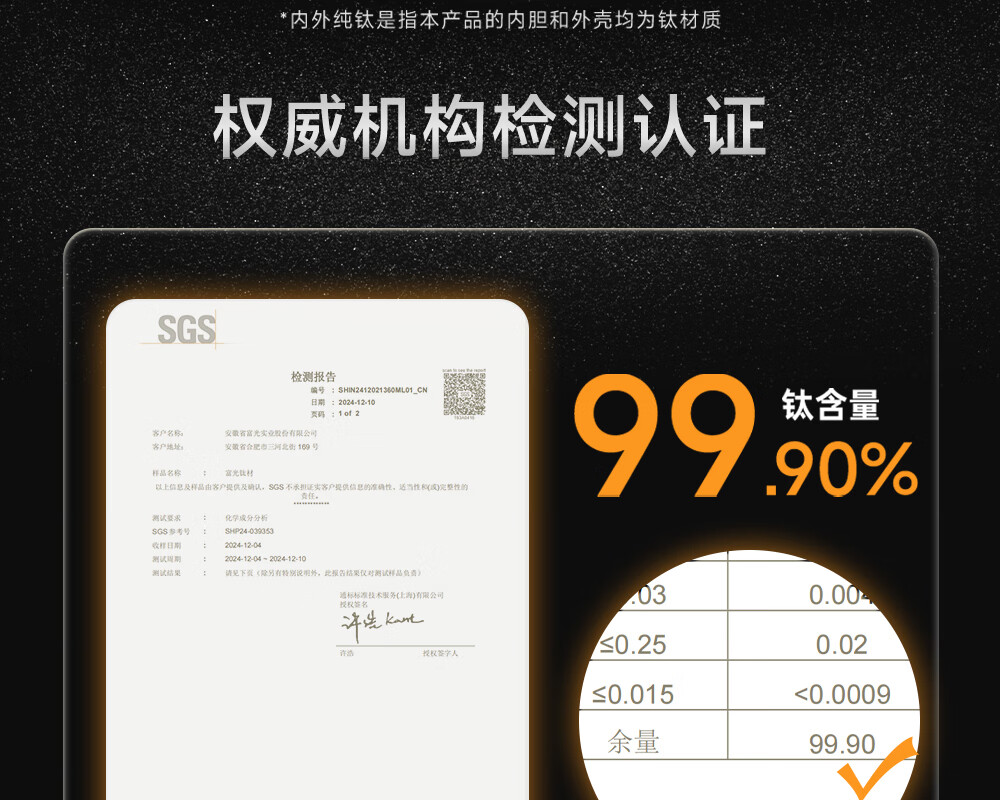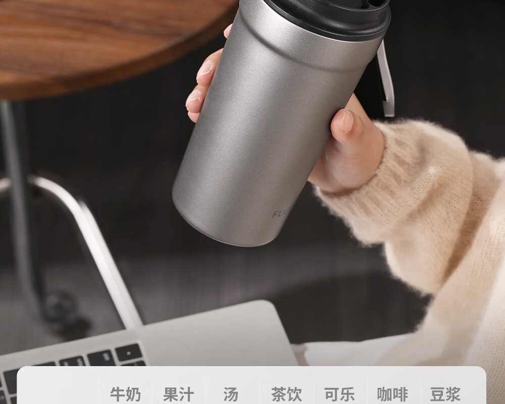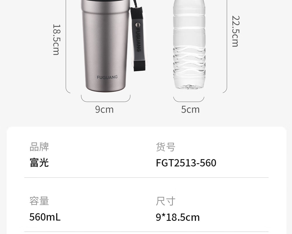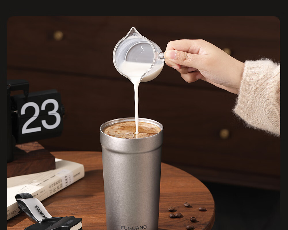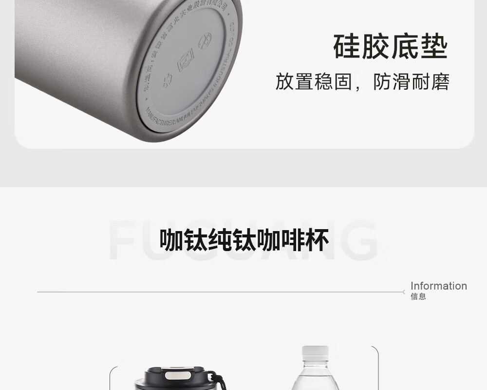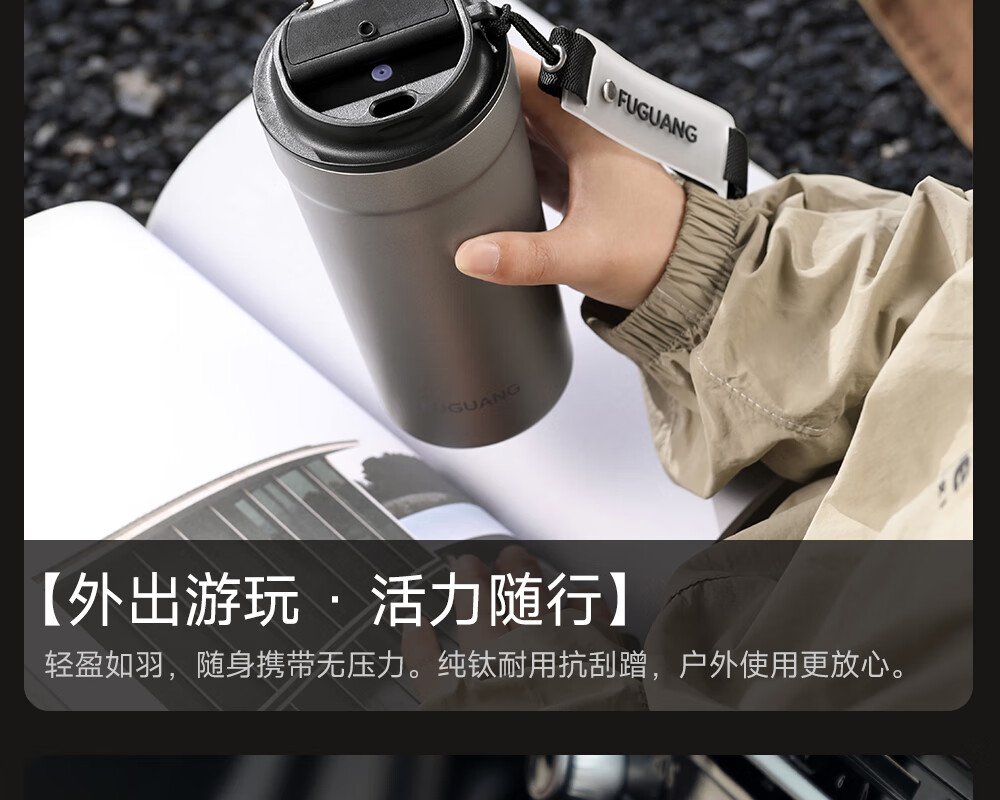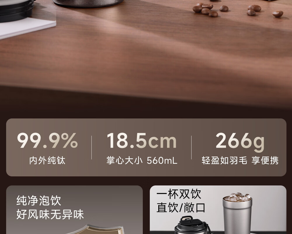 Fuguang pure titanium thermos cup titanium coffee cup large capacity high-end business titanium cup portable car-mounted double drink accompanying water cup space gray 560ml pure titanium inside and outside + one lid for double drinks