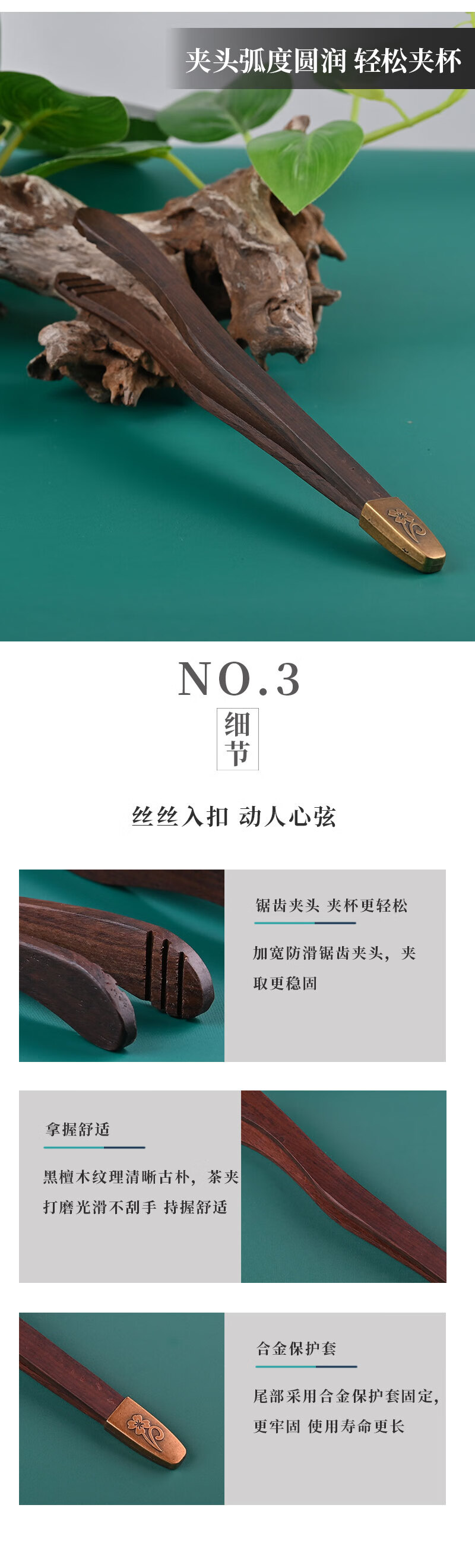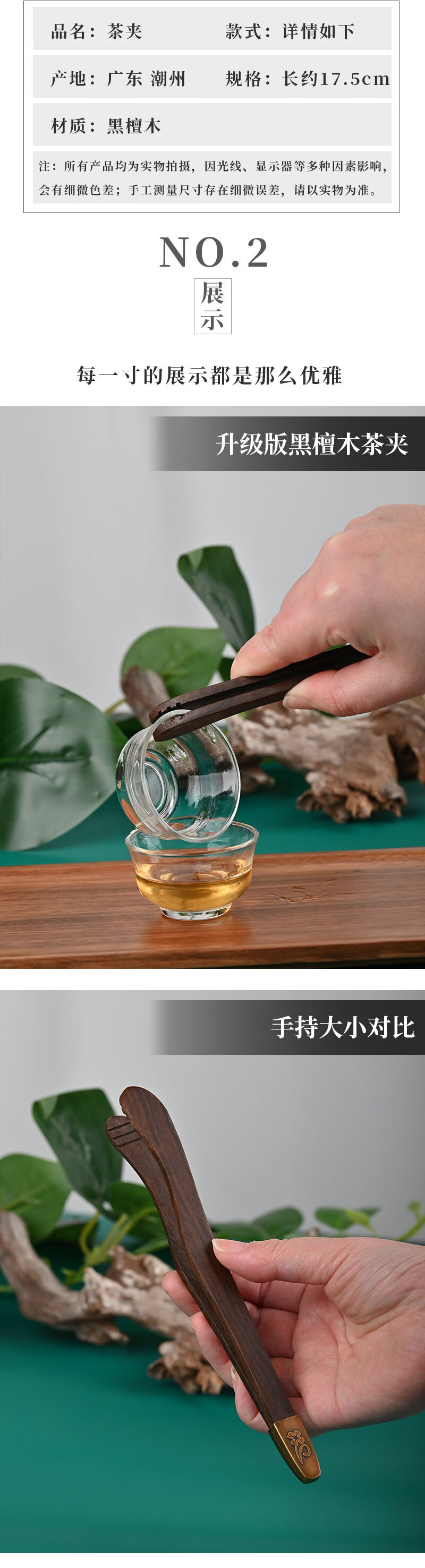 Haoxu tea clip, tea cup clip, black sandalwood solid wood tweezers, tea making tools, Kung Fu tea set accessories, tea ceremony six gentlemen upgraded version - bamboo elbow tea clip, tied rope