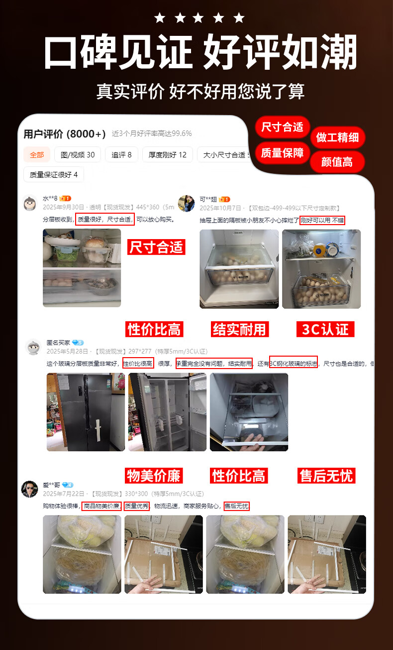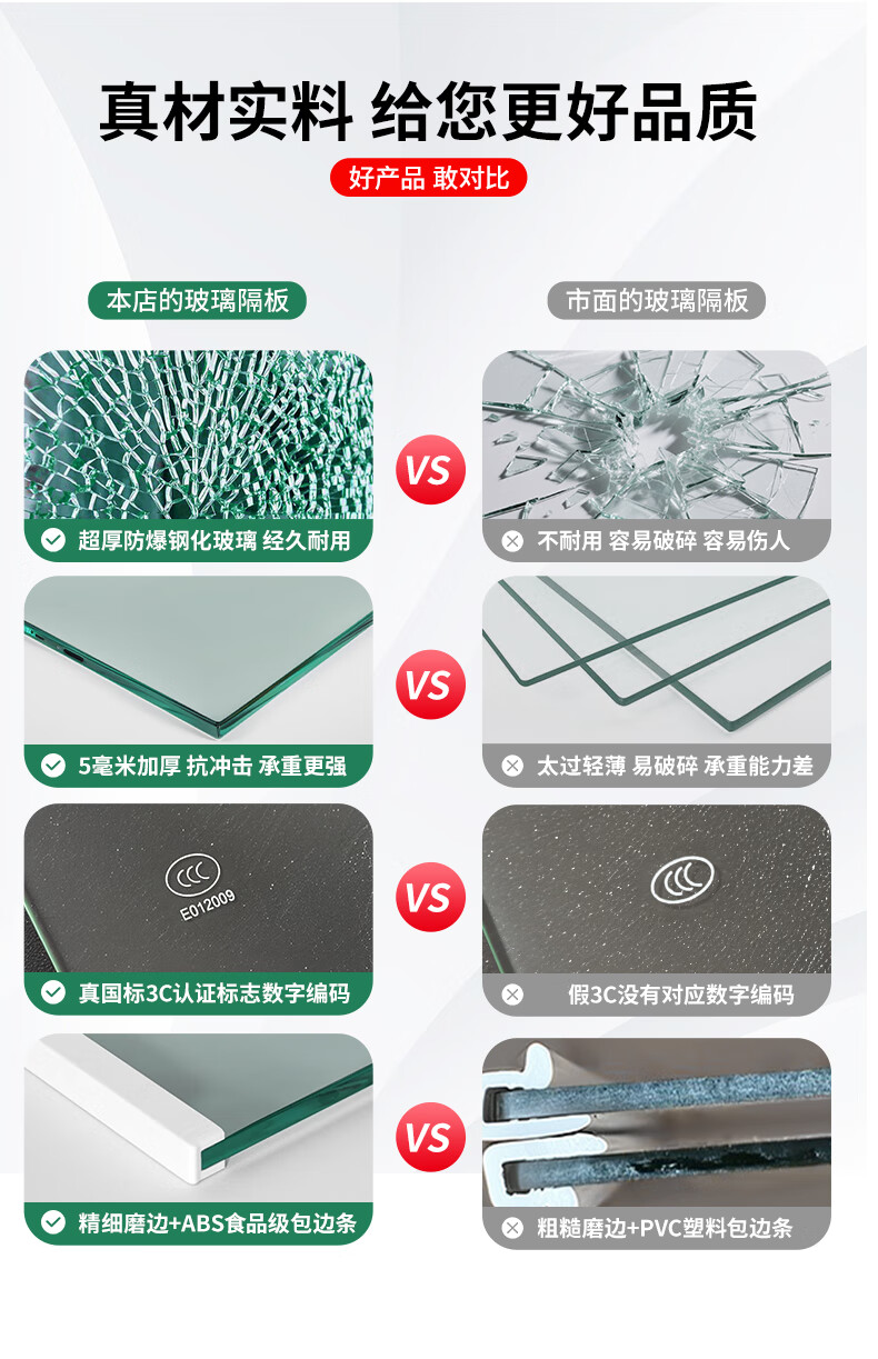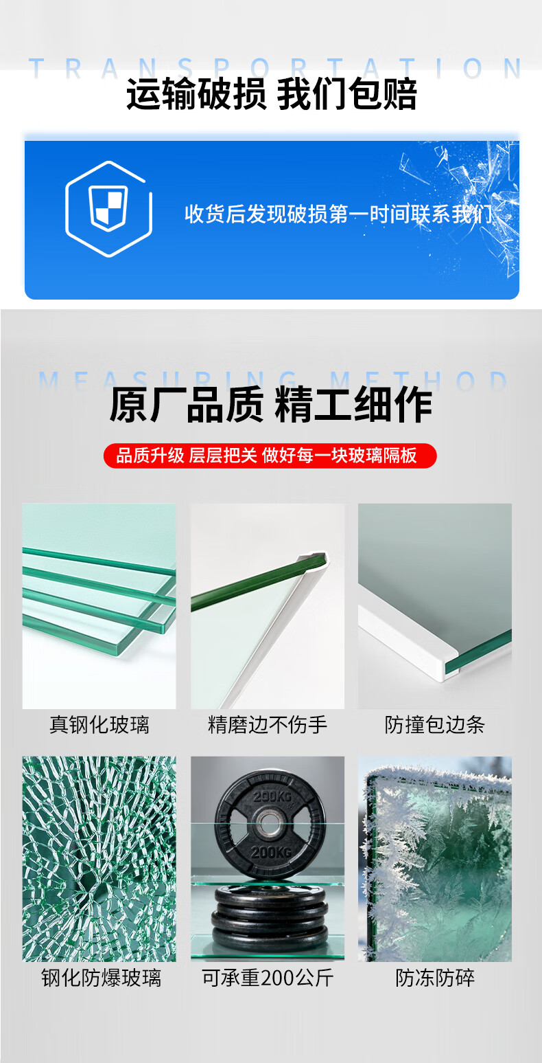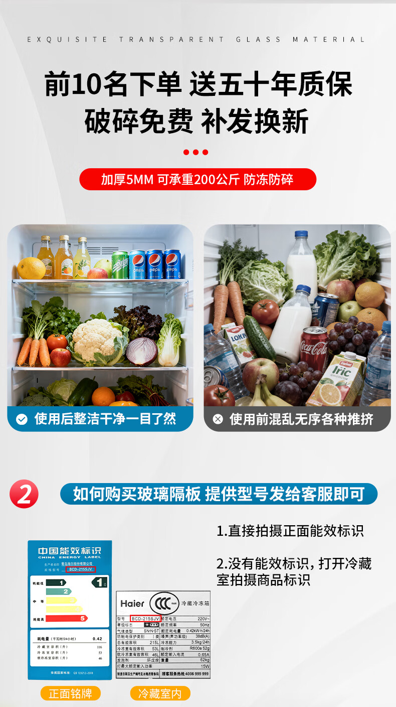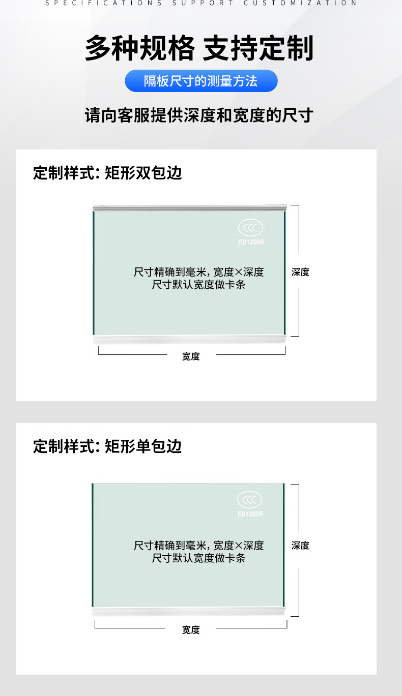 Suitable for Royalstar refrigerator partition layered plate tempered glass partition plate double door refrigeration and freezer accessories double edge-small size customization