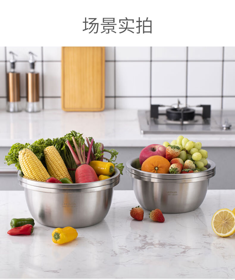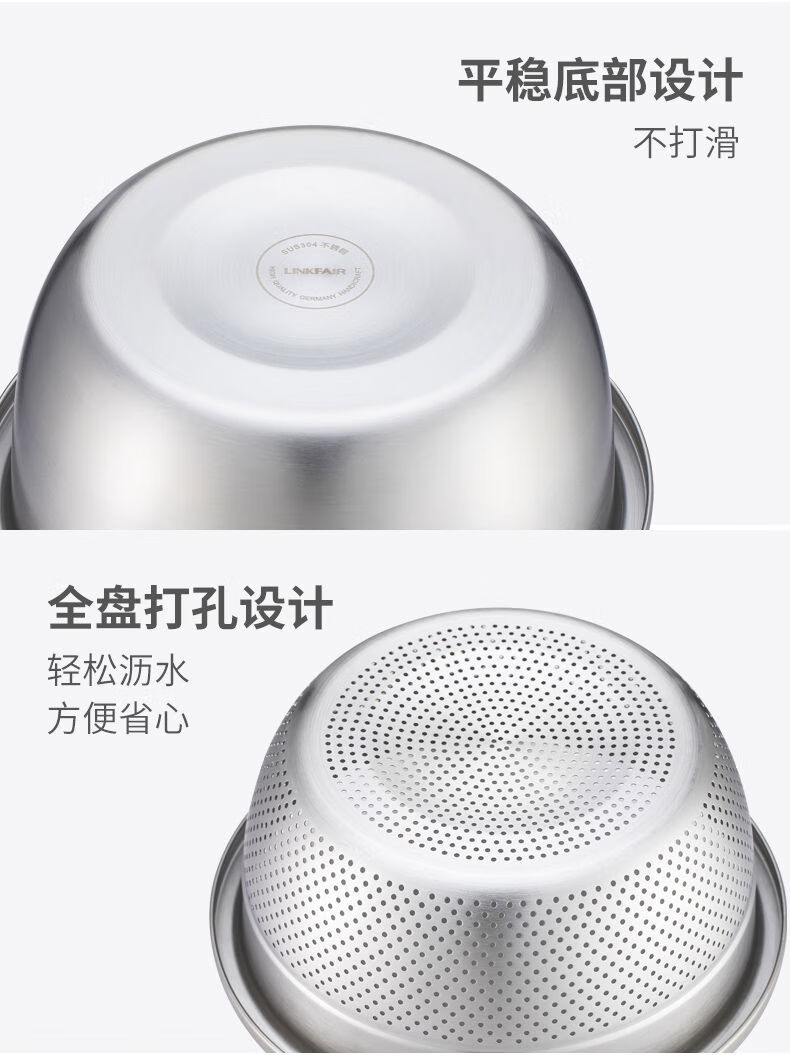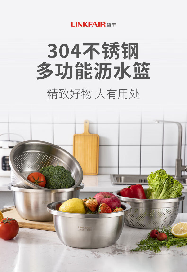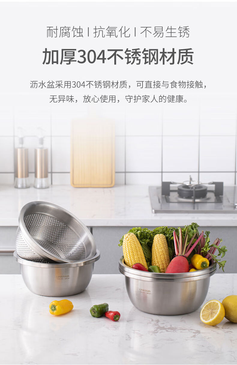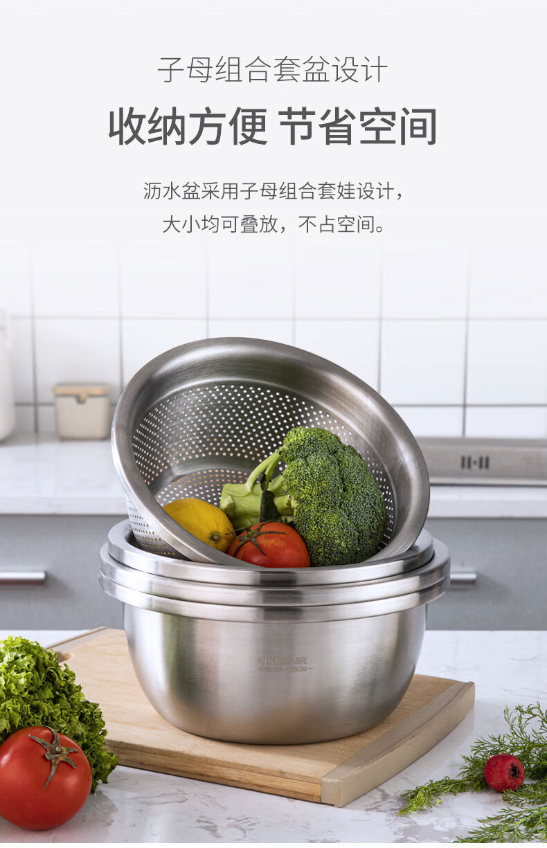 Jie Yu Cat Thickened 304 Stainless Steel Water Filter Basket Washing Basin Washing Fruit Household Rice Soup Basin Leaking Basin Set 24cm