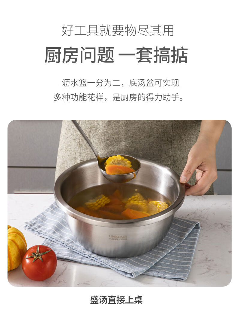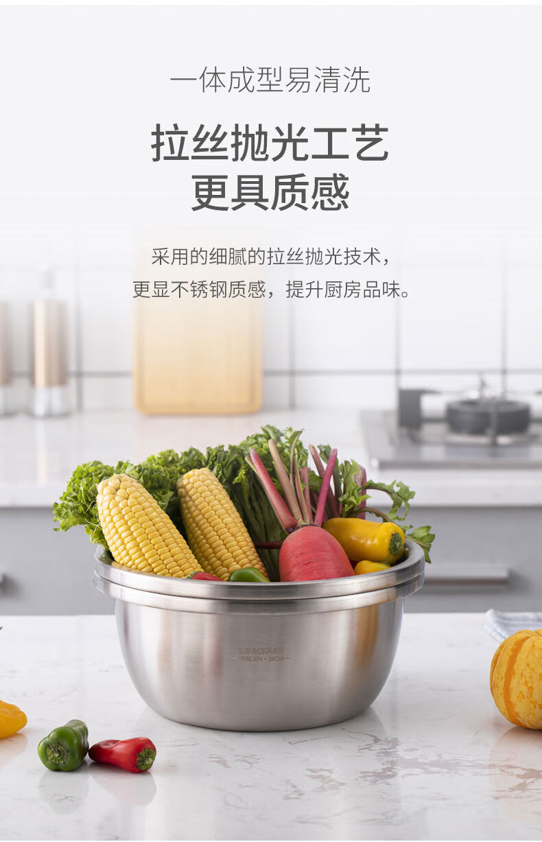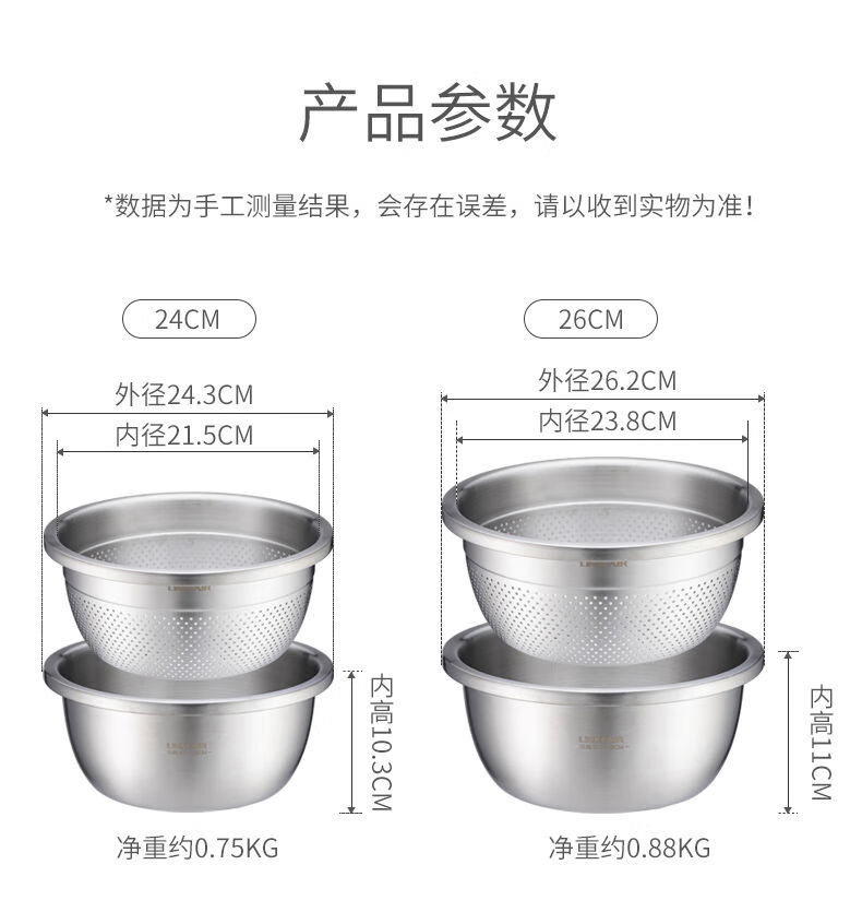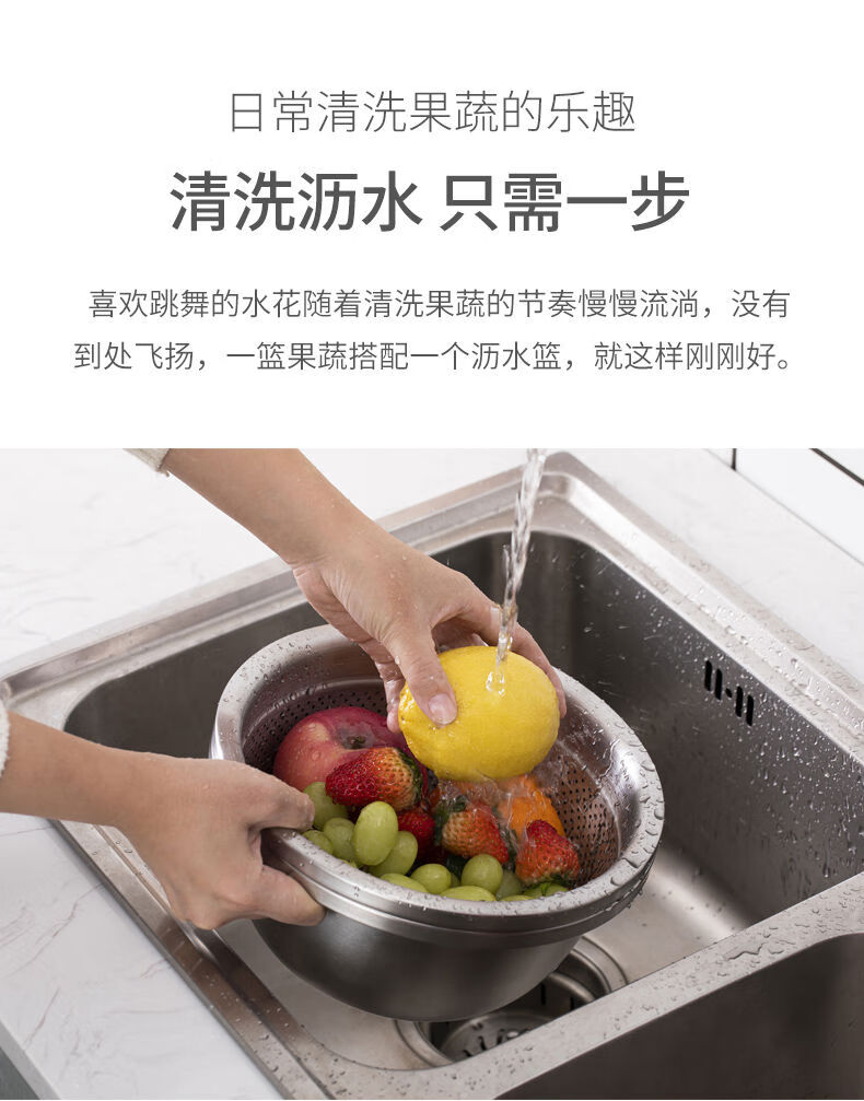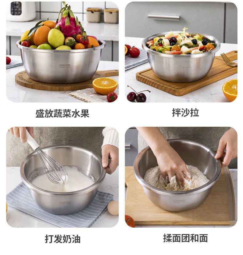 Jie Yu Cat Thickened 304 Stainless Steel Water Filter Basket Washing Basin Washing Fruit Household Rice Soup Basin Leaking Basin Set 24cm