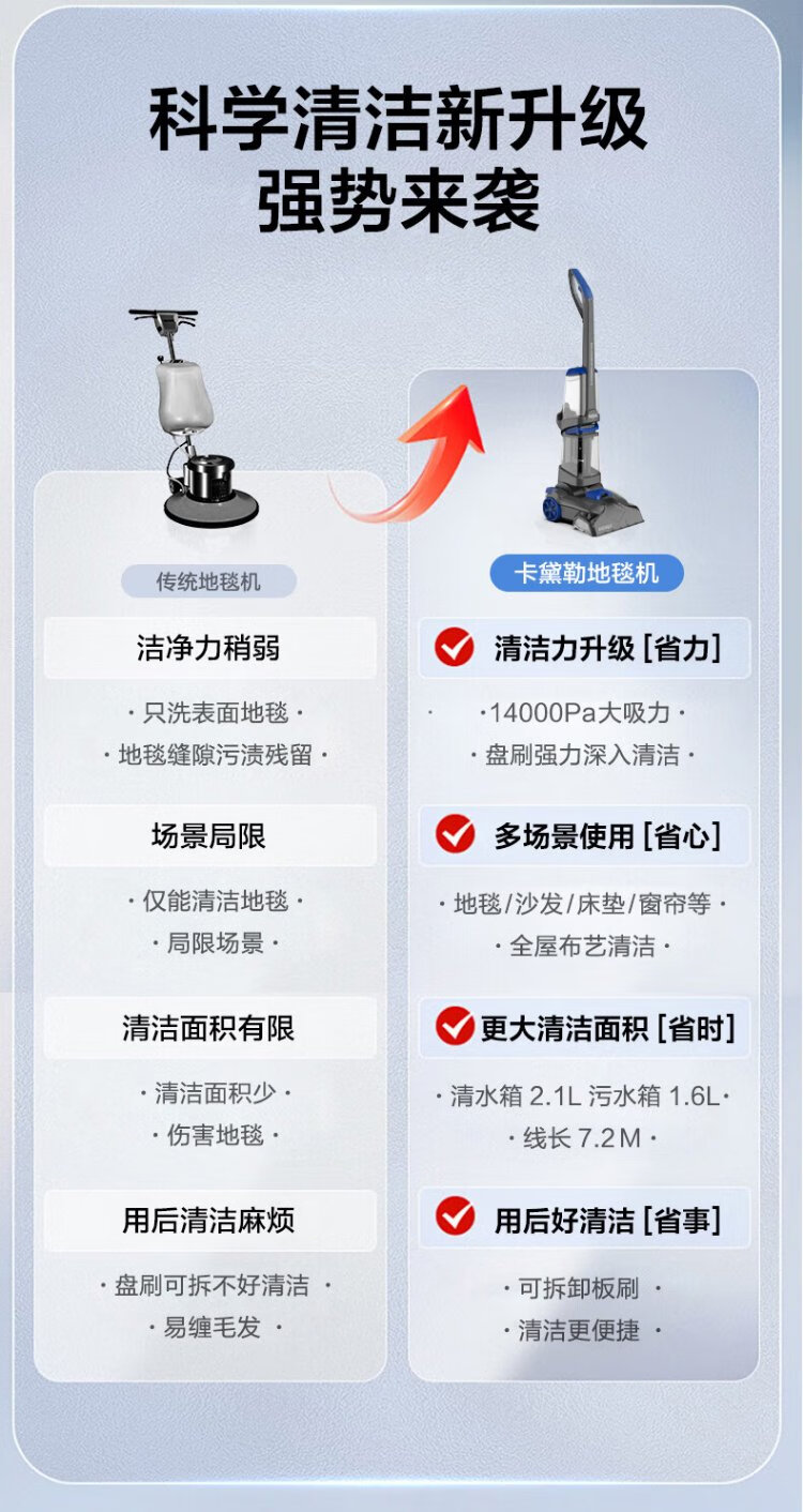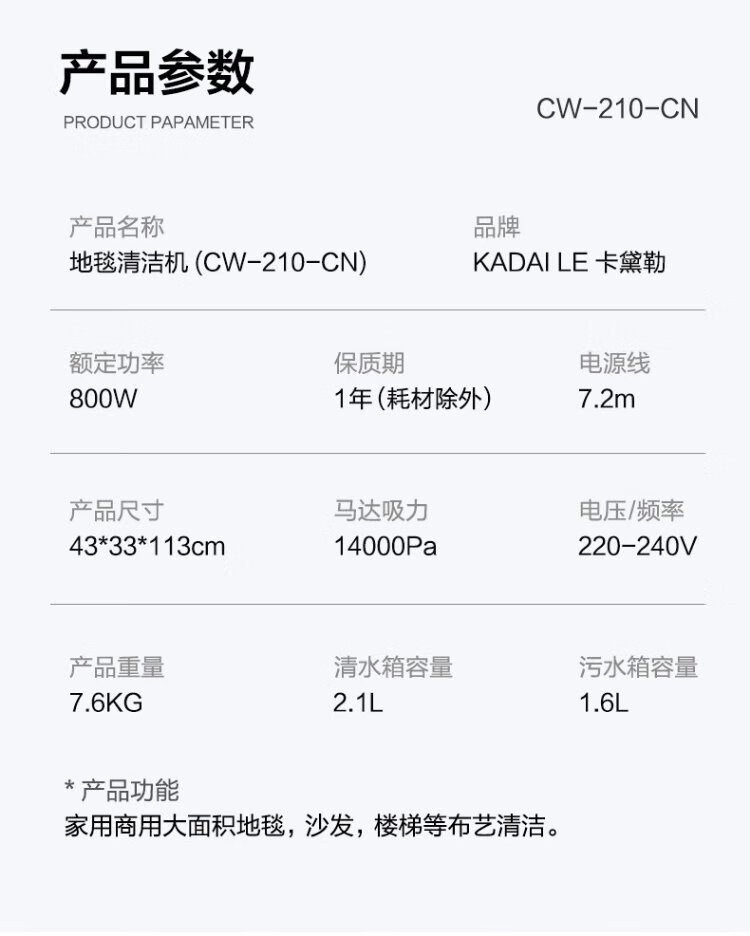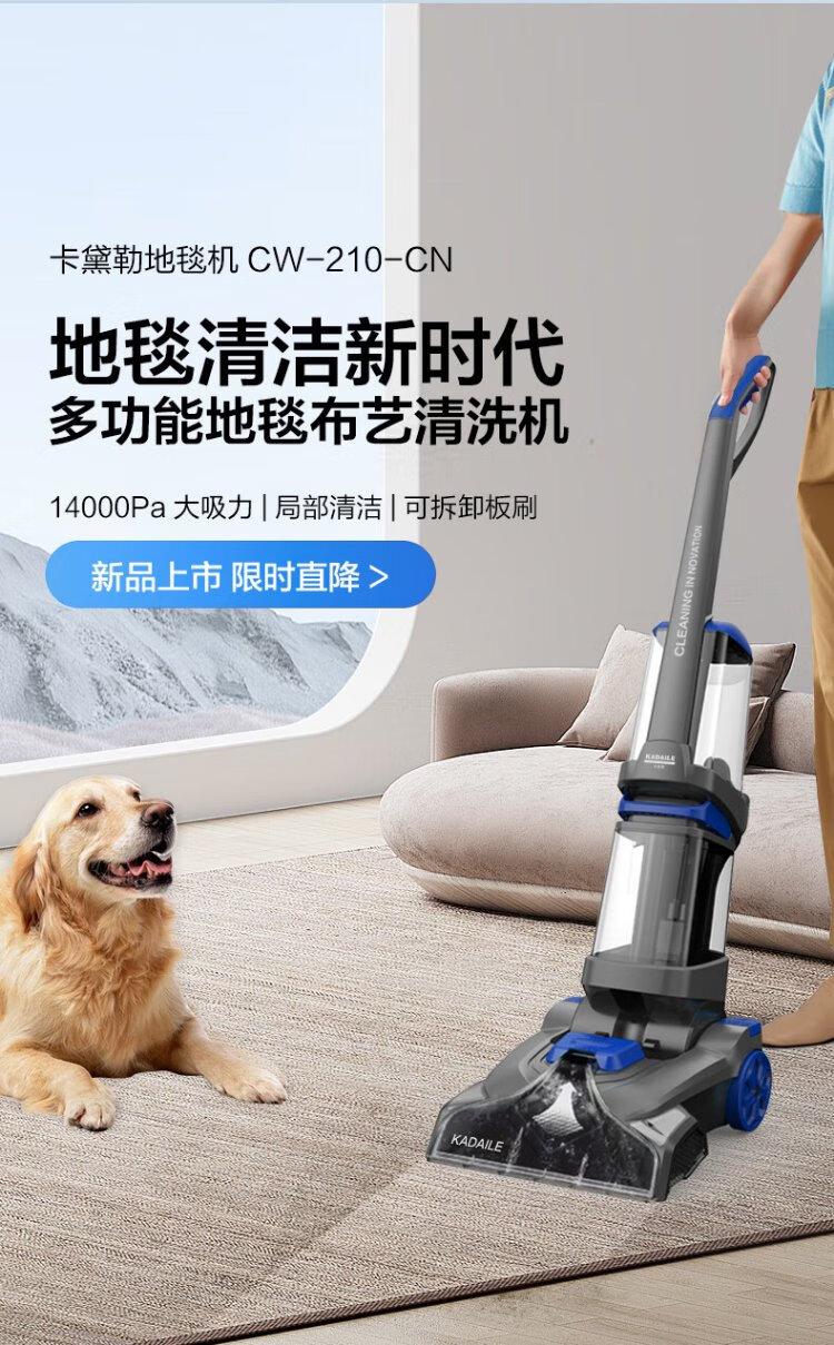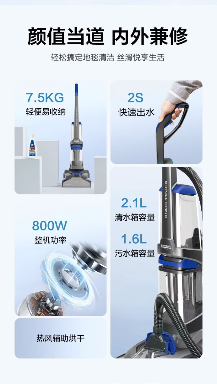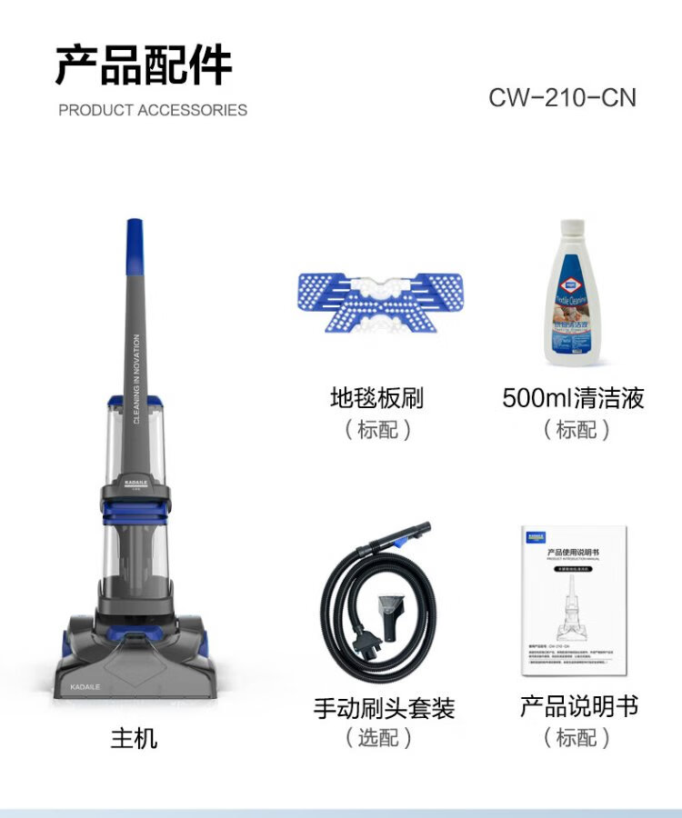 KADAILE Carpet Cleaning Floor Fabric Sofa Carpet Cleaning Machine Home Commercial Hotel Three-in-One Washing, Suction, Drying and Cleaning Machine New Product Launch CW-210-CN (standard configuration + 6 bottles of 1 liter cleaning fluid)