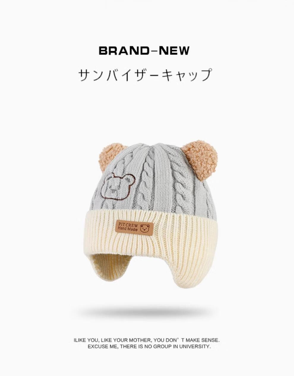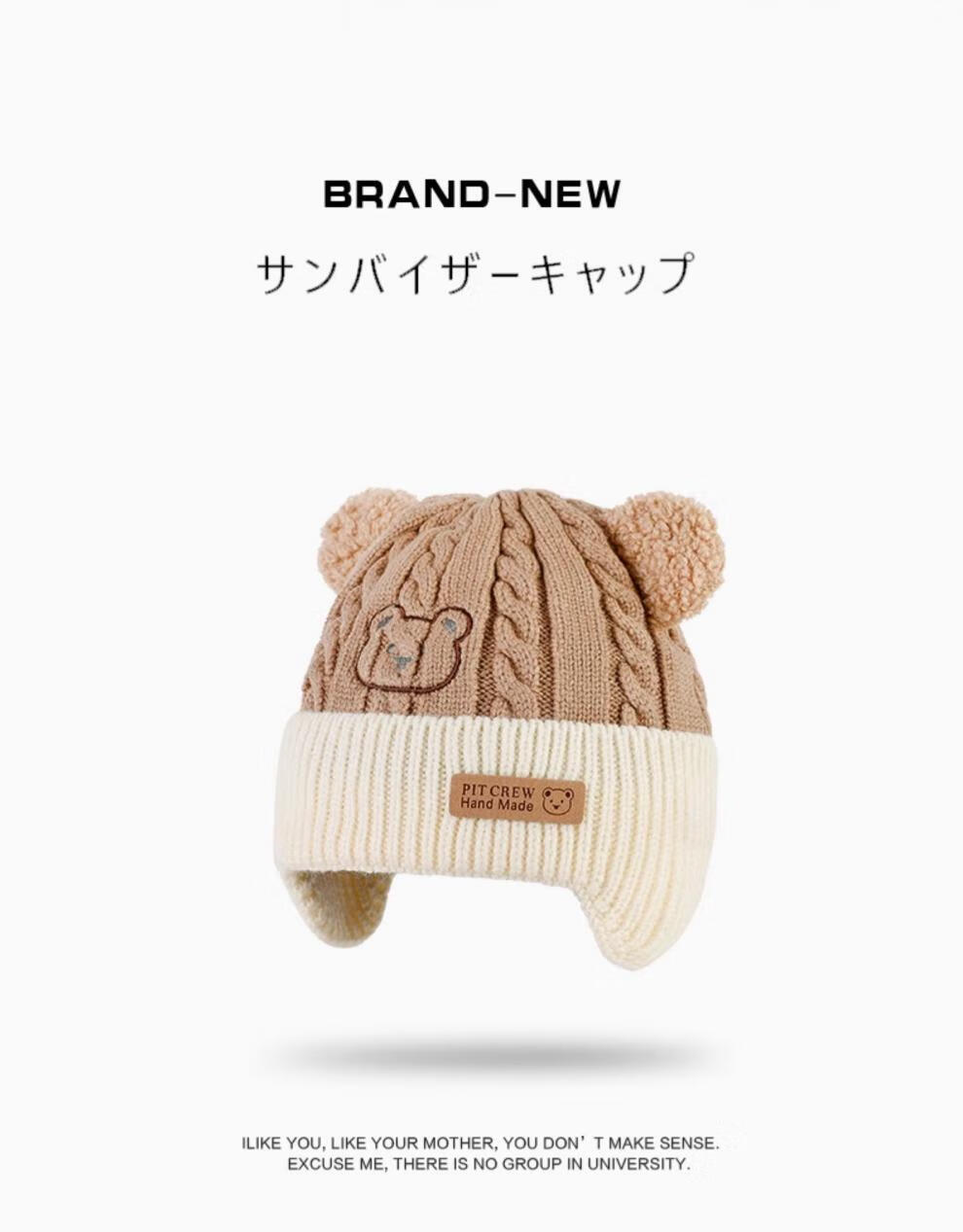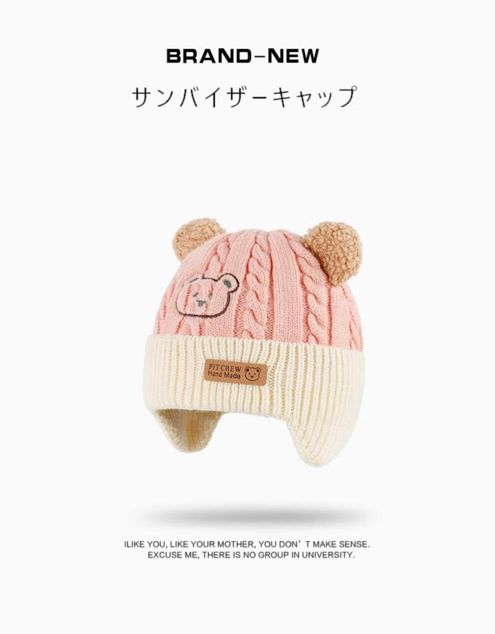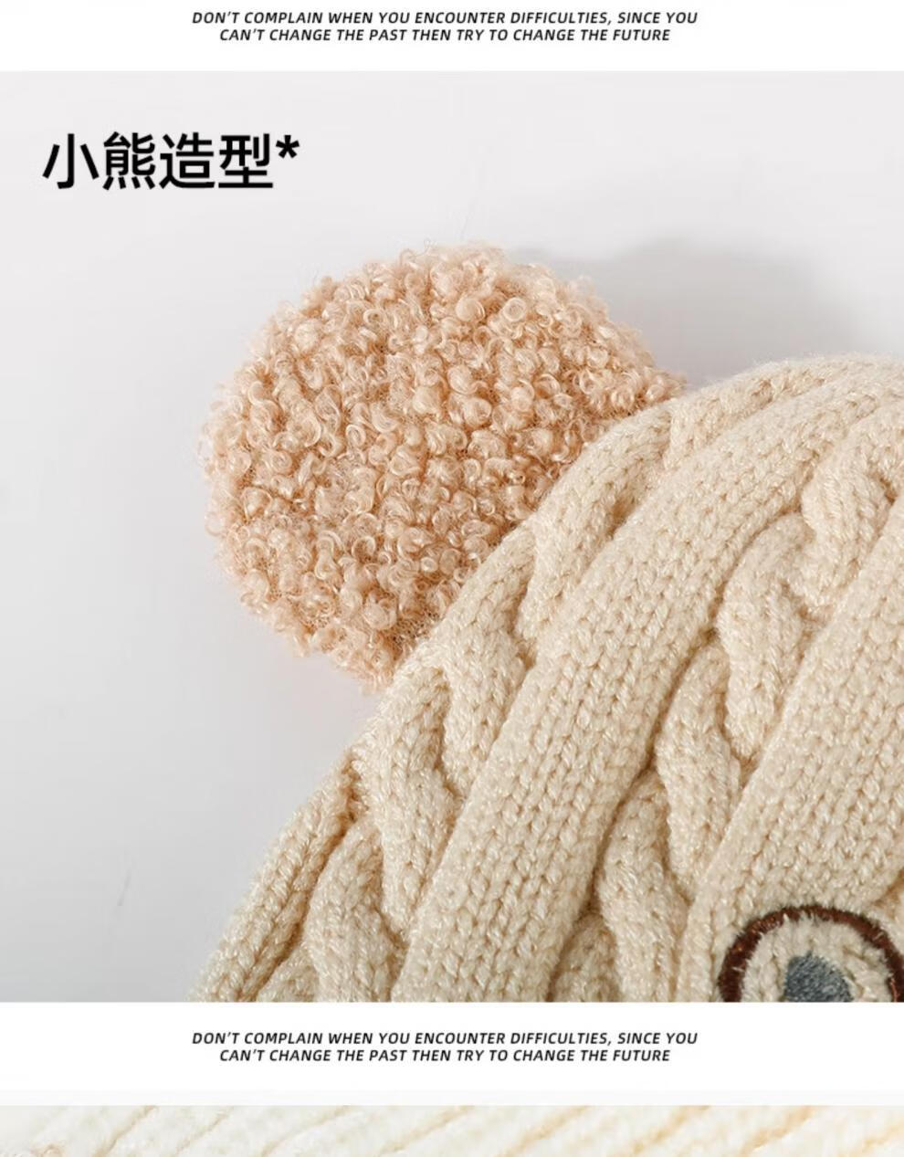 SOMUBAY Children's Hat Cartoon Bear Wool Hat Boy Cute New Girl Knitted Ear Protection Warm Knitted Hat Light Card 170 Recommended 5 months-3 years old_45-52CM