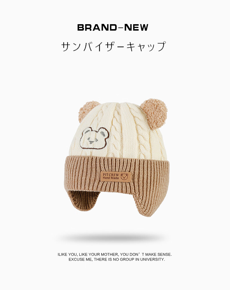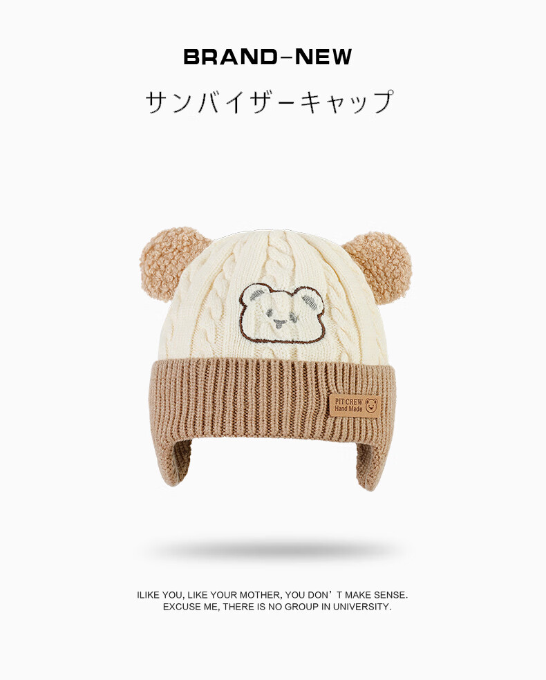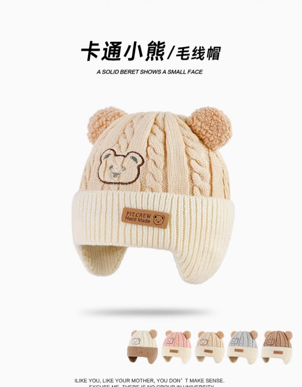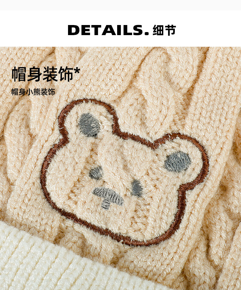 SOMUBAY Children's Hat Cartoon Bear Wool Hat Boy Cute New Girl Knitted Ear Protection Warm Knitted Hat Light Card 170 Recommended 5 months-3 years old_45-52CM