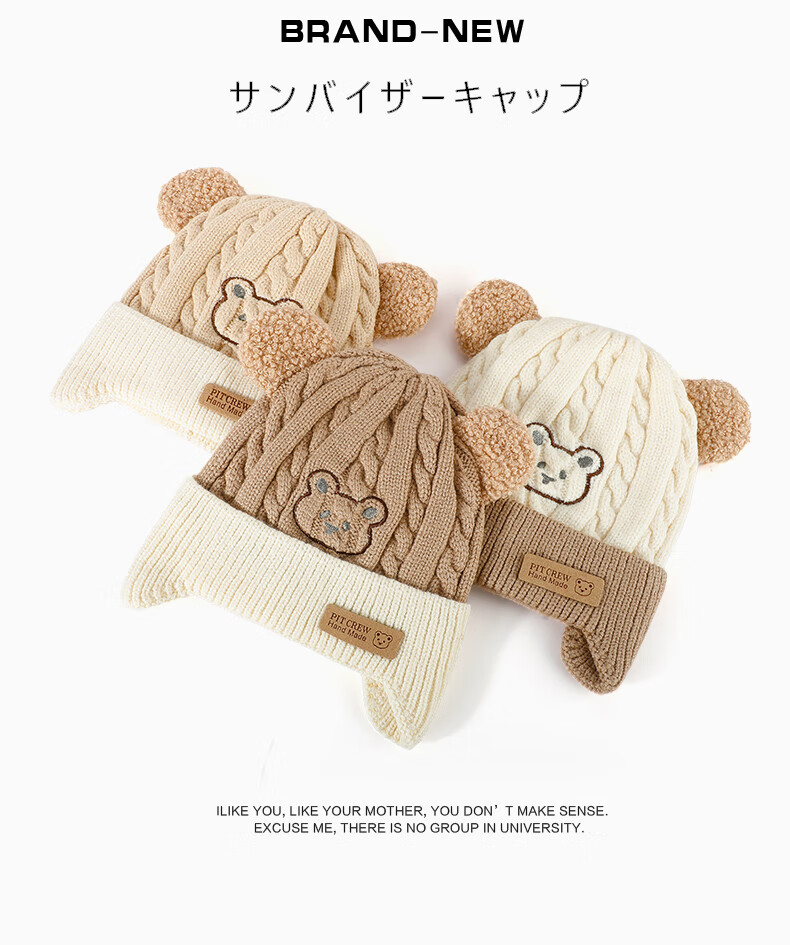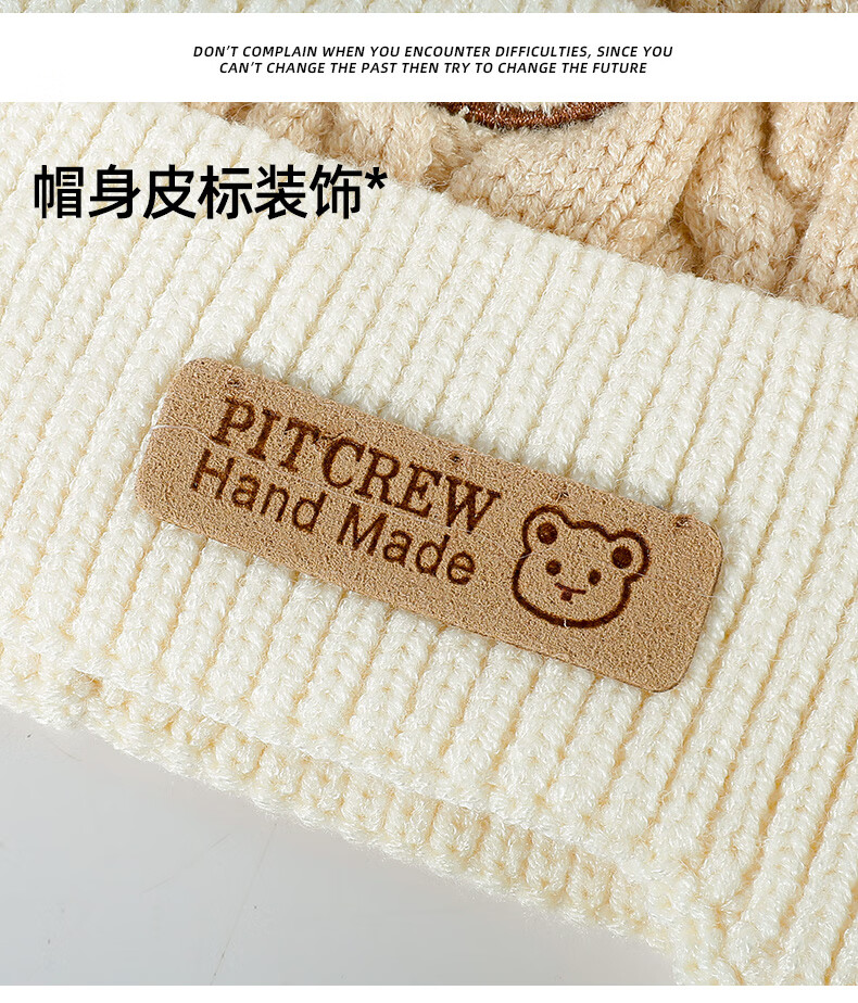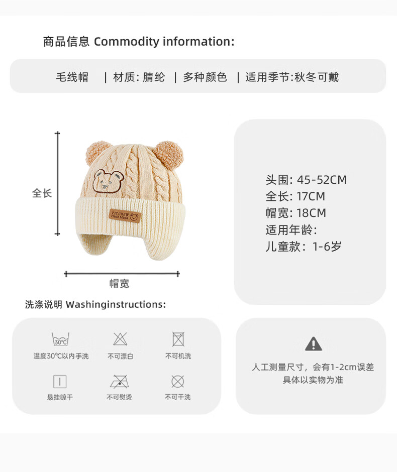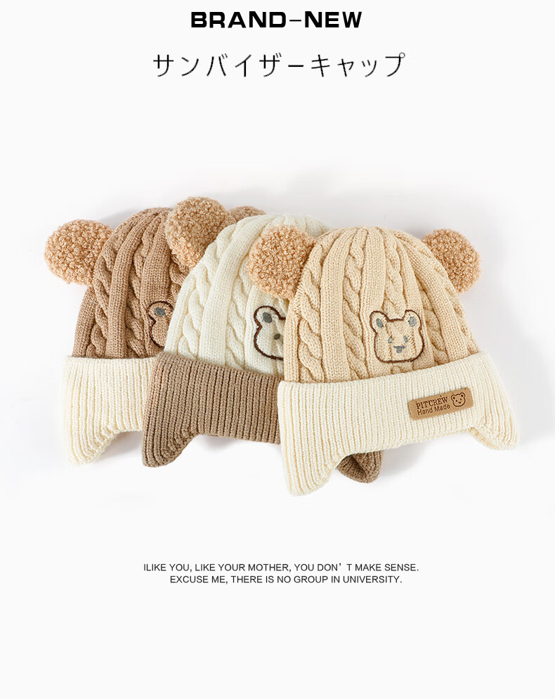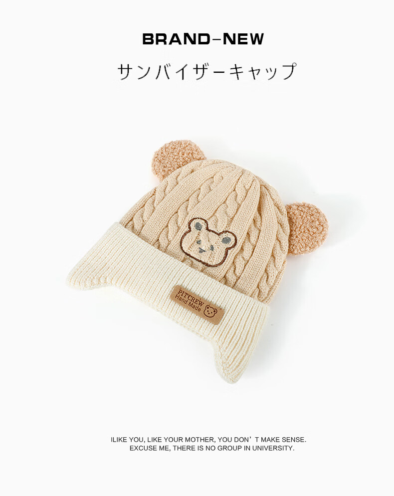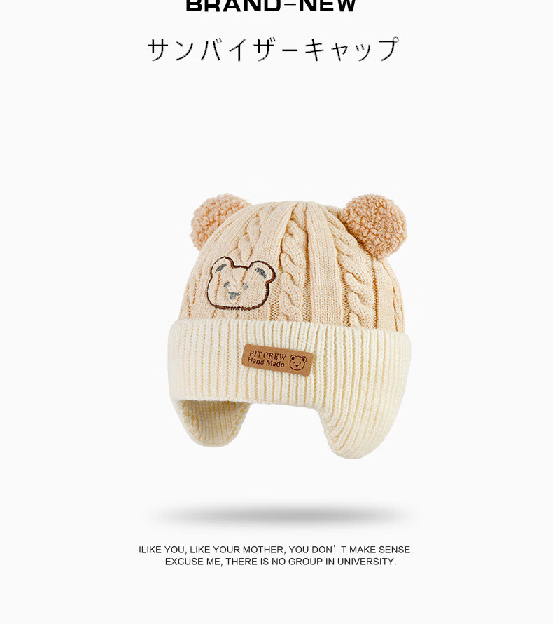 SOMUBAY Children's Hat Cartoon Bear Wool Hat Boy Cute New Girl Knitted Ear Protection Warm Knitted Hat Light Card 170 Recommended 5 months-3 years old_45-52CM