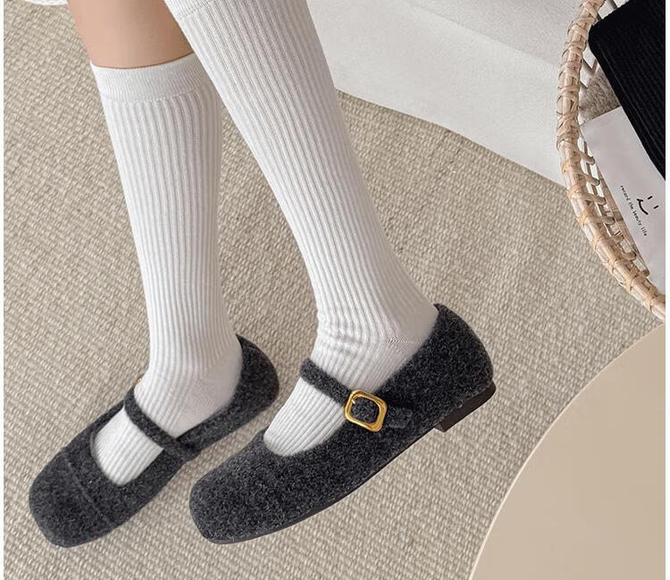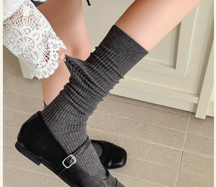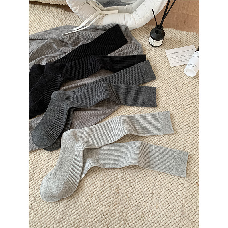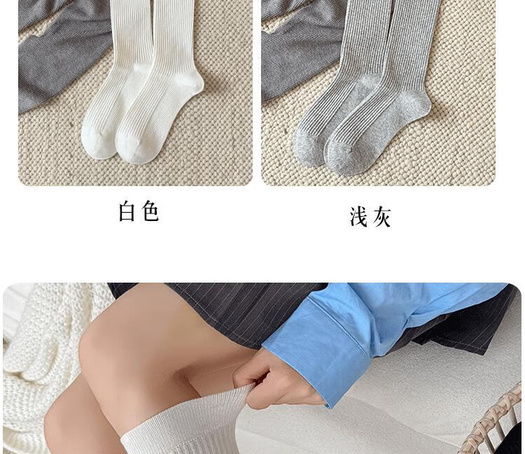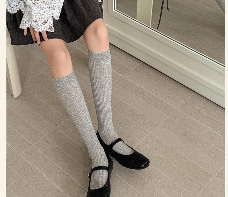 Perfect gray pinstripe stockings for women, spring and autumn high knee-length stockings, miu style, black + light gray + white_ Pack of 3 pairs, one size fits all