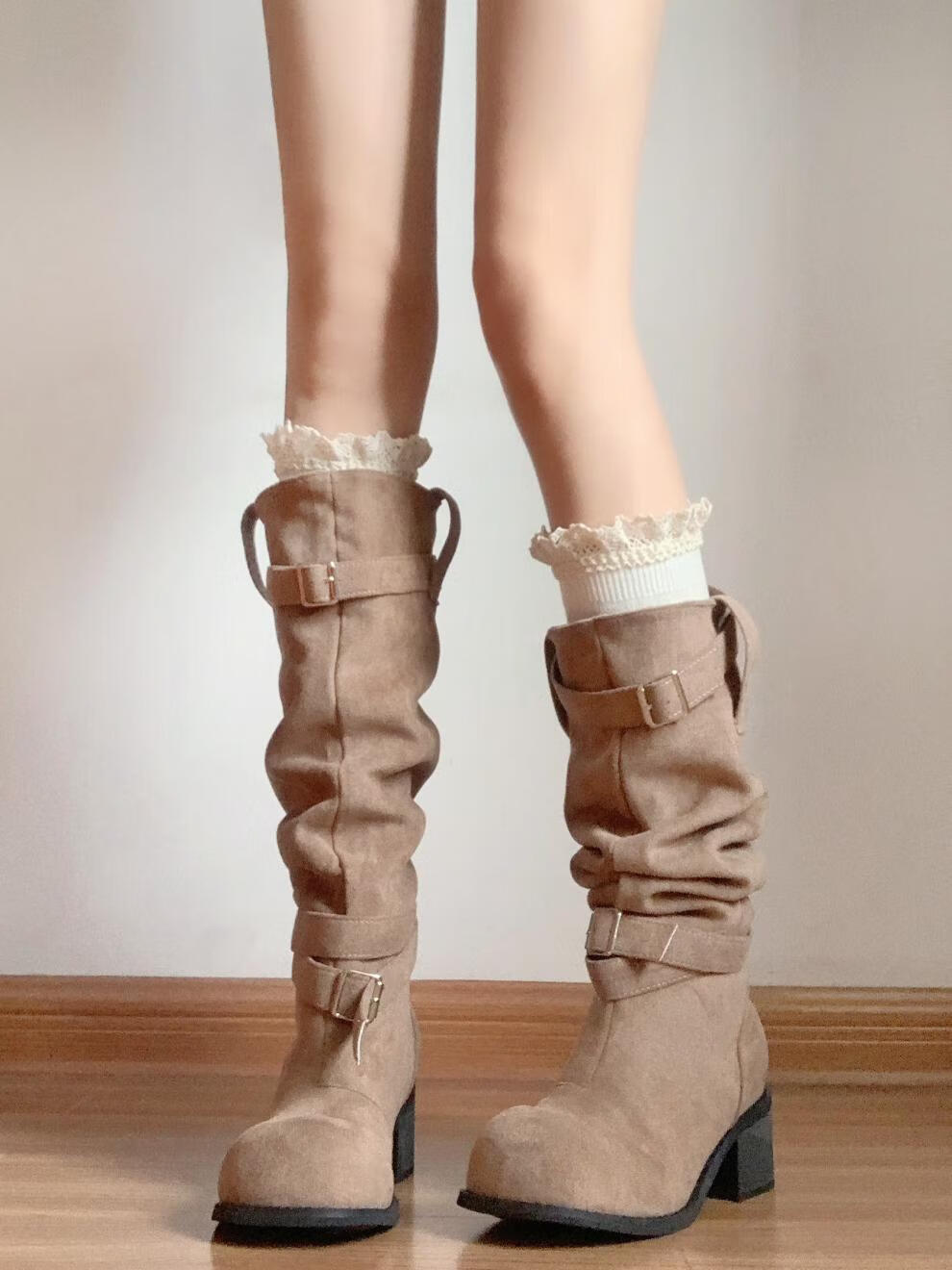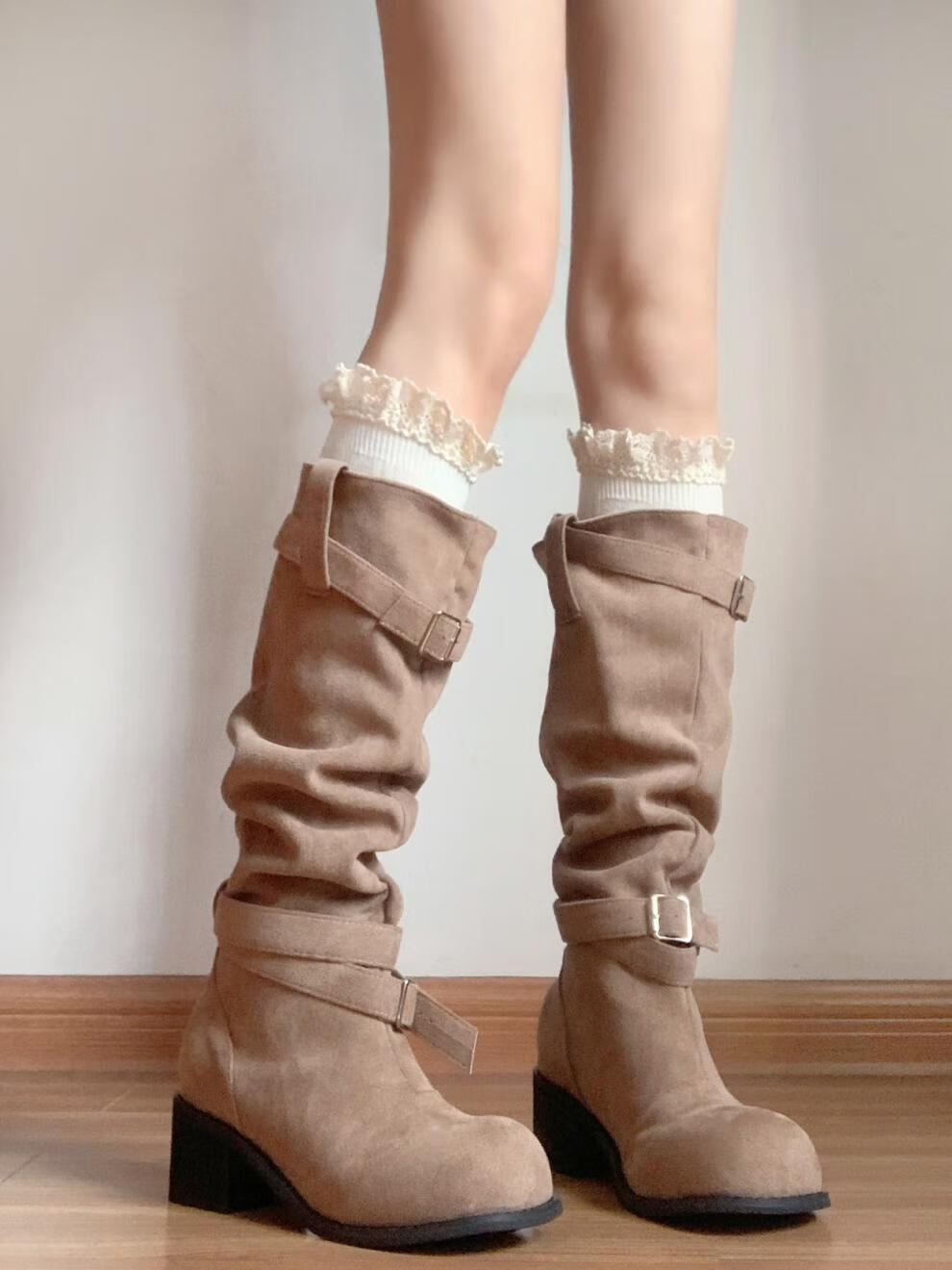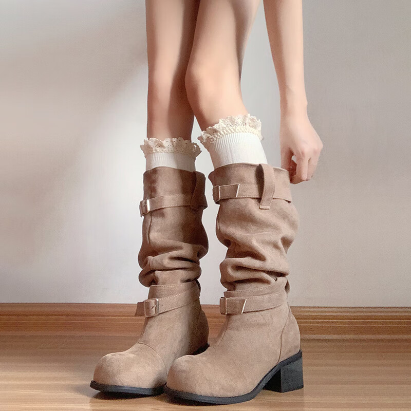 Perfect milk white twist socks for women in autumn and winter, versatile mid-calf stockings with boots, lace twist calf socks_milk white 53cm, one size fits all