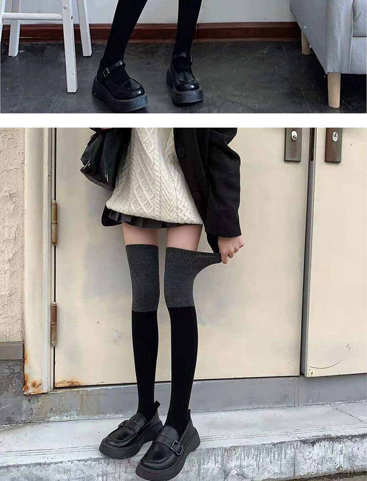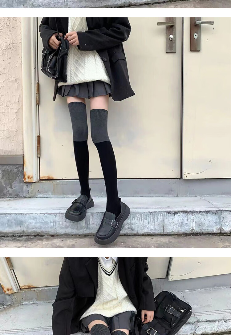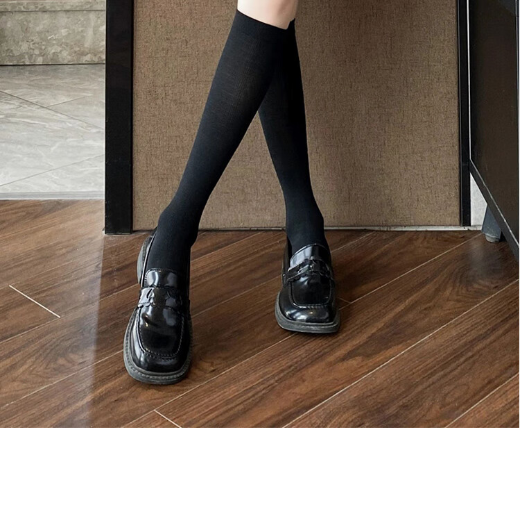 Perfect jk black socks over the knee for slimming women's slightly pressed long tube spring, autumn, autumn and winter style over the knee socks black 2 pairs one size fits all