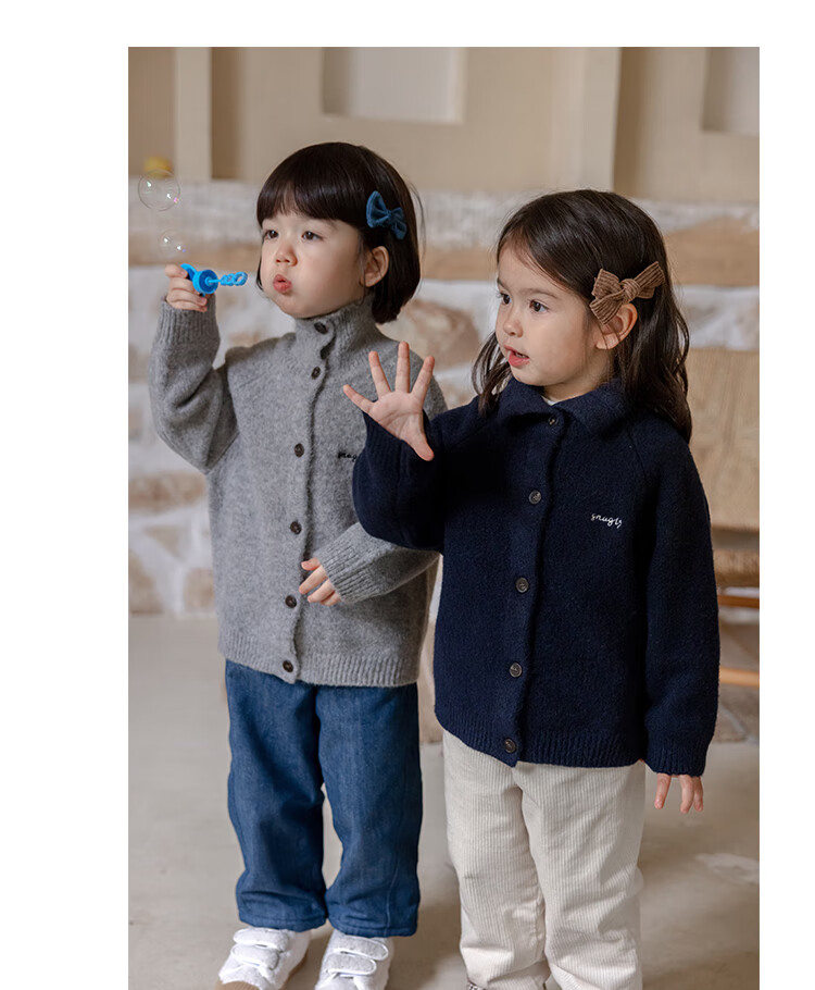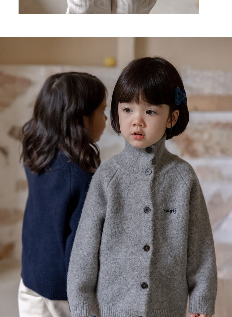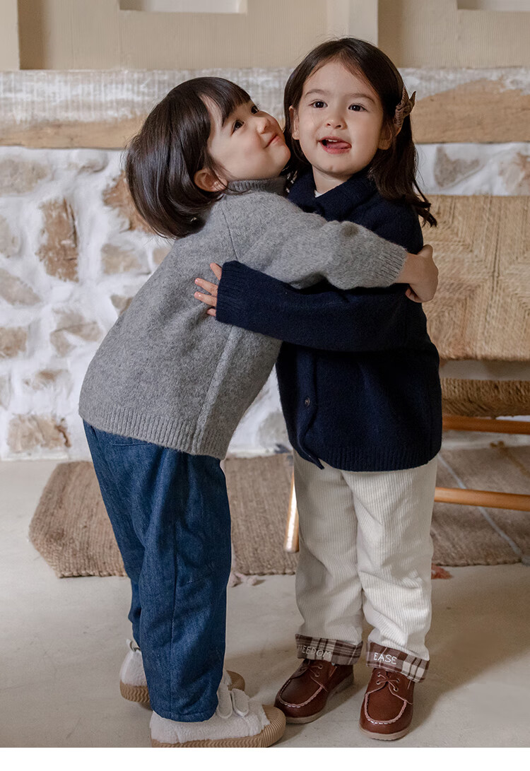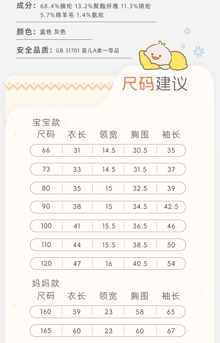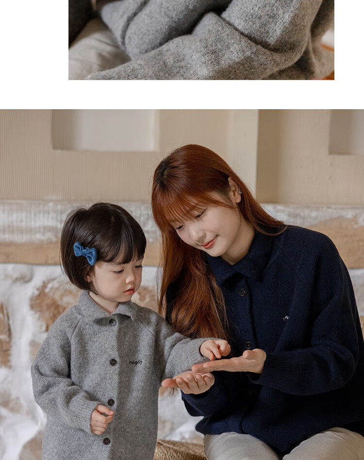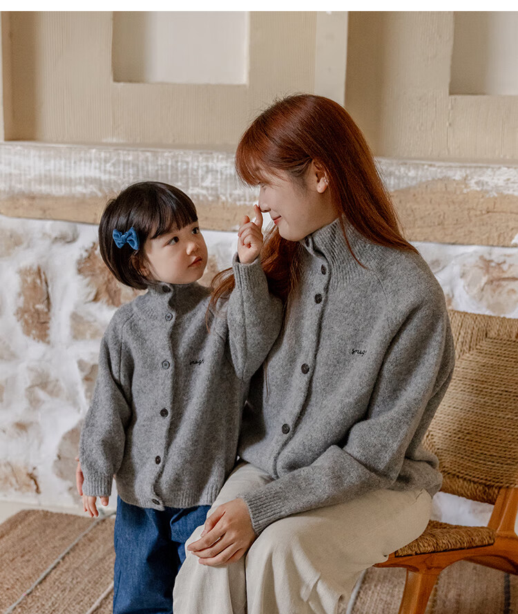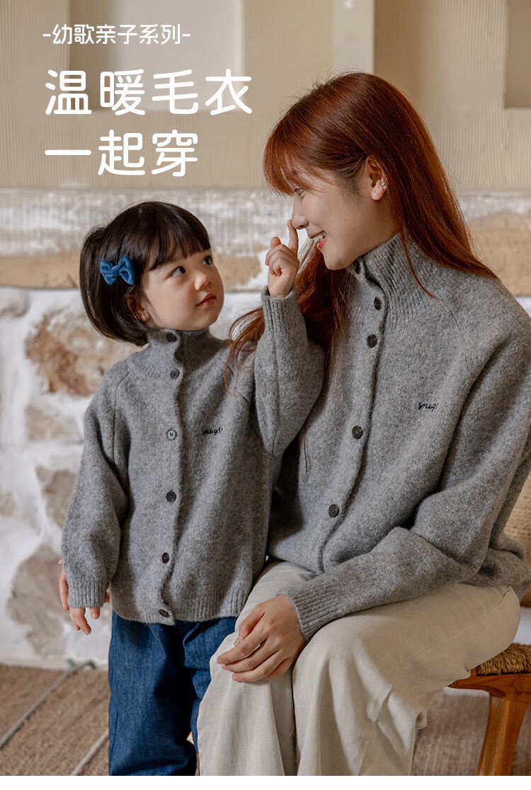 YOUGE (YOUGE) winter new baby wool blended lapel parent-child sweater cardigan gray (mom style) 160 cm